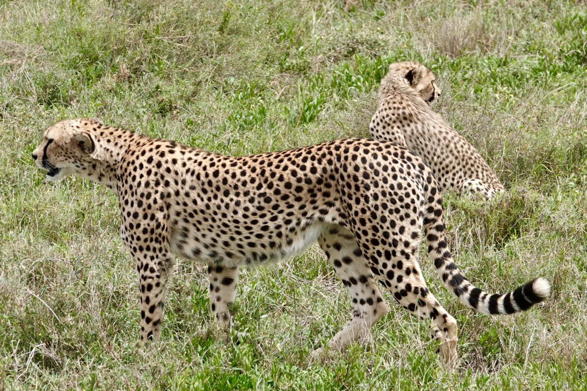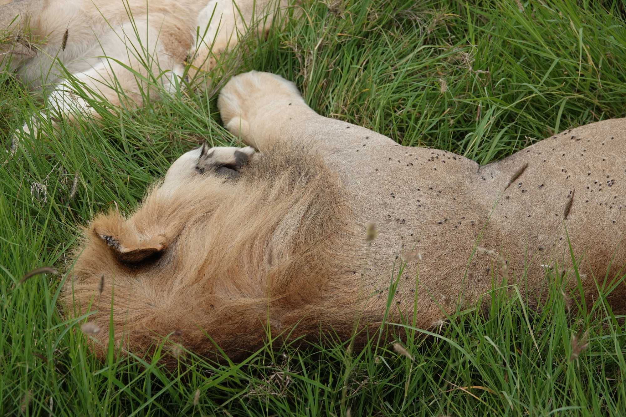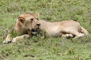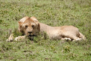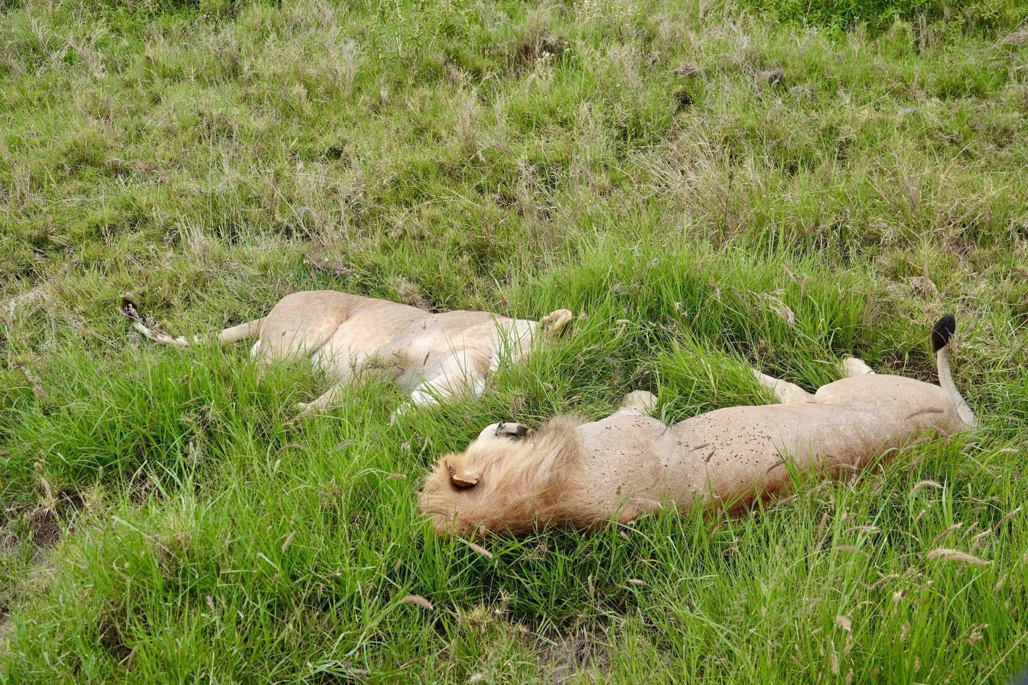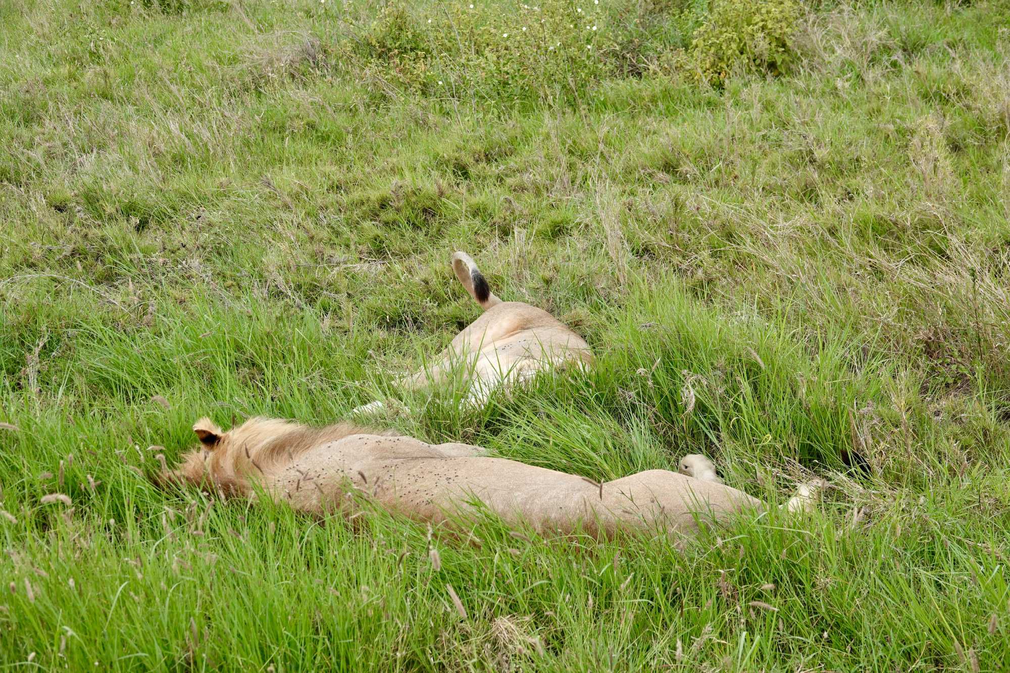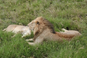 Puis, alors que nous poursuivons notre exploration du Serengeti, nous tombons sur un autre couple de lions. Décidément, ce parc est un véritable royaume pour ces félins.