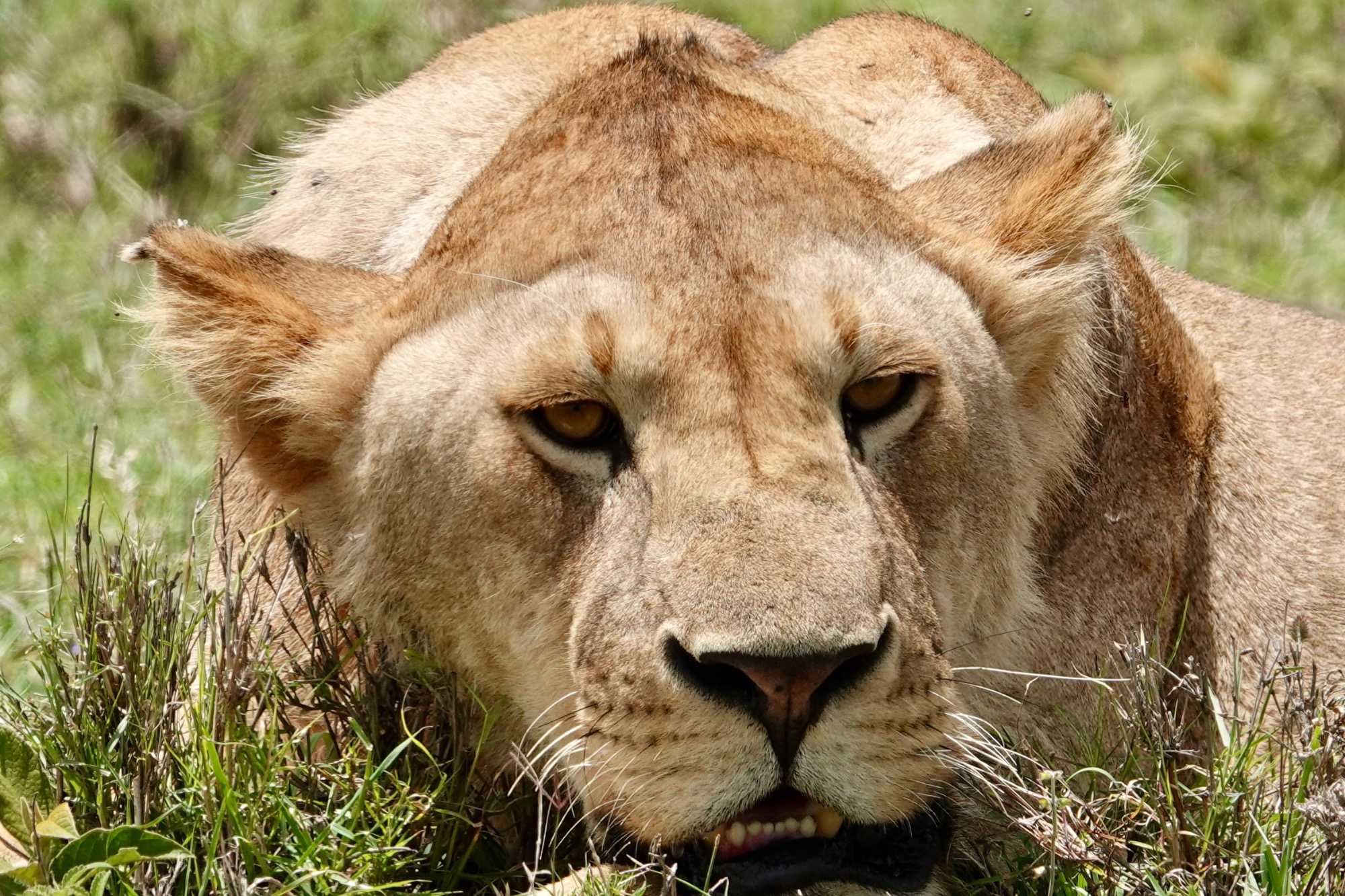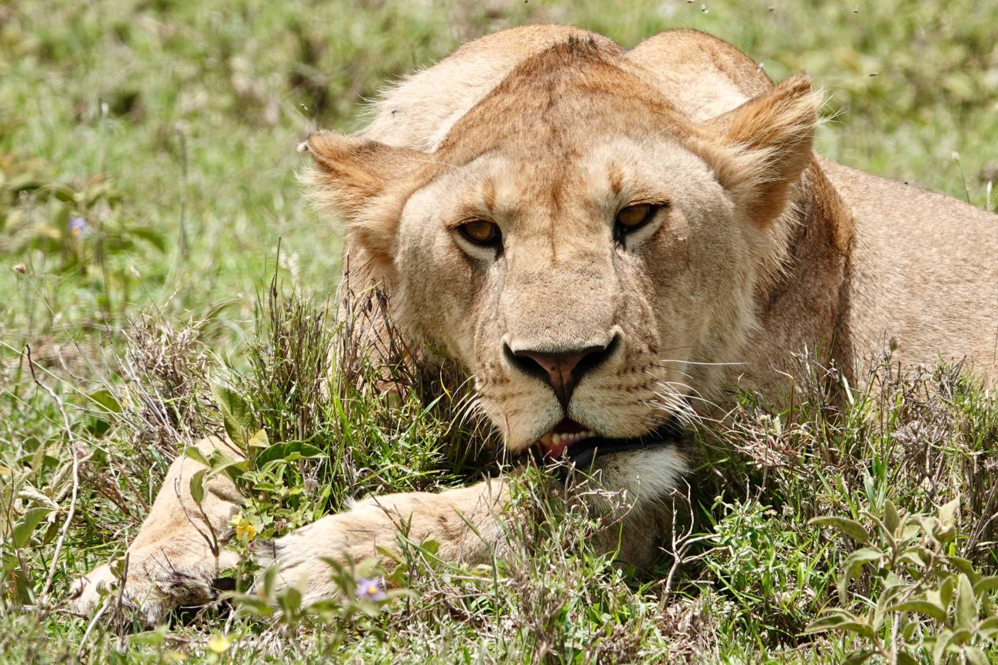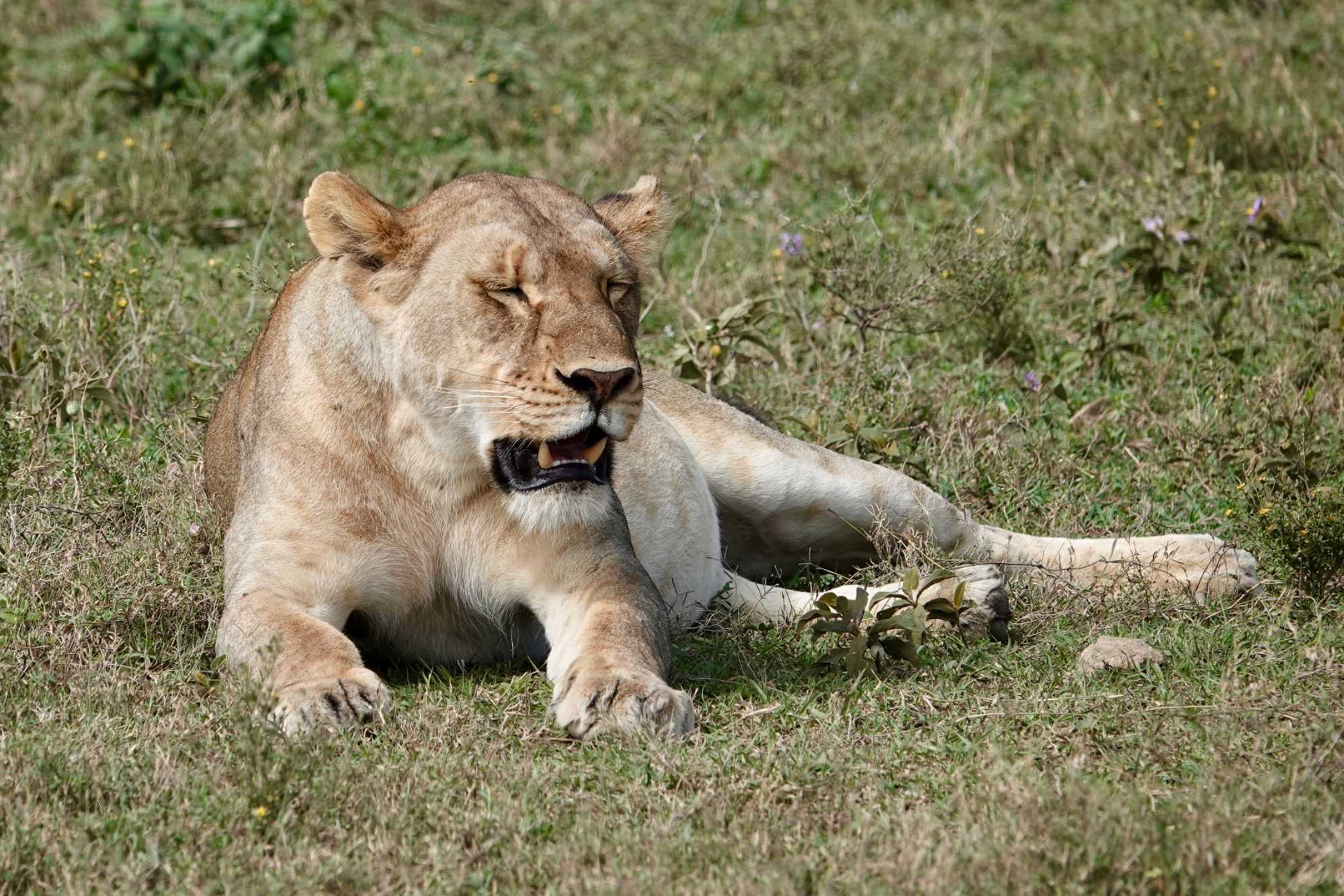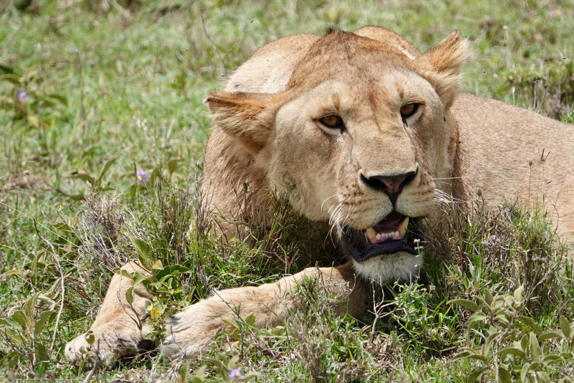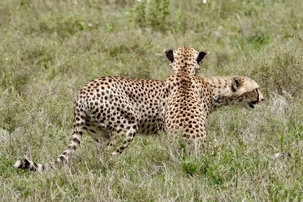Puis, alors que nous poursuivons notre exploration du Serengeti, nous tombons sur un autre couple de lions. Décidément, ce parc est un véritable royaume pour ces félins.
