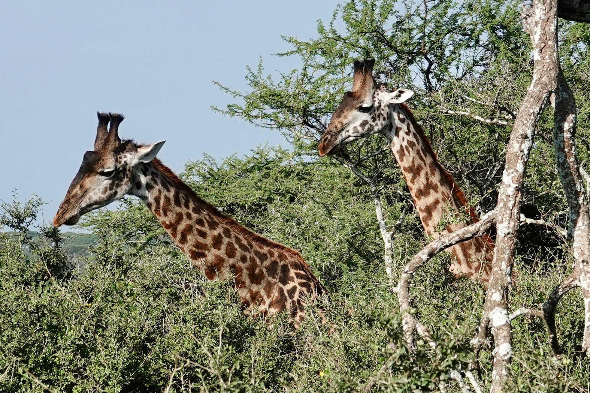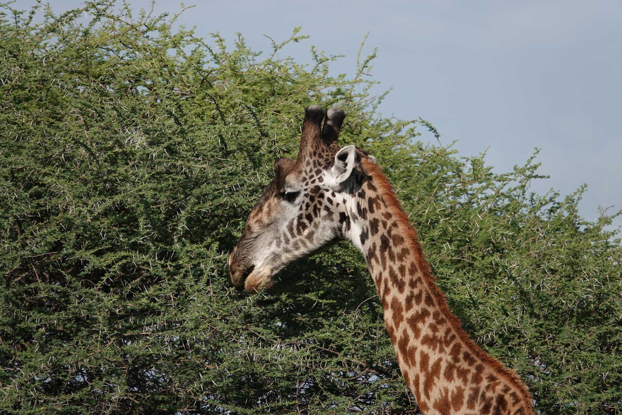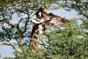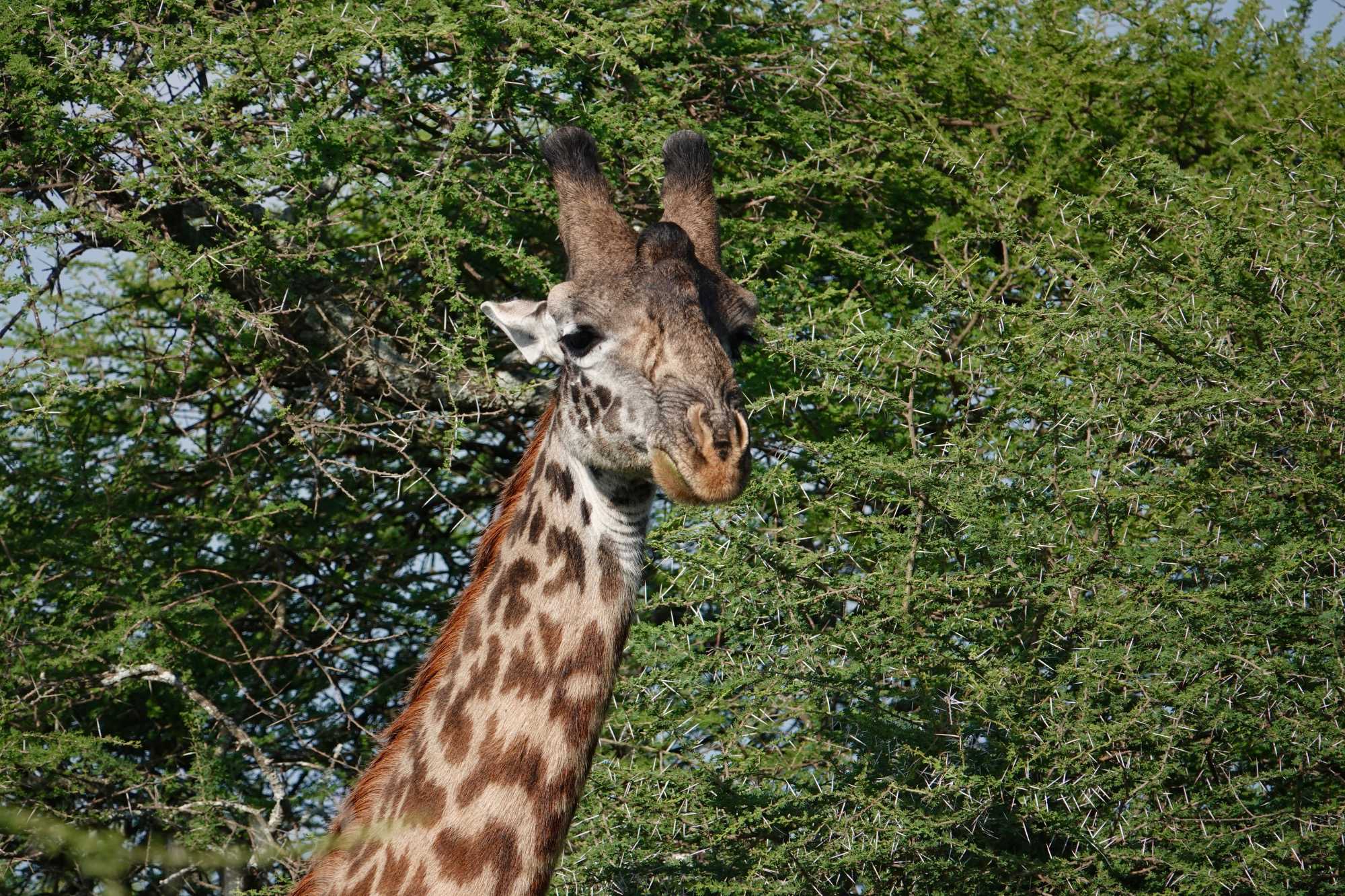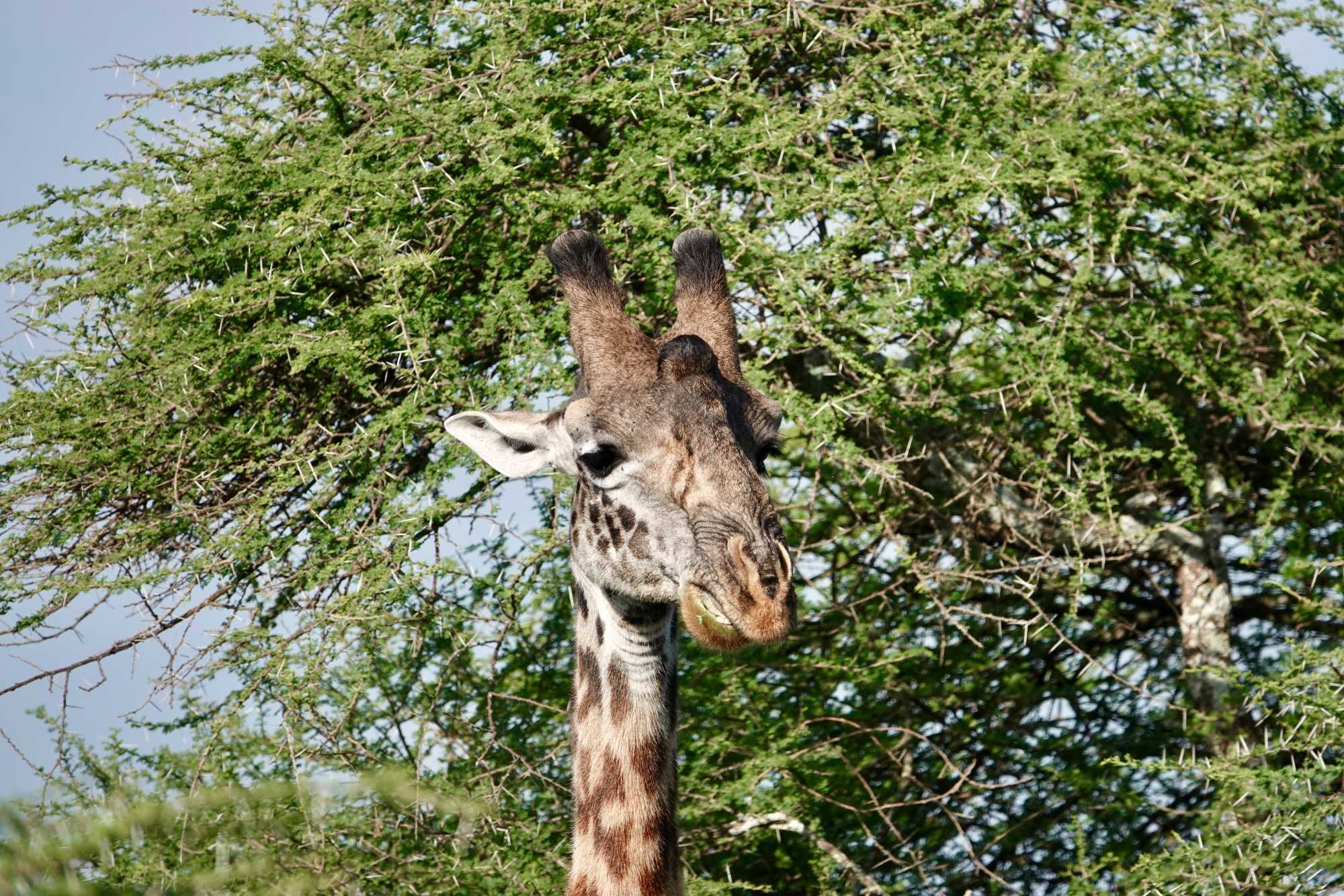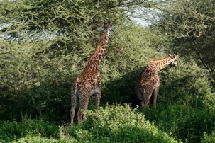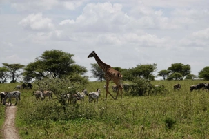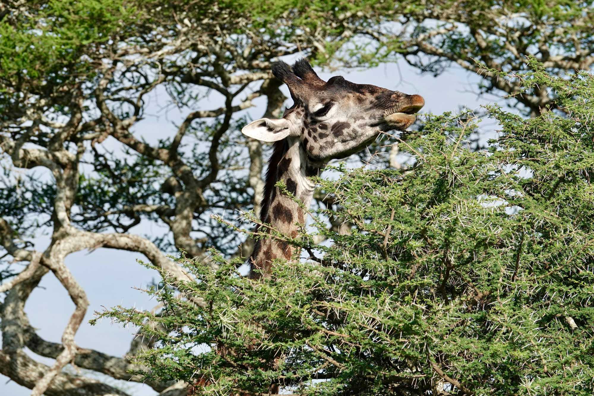 Mais avant de quitter complètement la région de Ndutu, nous profitons d’un dernier mini-safari matinal. Et la matinée est placée sous le signe des girafes. Elles sont partout. Certaines marchent avec cette grâce lente et élégante qui les caractérise, d’autres semblent presque jouer entre elles. La lumière du matin met magnifiquement en valeur leurs silhouettes élancées.