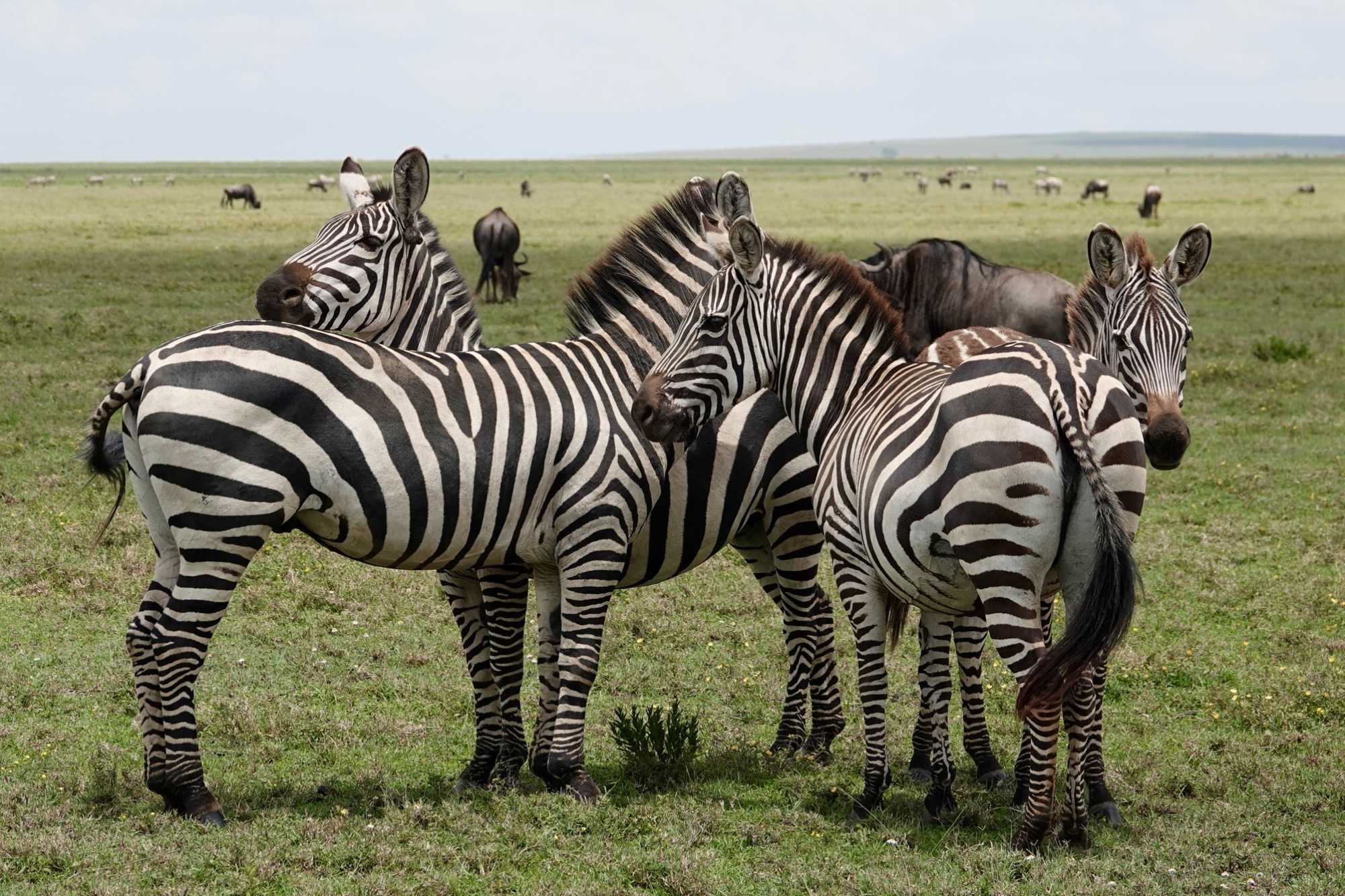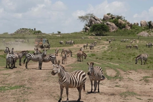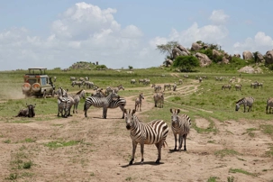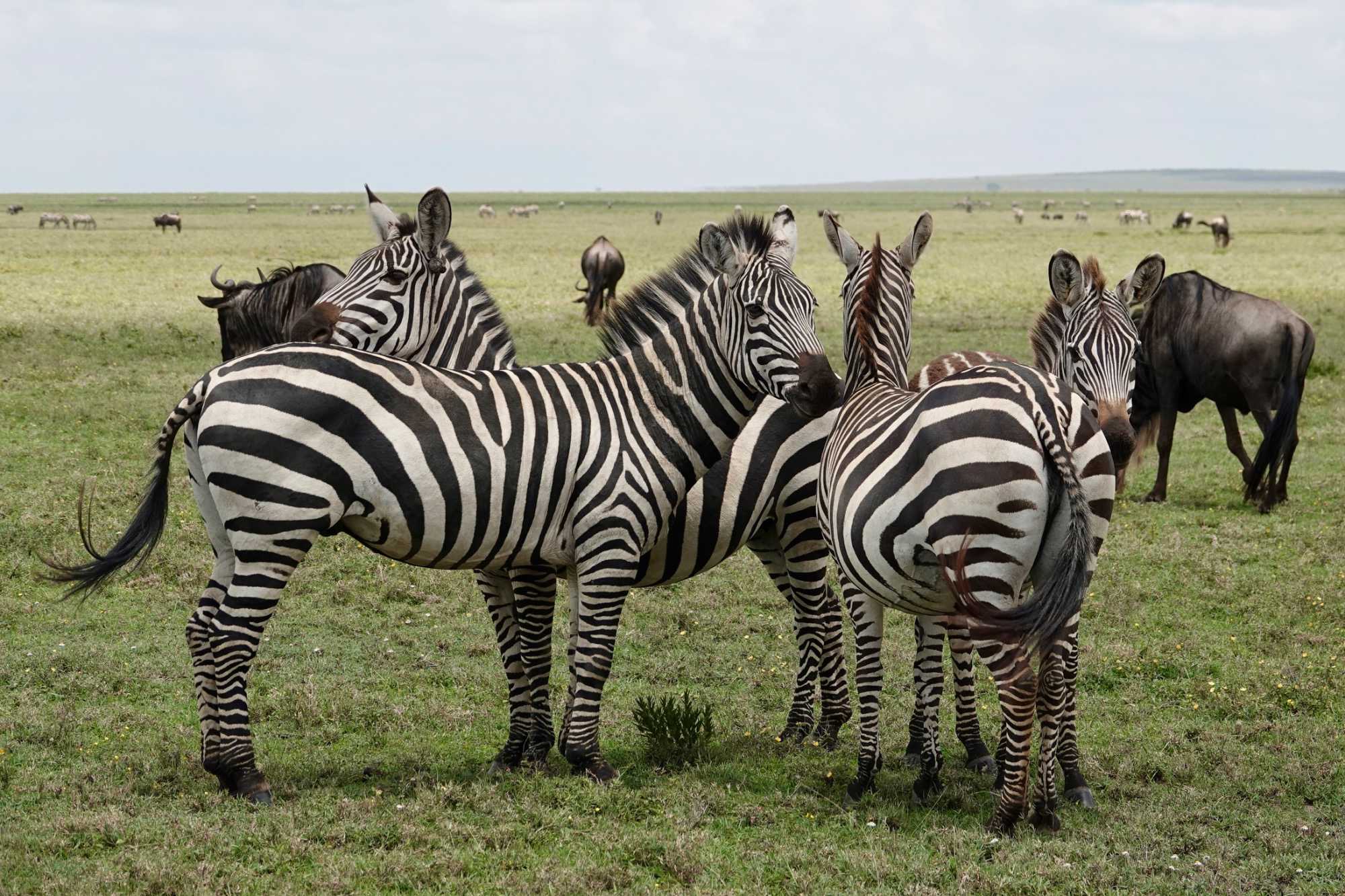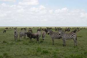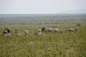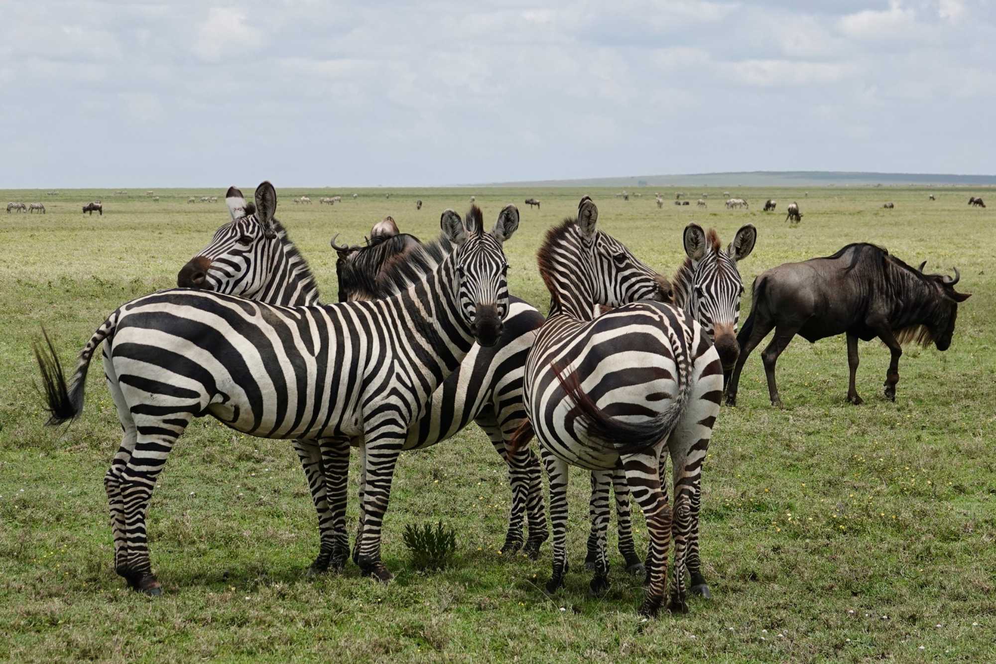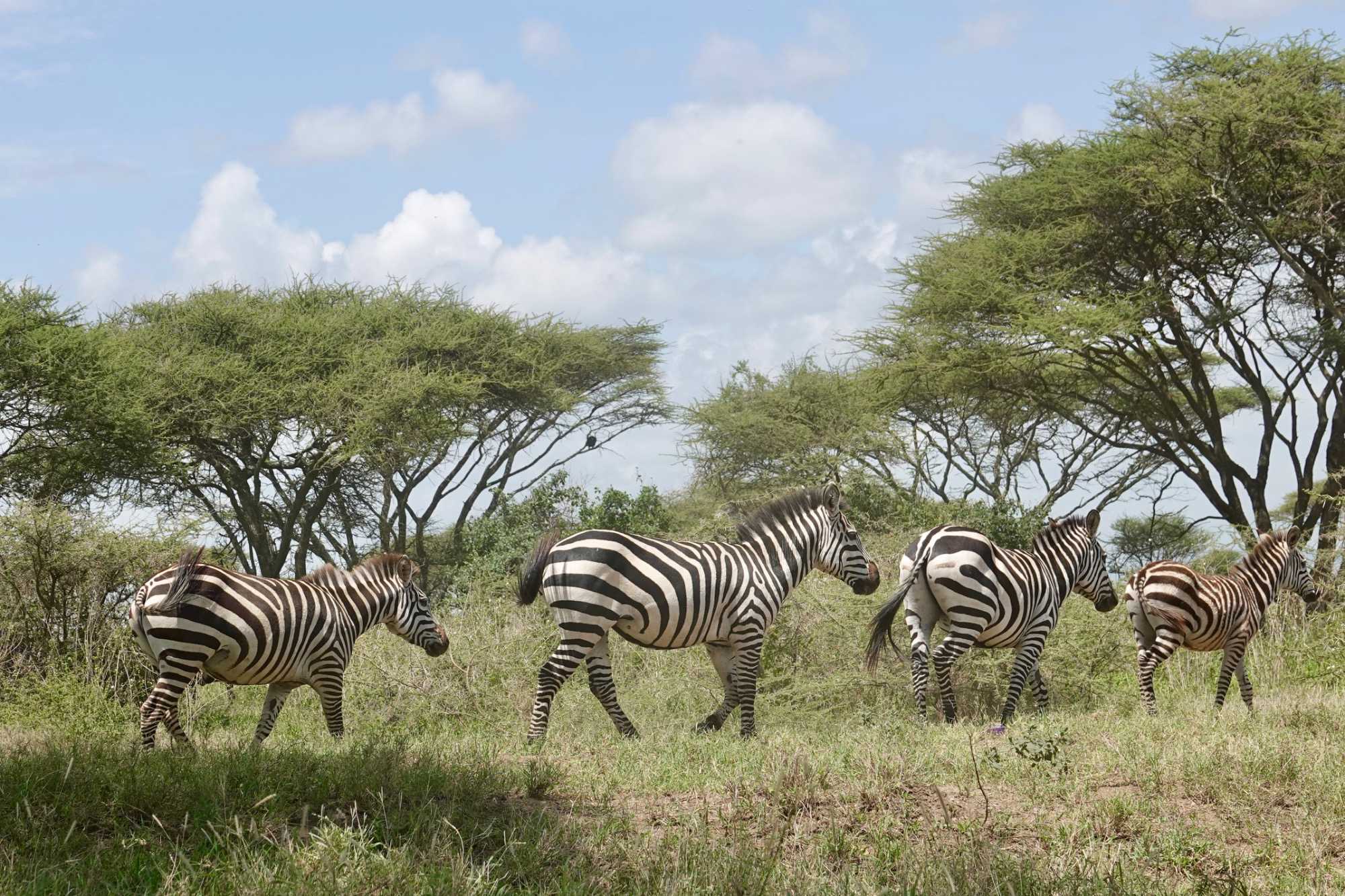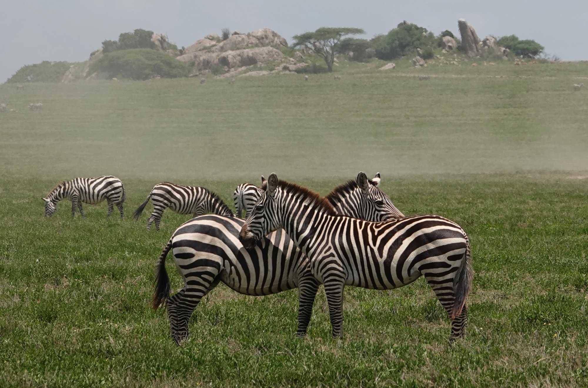 Avant même d’atteindre l’entrée officielle du Serengeti, nous traversons d’immenses groupes de zèbres. À cette période de l’année, la concentration animalière est exceptionnelle. Les pluies récentes ont laissé des bassins d’eau dans lesquels se reflètent leurs silhouettes rayées. Les photos sont splendides. Des zèbres à perte de vue.
