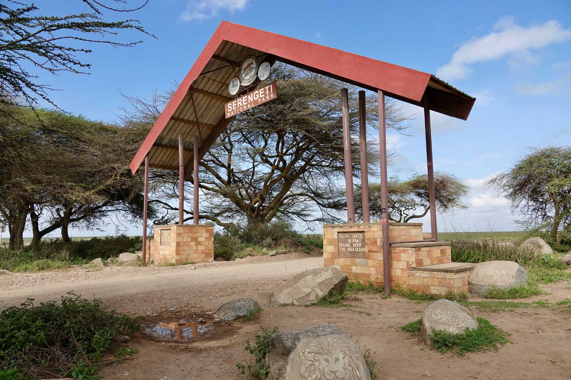 Puis nous arrivons à l’entrée du Parc national du Serengeti.