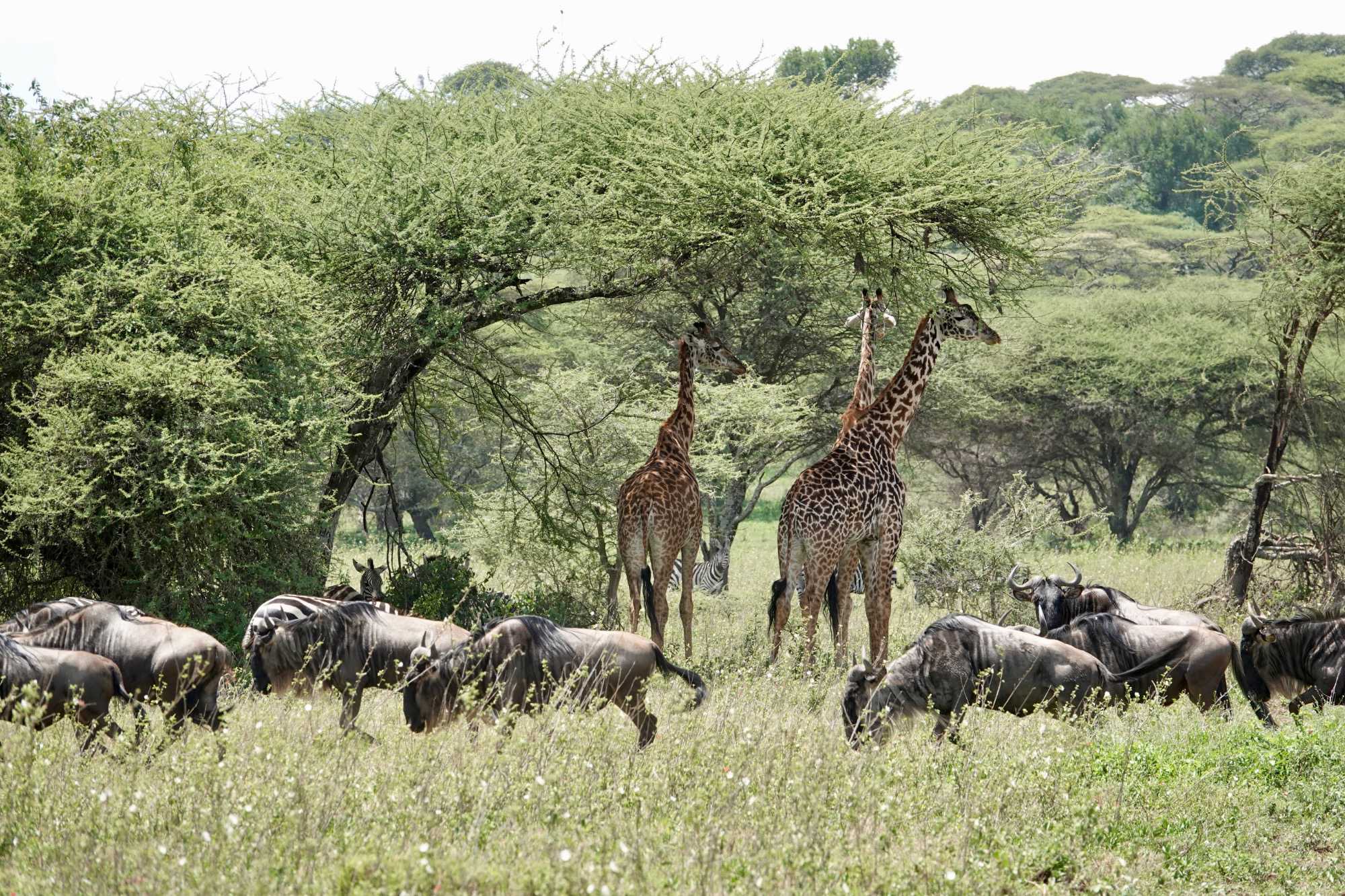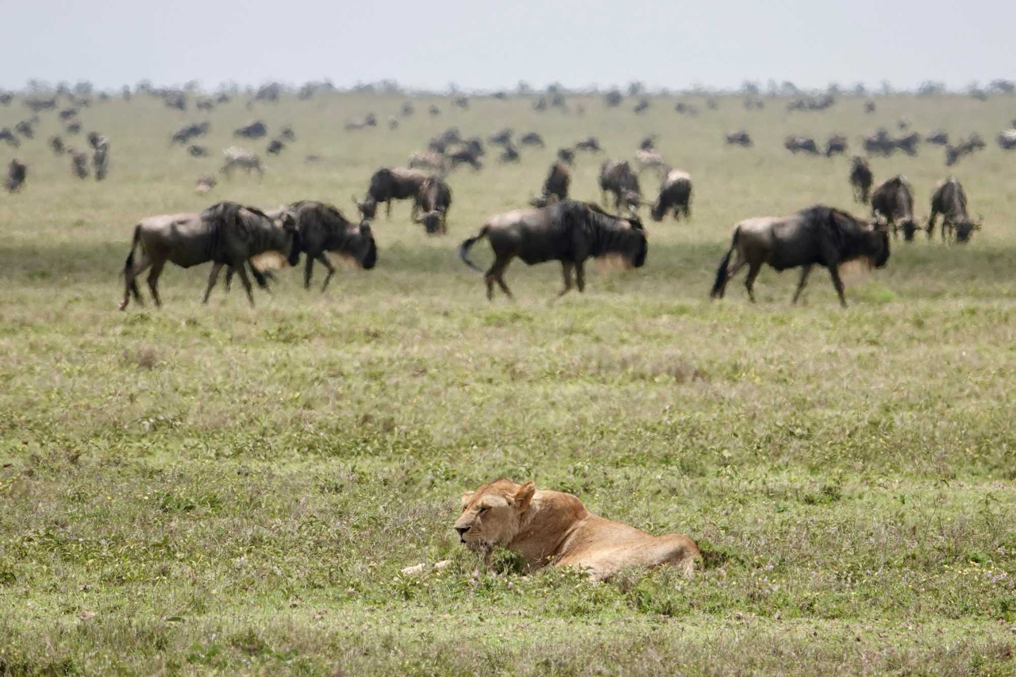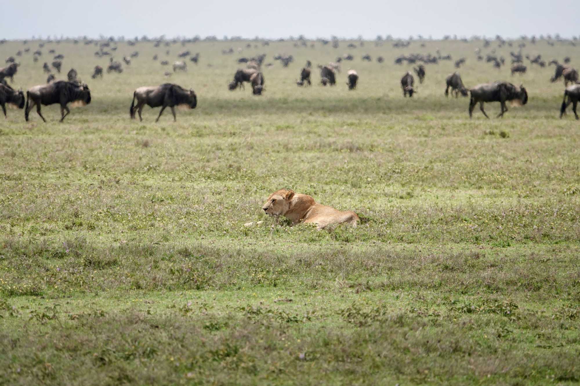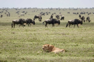Le Serengeti couvre près de 15 000 kilomètres carrés. Son nom vient du mot massaï Siringet, qui signifie « plaines infinies ». Il s’agit de l’un des écosystèmes les plus emblématiques d’Afrique, célèbre pour la grande migration annuelle de plus d’un million et demi de gnous accompagnés de centaines de milliers de zèbres et de gazelles. Le paysage alterne entre vastes plaines herbeuses et formations rocheuses appelées kopjes, qui servent souvent de postes d’observation aux prédateurs.