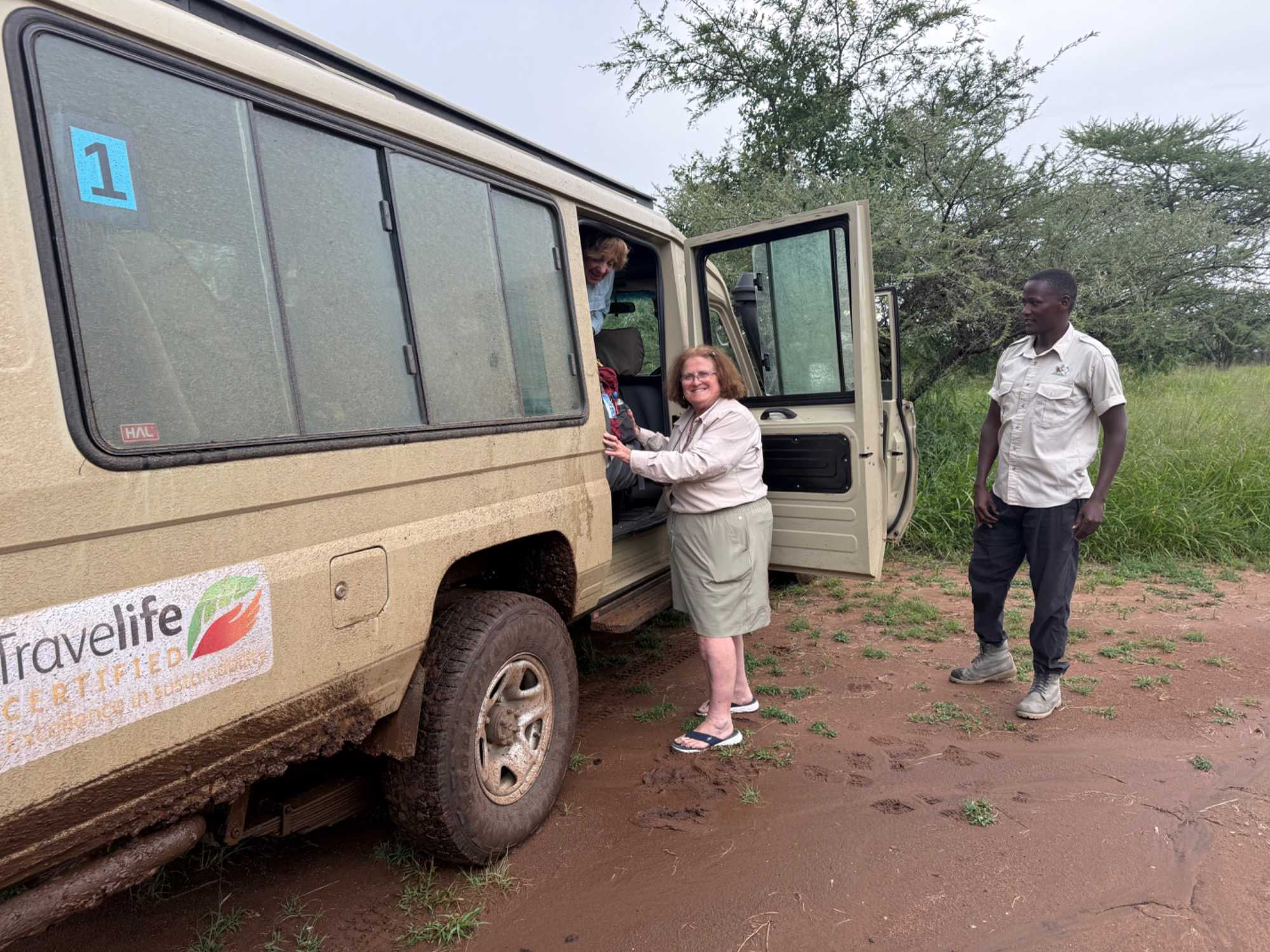 Une pluie torrentielle s’abat sur nous. Les pistes deviennent rapidement boueuses. La dernière heure vers notre lodge se transforme en véritable aventure. Les Jeeps glissent, la boue éclabousse, mais nos chauffeurs-guides démontrent toute leur maîtrise.