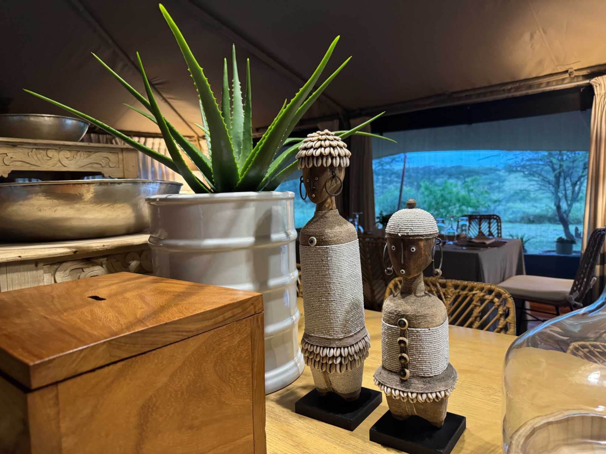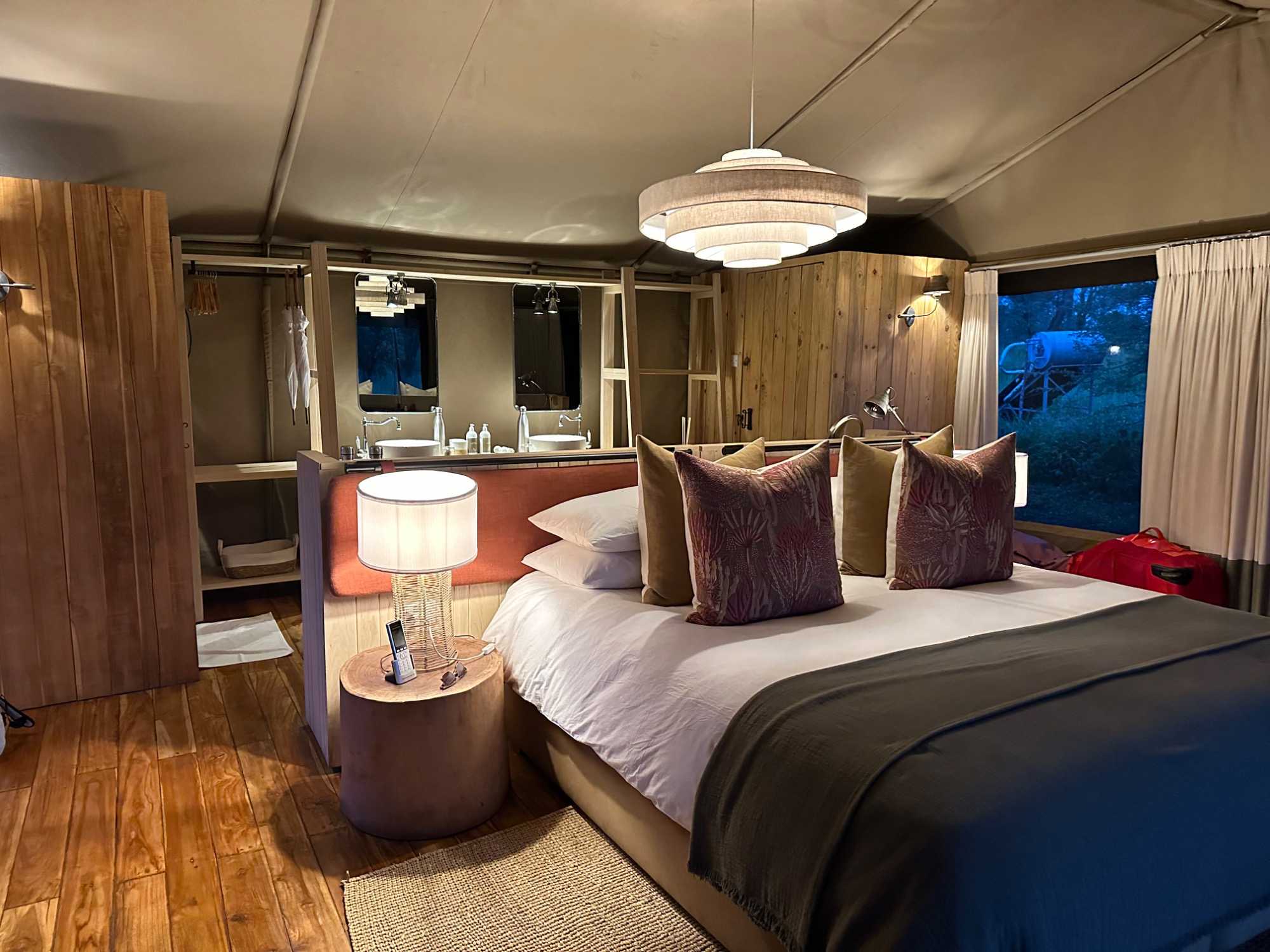 Nous arrivons enfin à Acacia Bliss Lodge, un endroit que j’affectionne particulièrement. Un lodge privatisé pour Voyage Louise Drouin. Les tentes luxueuses sont magnifiques, confortables, parfaitement intégrées à la nature environnante. Les photos se sont chargées au tout début mais ce sont celles du Acacia Bliss.