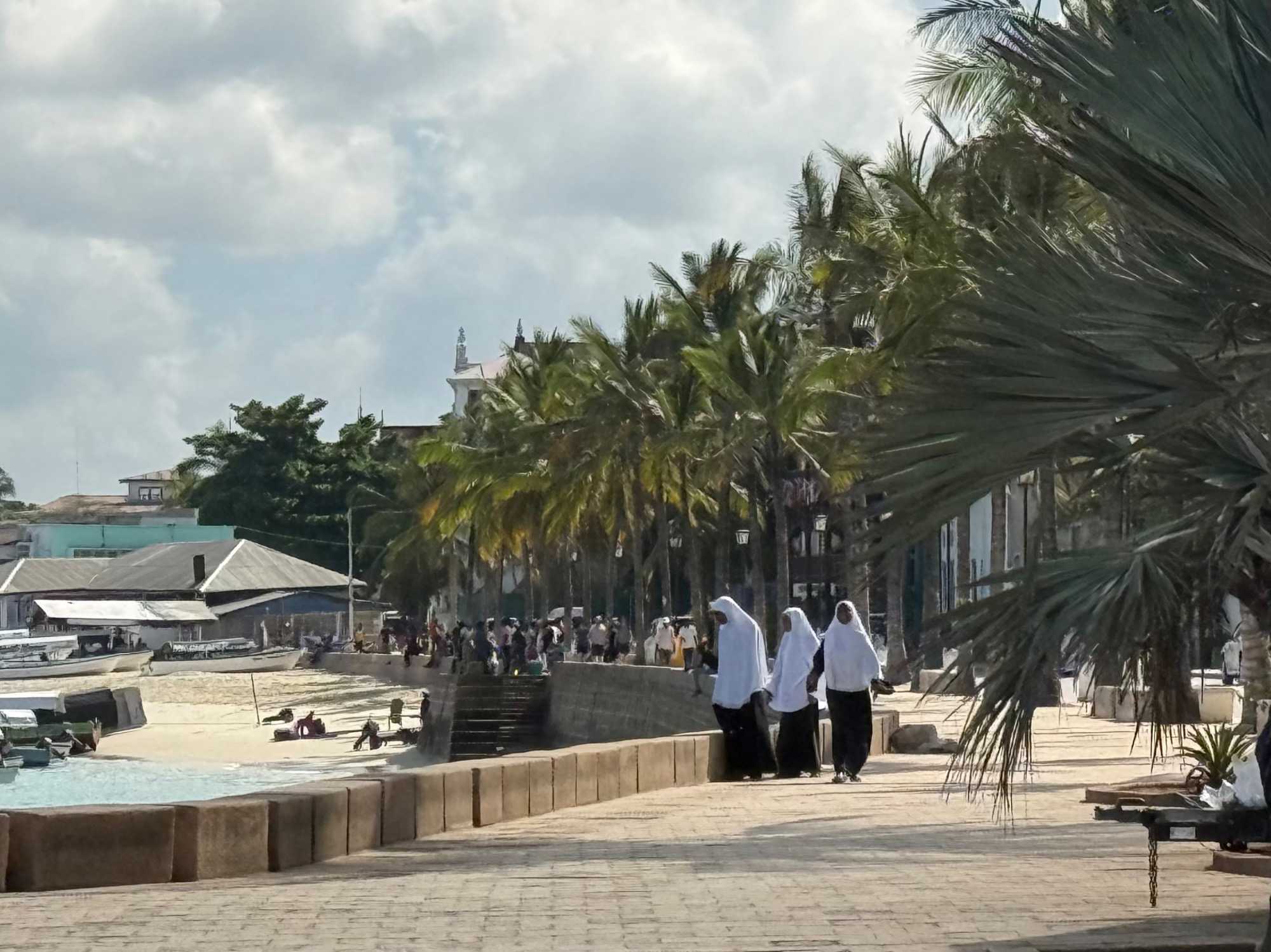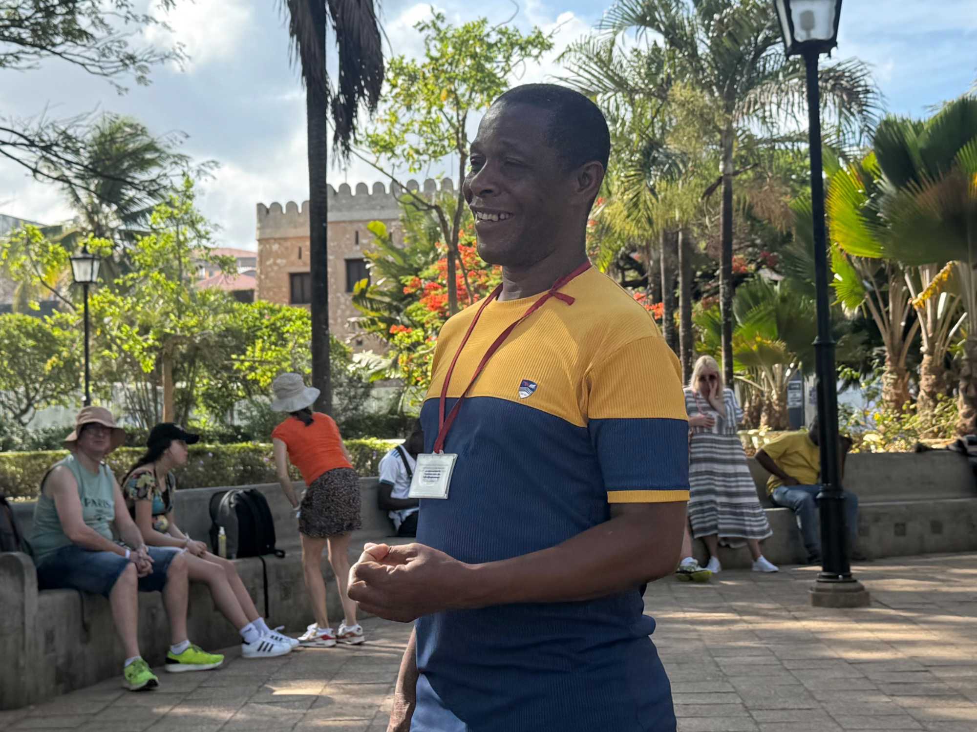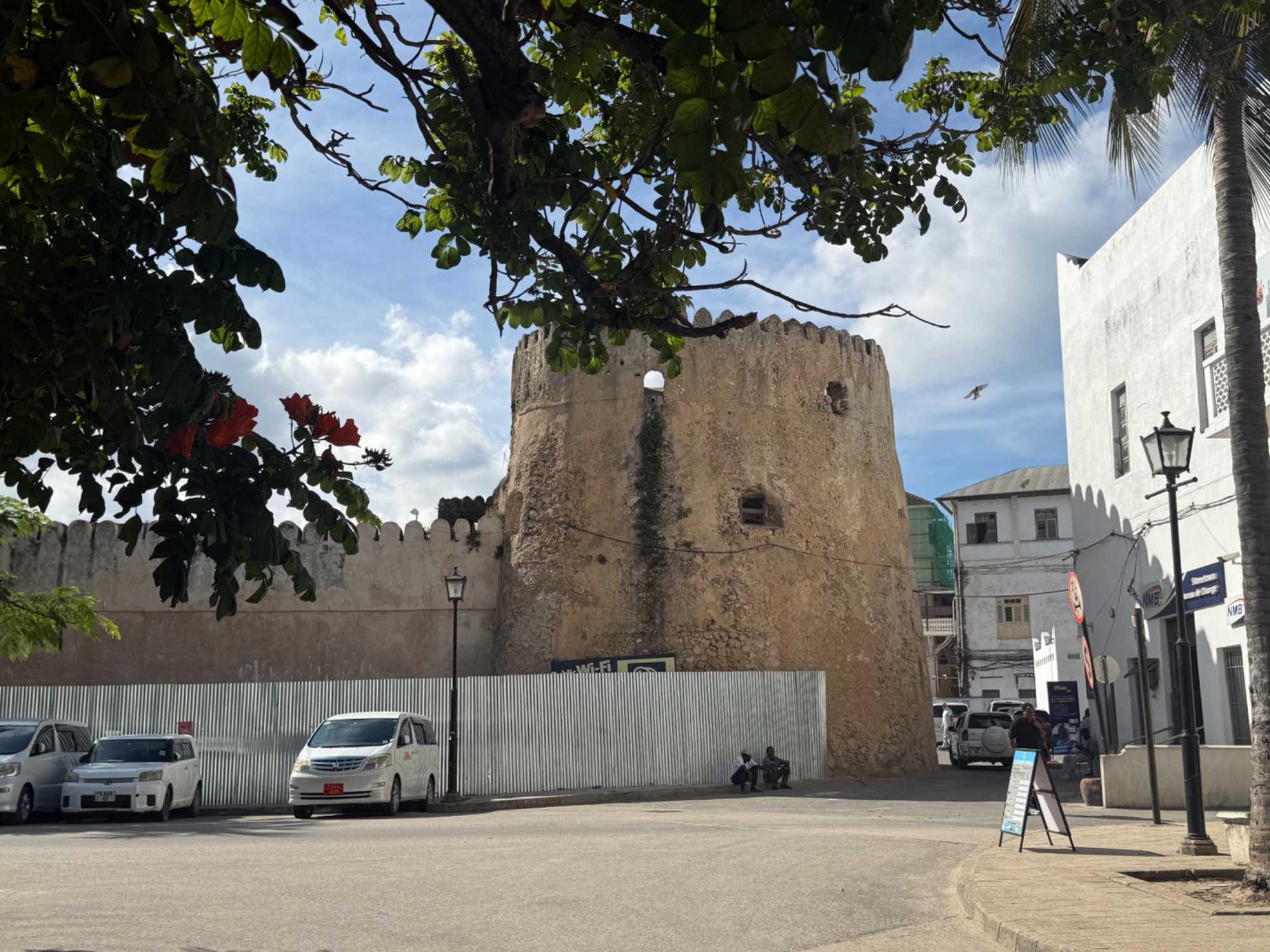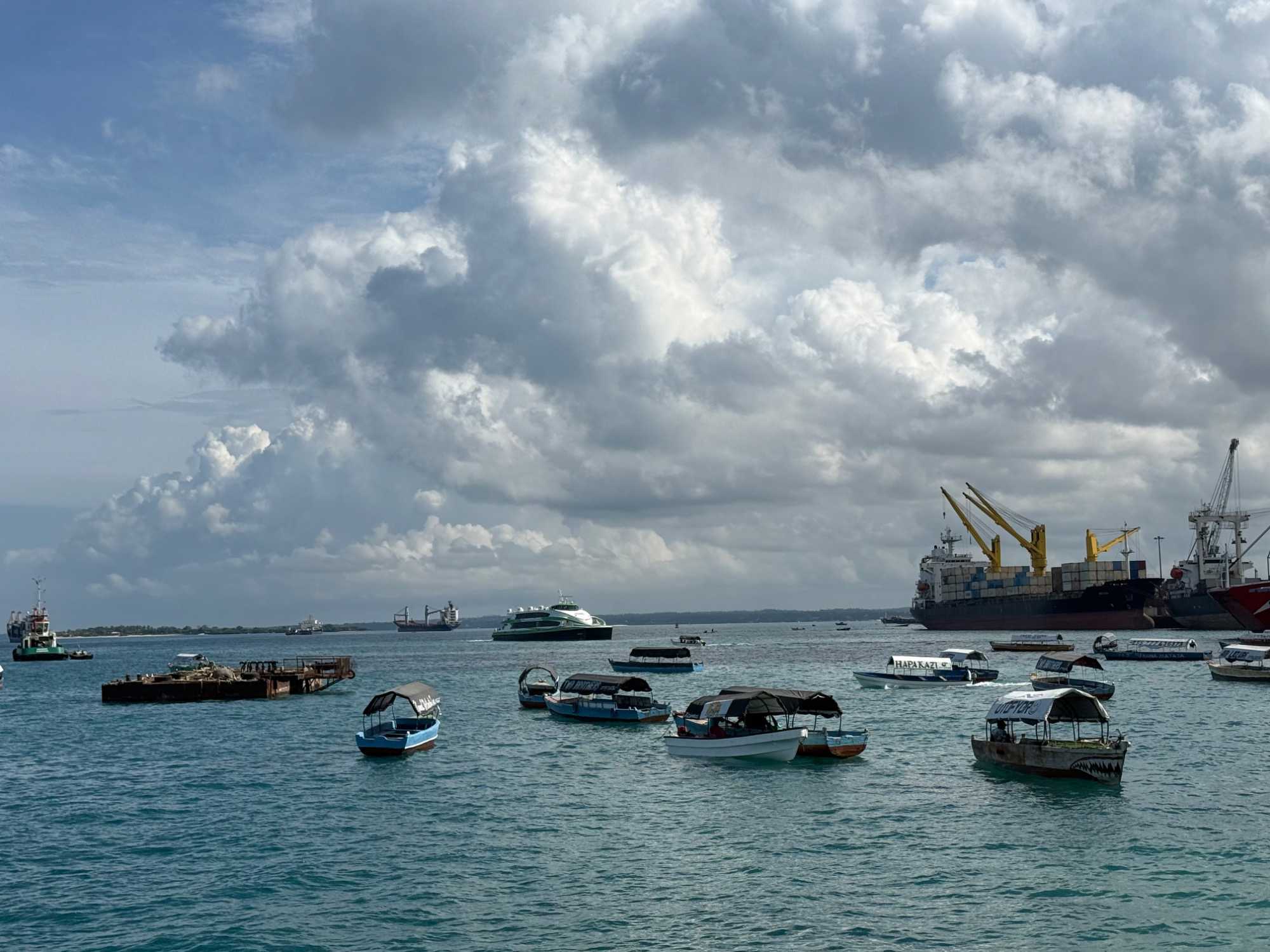 Nous visitons le Vieux Fort, construit par les Omanais au XVIIᵉ siècle pour repousser les Portugais, puis nous longeons le bord de mer où accostent les ferries reliant Zanzibar à Dar es Salaam ainsi qu’aux îles voisines. De nombreux petits bateaux transportent aussi les amateurs de plongée en apnée vers les récifs coralliens et les eaux cristallines peuplées de poissons tropicaux et de tortues. Nous immortalisons de magnifiques scènes de rue, croisons une multitude de chats — omniprésents dans la ville — et faisons quelques achats dans les boutiques locales.