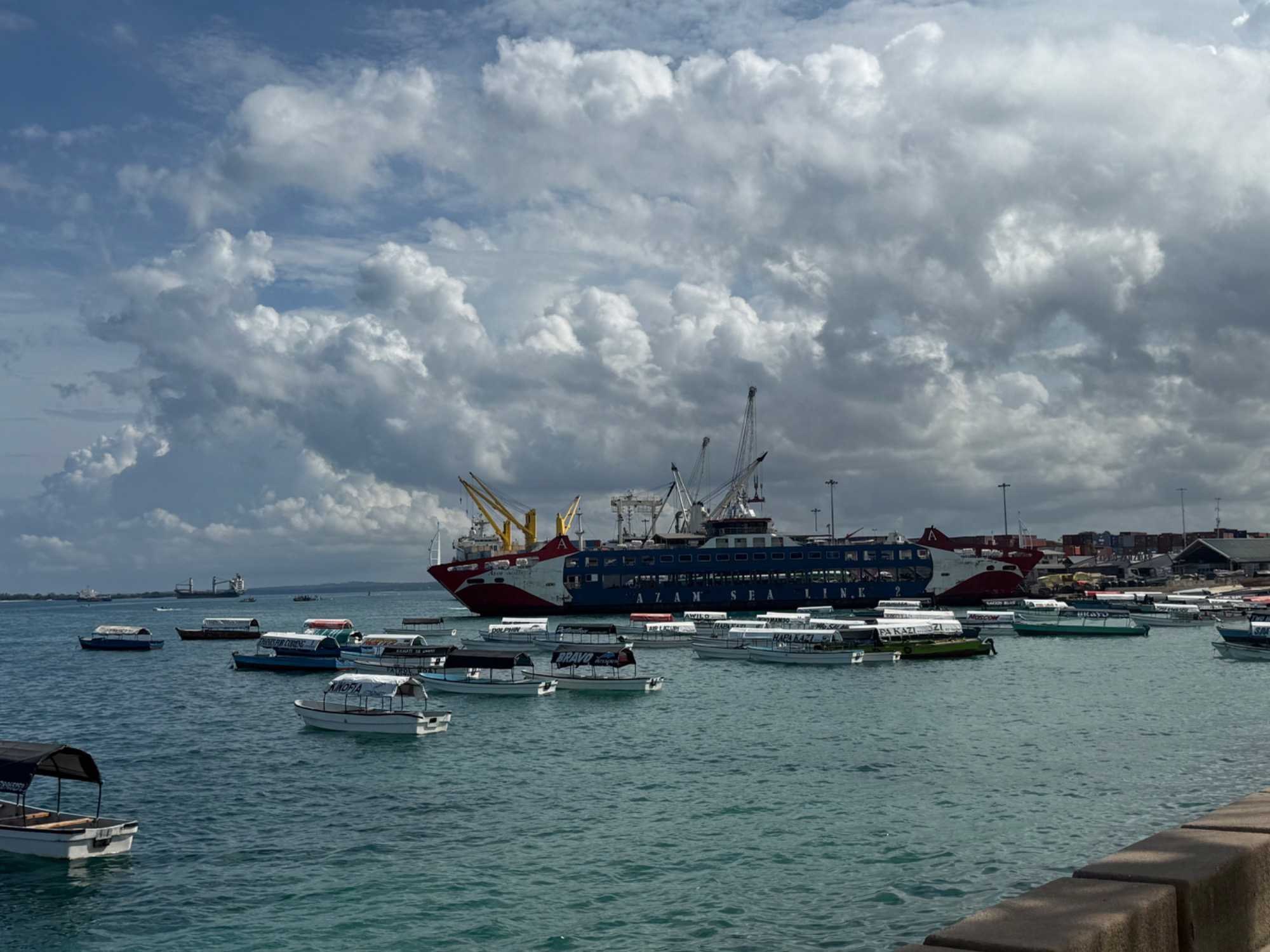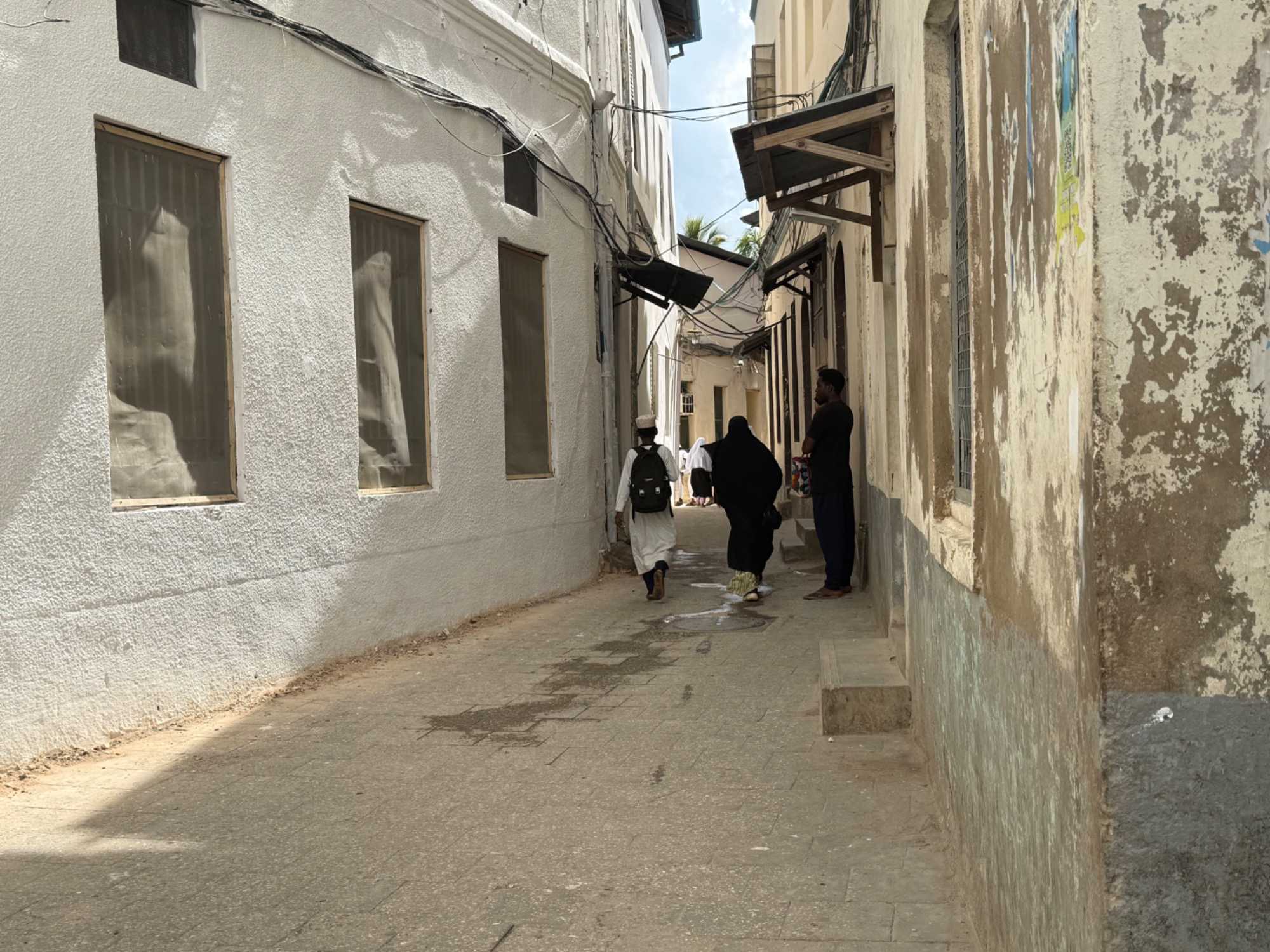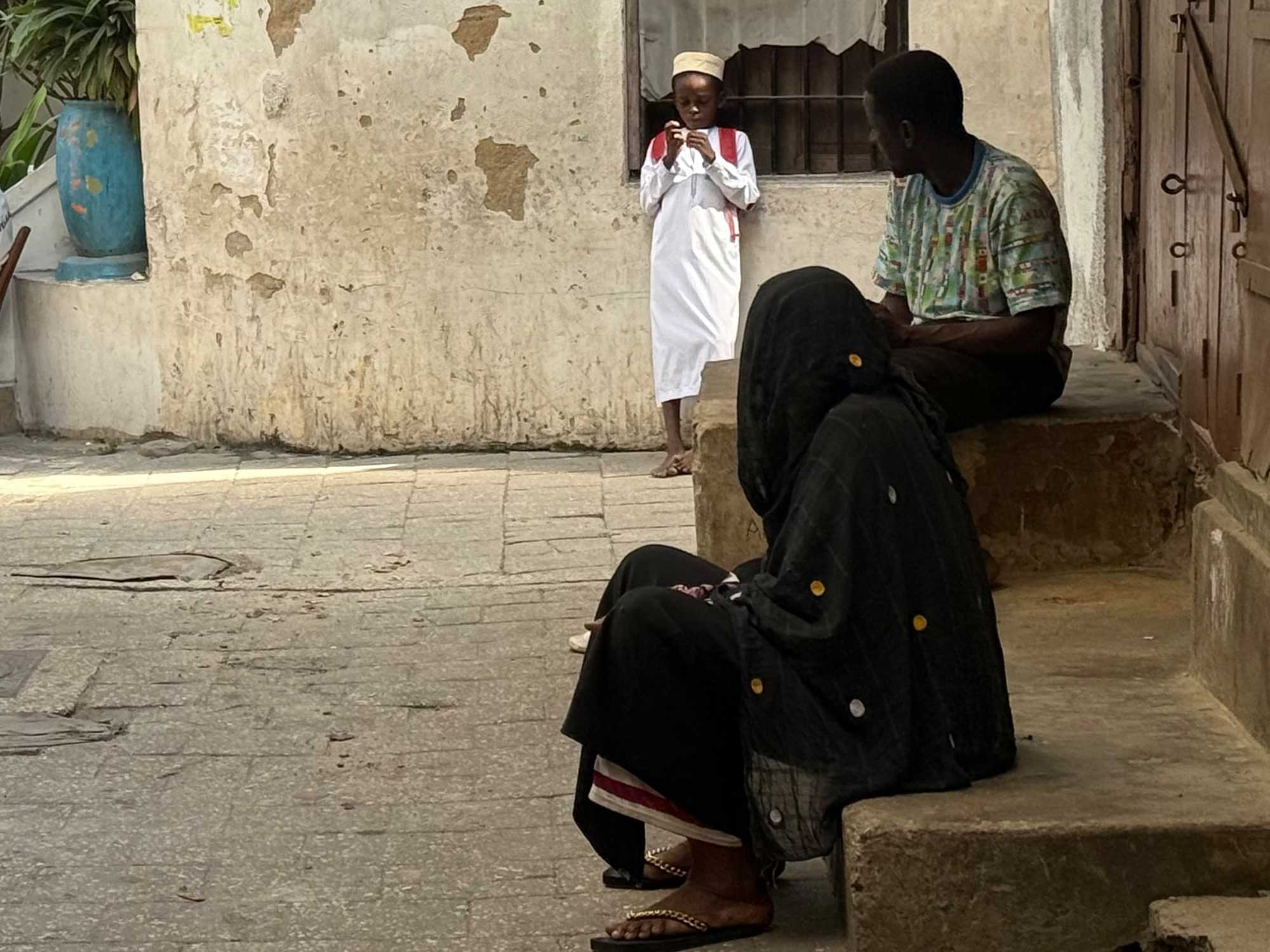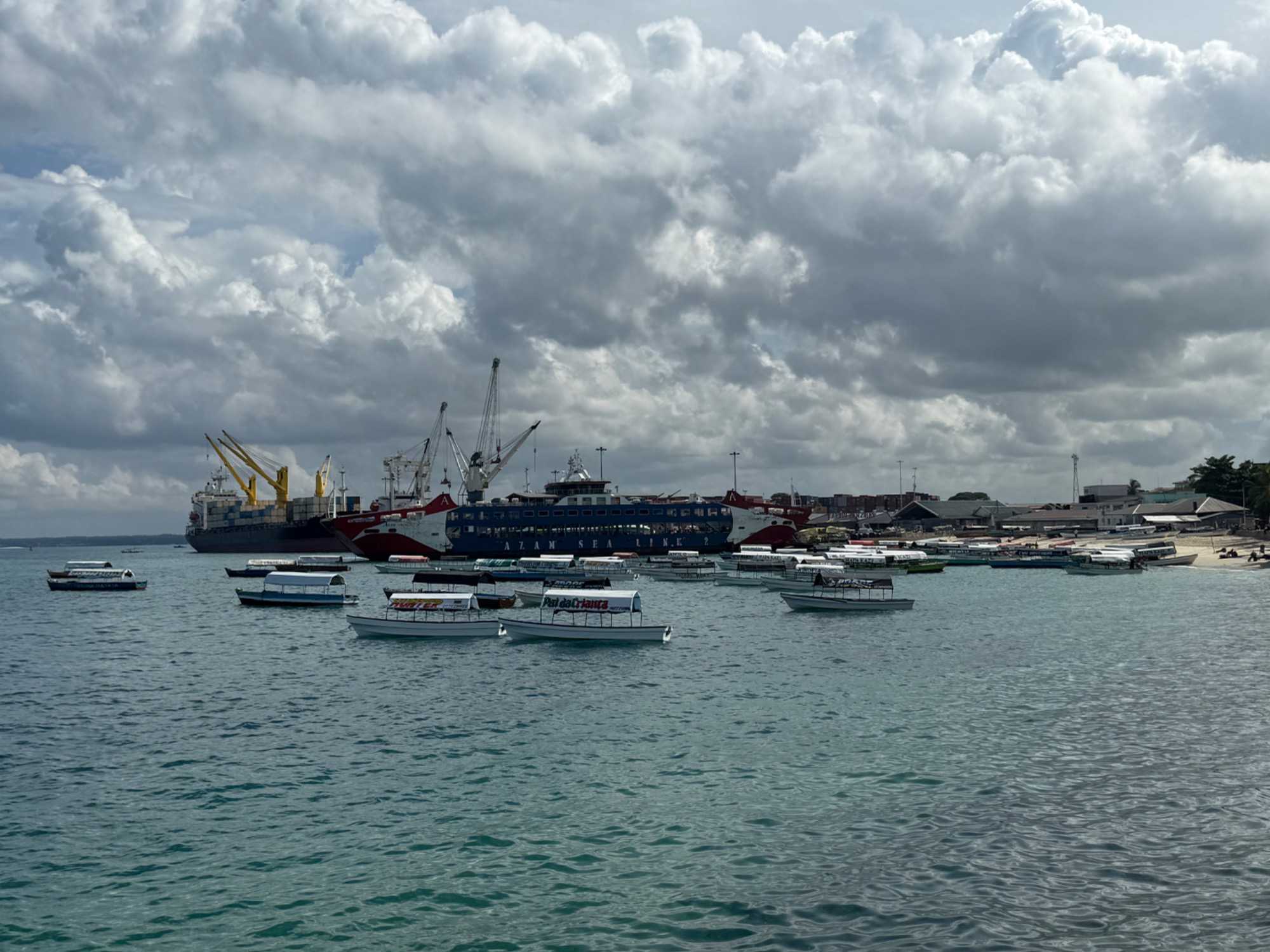 Nous visitons le Vieux Fort, construit par les Omanais au XVIIᵉ siècle pour repousser les Portugais, puis nous longeons le bord de mer où accostent les ferries reliant Zanzibar à Dar es Salaam ainsi qu’aux îles voisines. De nombreux petits bateaux transportent aussi les amateurs de plongée en apnée vers les récifs coralliens et les eaux cristallines peuplées de poissons tropicaux et de tortues. Nous immortalisons de magnifiques scènes de rue, croisons une multitude de chats — omniprésents dans la ville — et faisons quelques achats dans les boutiques locales.