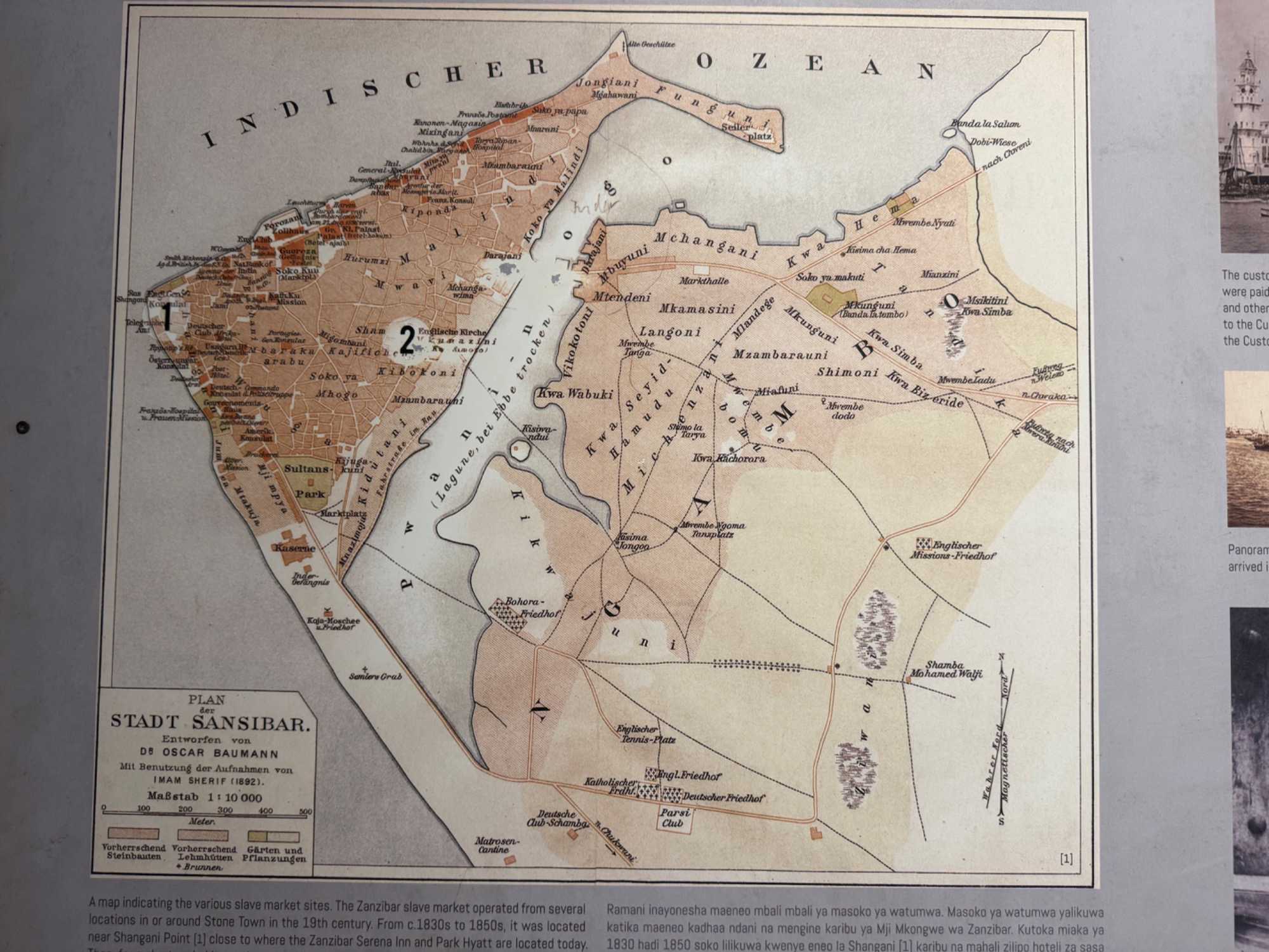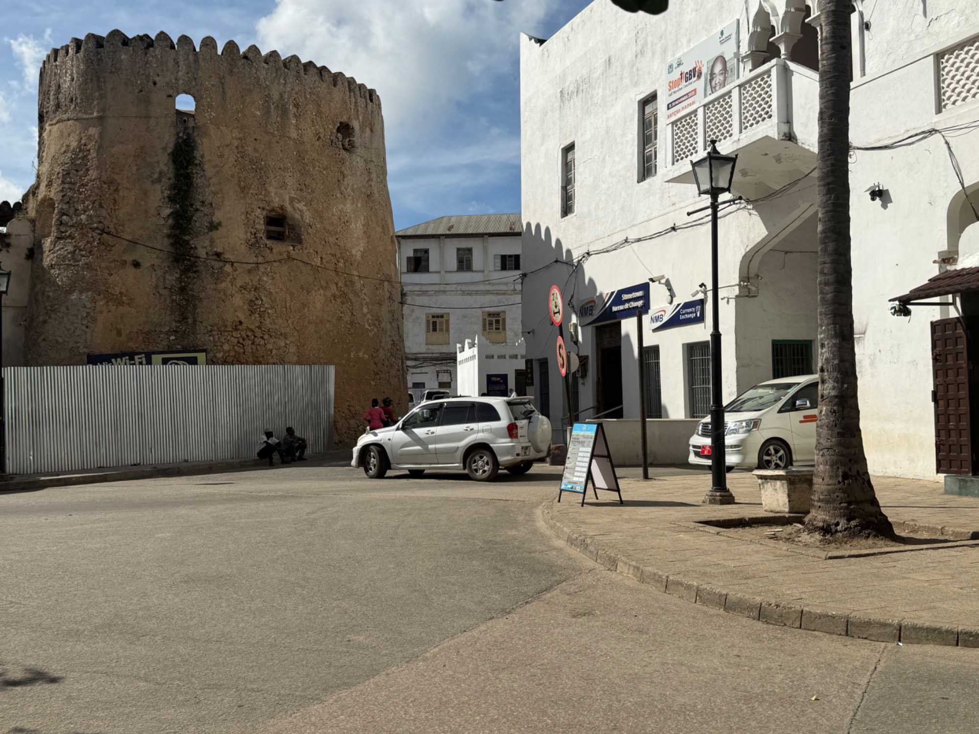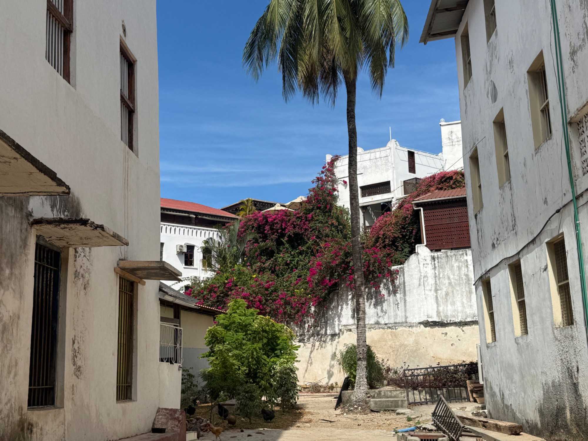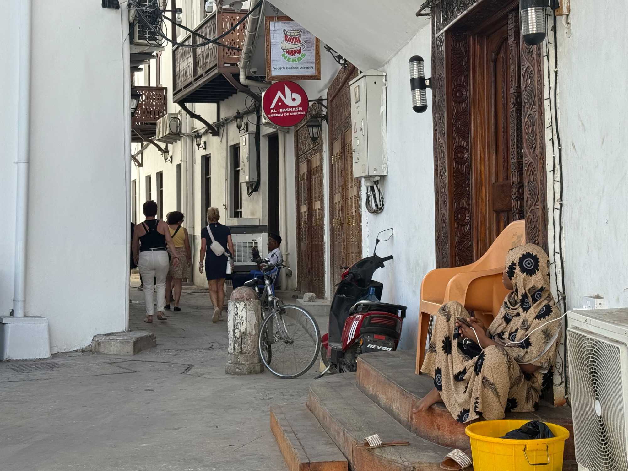 Nous visitons le Vieux Fort, construit par les Omanais au XVIIᵉ siècle pour repousser les Portugais, puis nous longeons le bord de mer où accostent les ferries reliant Zanzibar à Dar es Salaam ainsi qu’aux îles voisines. De nombreux petits bateaux transportent aussi les amateurs de plongée en apnée vers les récifs coralliens et les eaux cristallines peuplées de poissons tropicaux et de tortues. Nous immortalisons de magnifiques scènes de rue, croisons une multitude de chats — omniprésents dans la ville — et faisons quelques achats dans les boutiques locales.