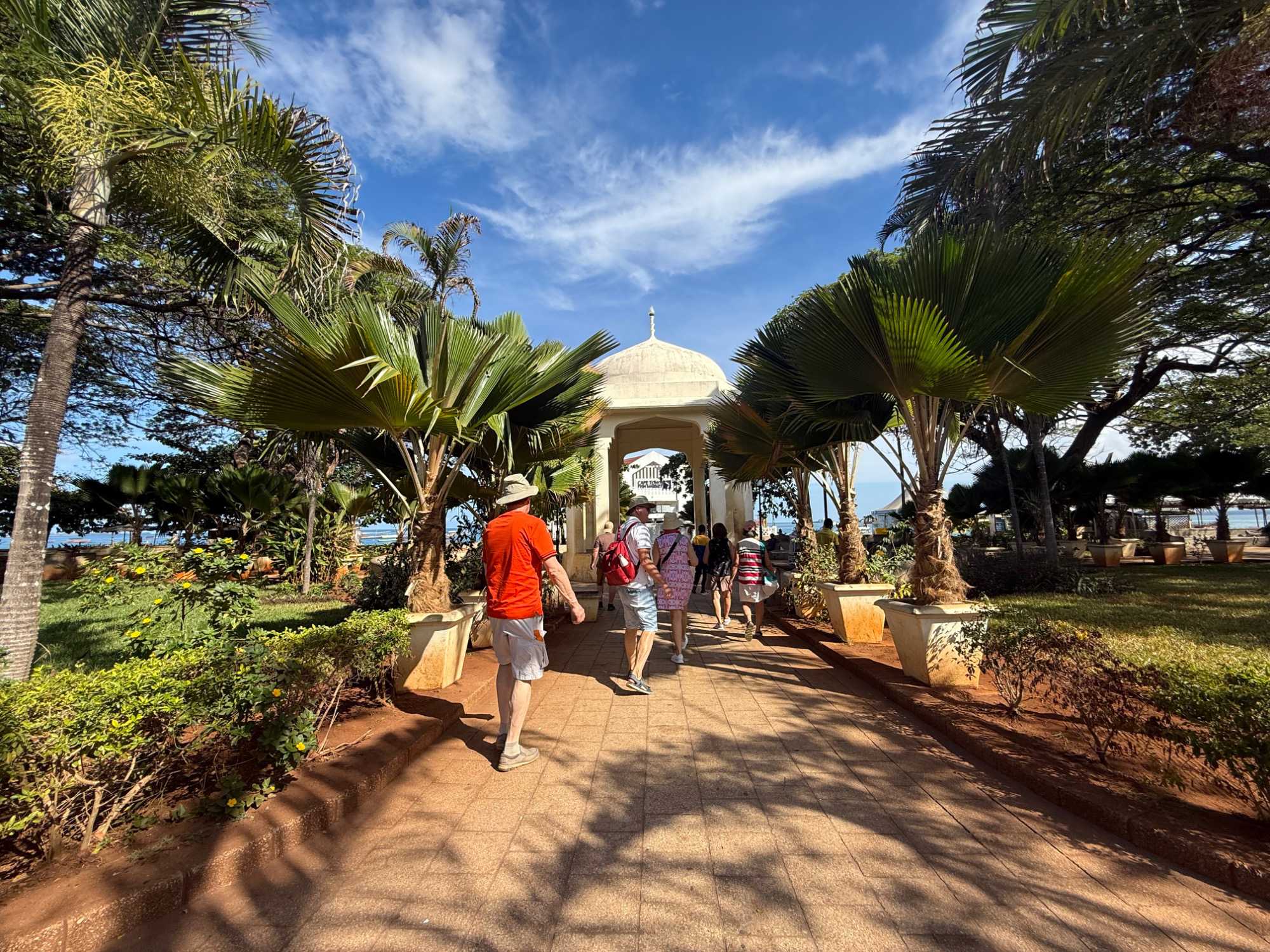 Nous poursuivons alors vers le nord de l’île et atteignons enfin notre destination pour les cinq prochaines nuits : le magnifique RIU Palace Zanzibar. La chaîne RIU possède trois hôtels voisins sur l’île, mais notre choix s’est arrêté sur le Palace pour son élégance et son atmosphère raffinée. Dès notre arrivée, nous sommes charmés par ses jardins luxuriants impeccablement entretenus, ses bungalows harmonieux, ses coins détente invitants et son ambiance à la fois chic et chaleureuse. Cinq restaurants et plusieurs bars agrémenteront notre séjour — nul doute que s’installer ici pour quelques jours sera un pur bonheur.