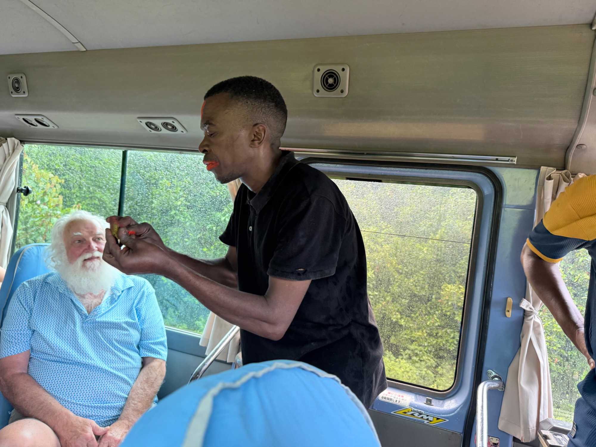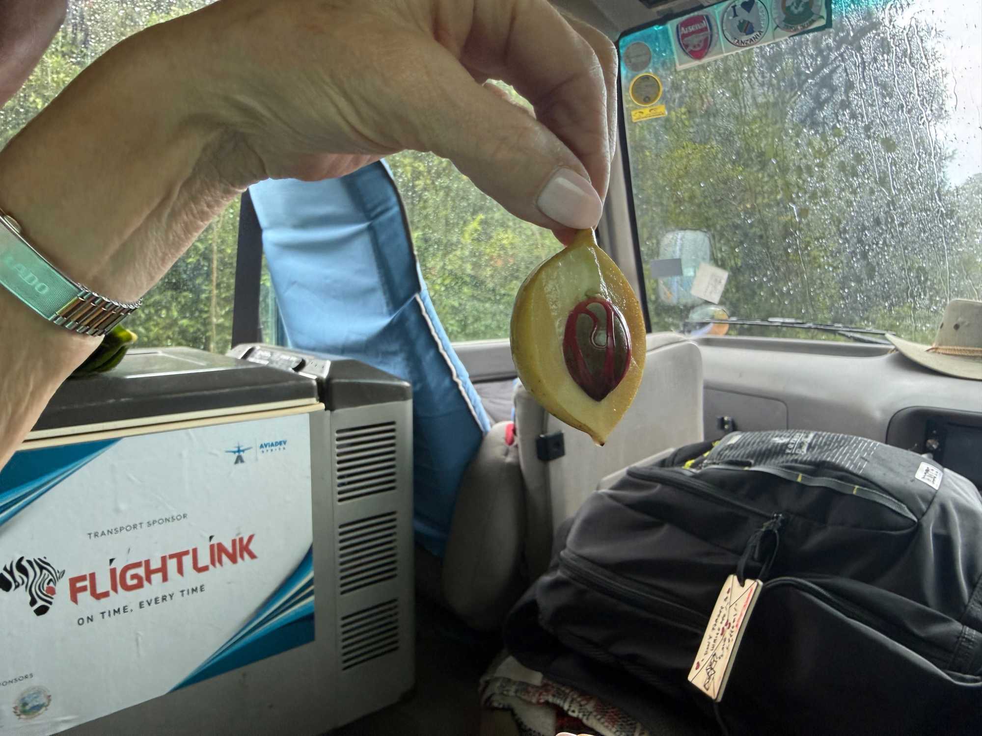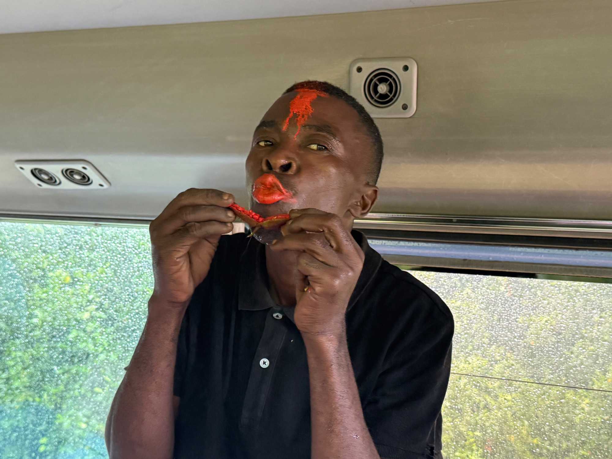 Notre prochaine étape nous mène vers une plantation d’épices. Zanzibar mérite pleinement son surnom d’« île aux épices ». Nous découvrons, malgré un impressionnant orage tropical, la cannelle fraîche, la cardamome, la citronnelle, la muscade et le clou de girofle. Bien installés dans notre véhicule pendant la pluie torrentielle, nous voyons notre courageux guide du site courir sous l’averse pour nous rapporter feuilles, écorces et gousses parfumées afin de nous les faire sentir. Une expérience sensorielle inoubliable. Puis, comme souvent sous les tropiques, le soleil revient, la pluie cesse et la lumière redevient éclatante.