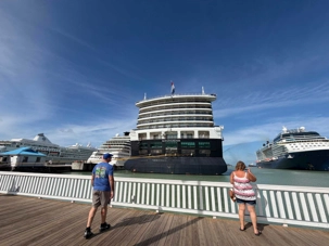Ce matin, nous sommes arrivés en douceur au port de Saint John's, sous un soleil magnifique qui illuminait les eaux turquoise. Dès les premiers instants, l’île de Antigua nous a charmés par sa lumière éclatante et son atmosphère paisible.