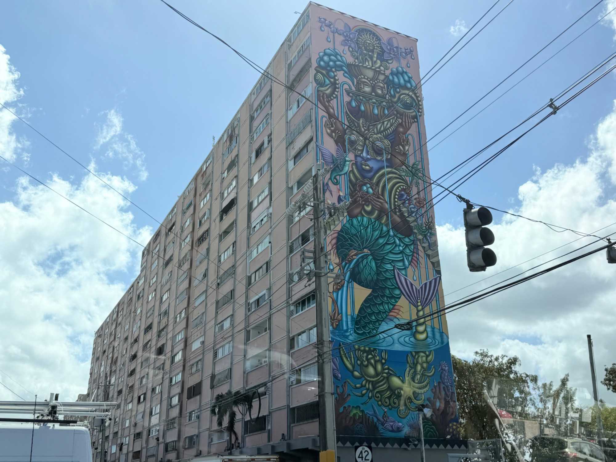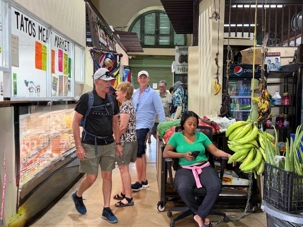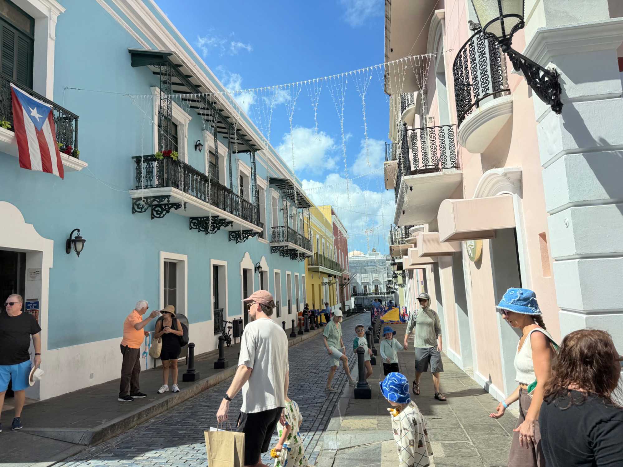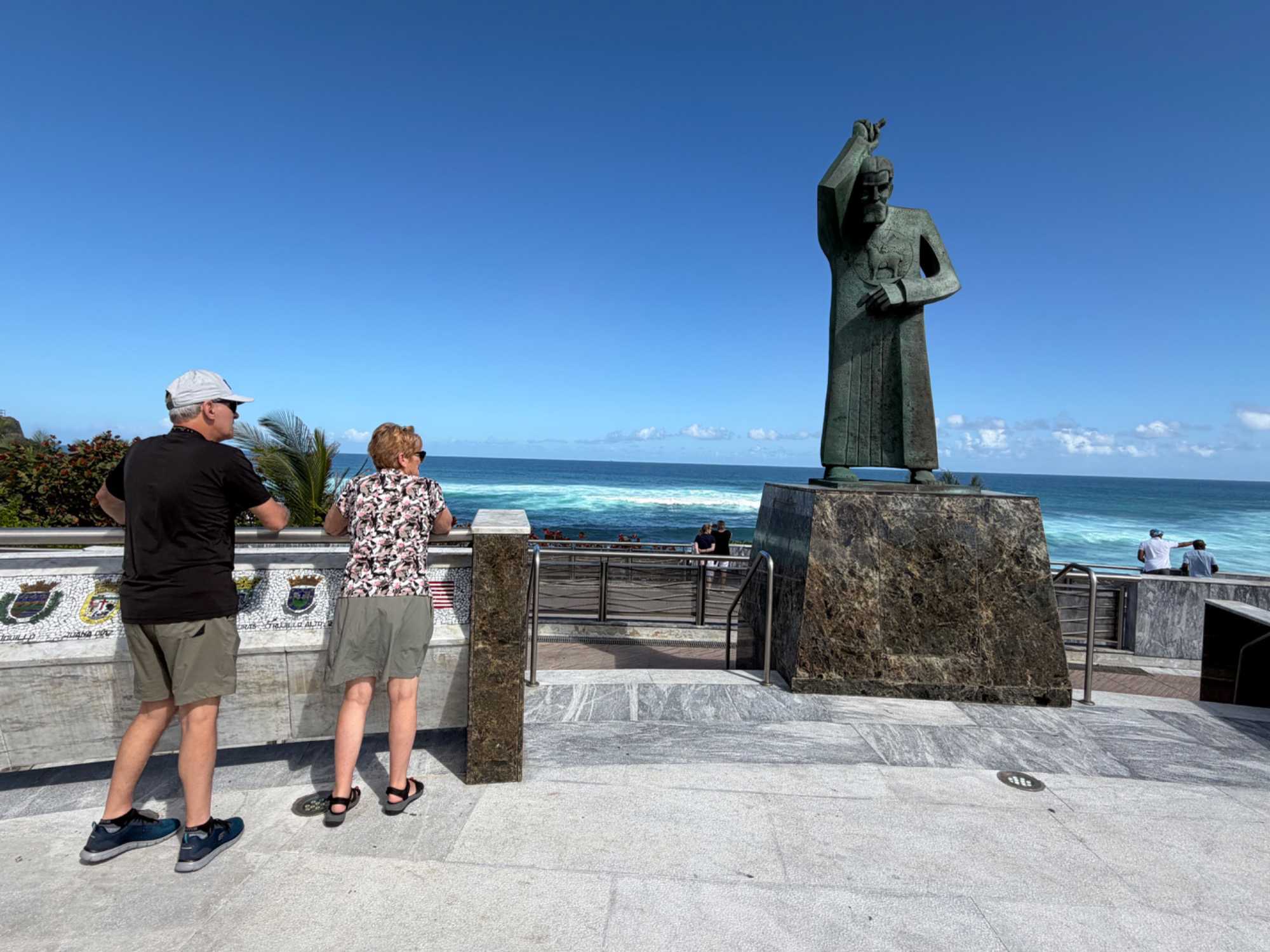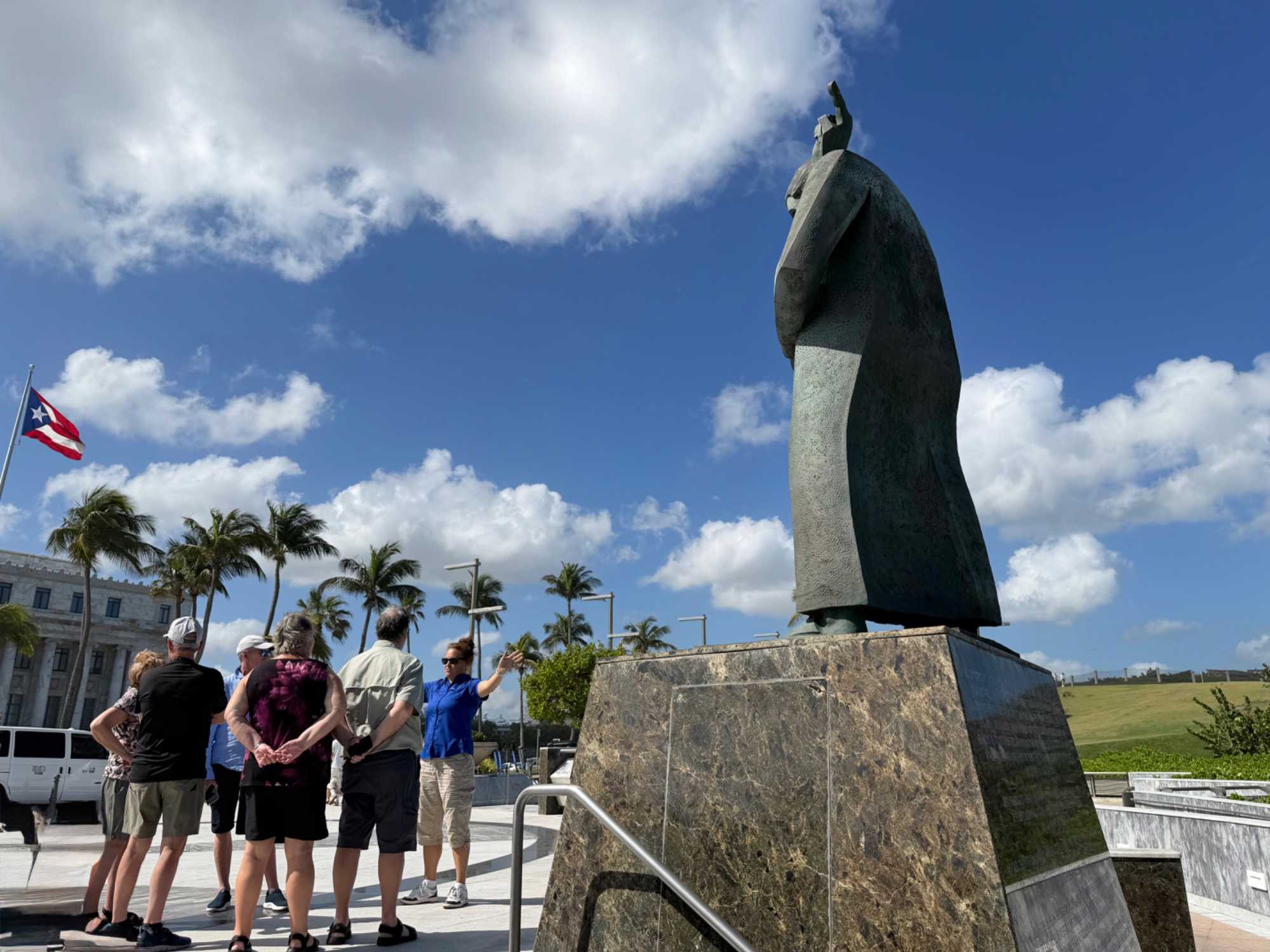 Nous avions ensuite rendez-vous avec notre guide locale Marie-Claude, une Québécoise chaleureuse qui nous a accueillis avec le sourire et nous a fait découvrir Porto Rico avec des explications claires, passionnantes et très détaillées. Grâce à elle, nous avons plongé dans l’histoire de l’île, d’abord habitée par les Taïnos, puis marquée par l’arrivée des Espagnols à la fin du XVe siècle. Porto Rico est rapidement devenu un point stratégique majeur dans les Caraïbes, avant de passer sous administration américaine à la fin du XIXᵉ siècle, tout en conservant une identité culturelle riche et vibrante.