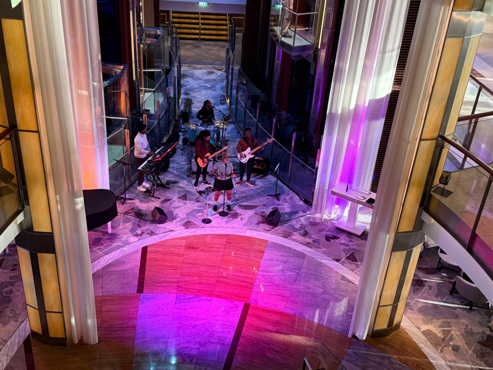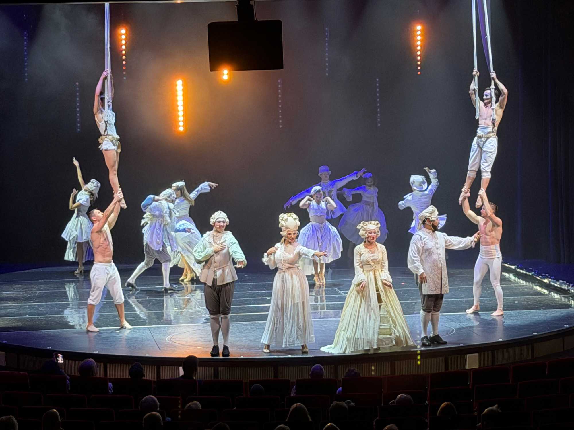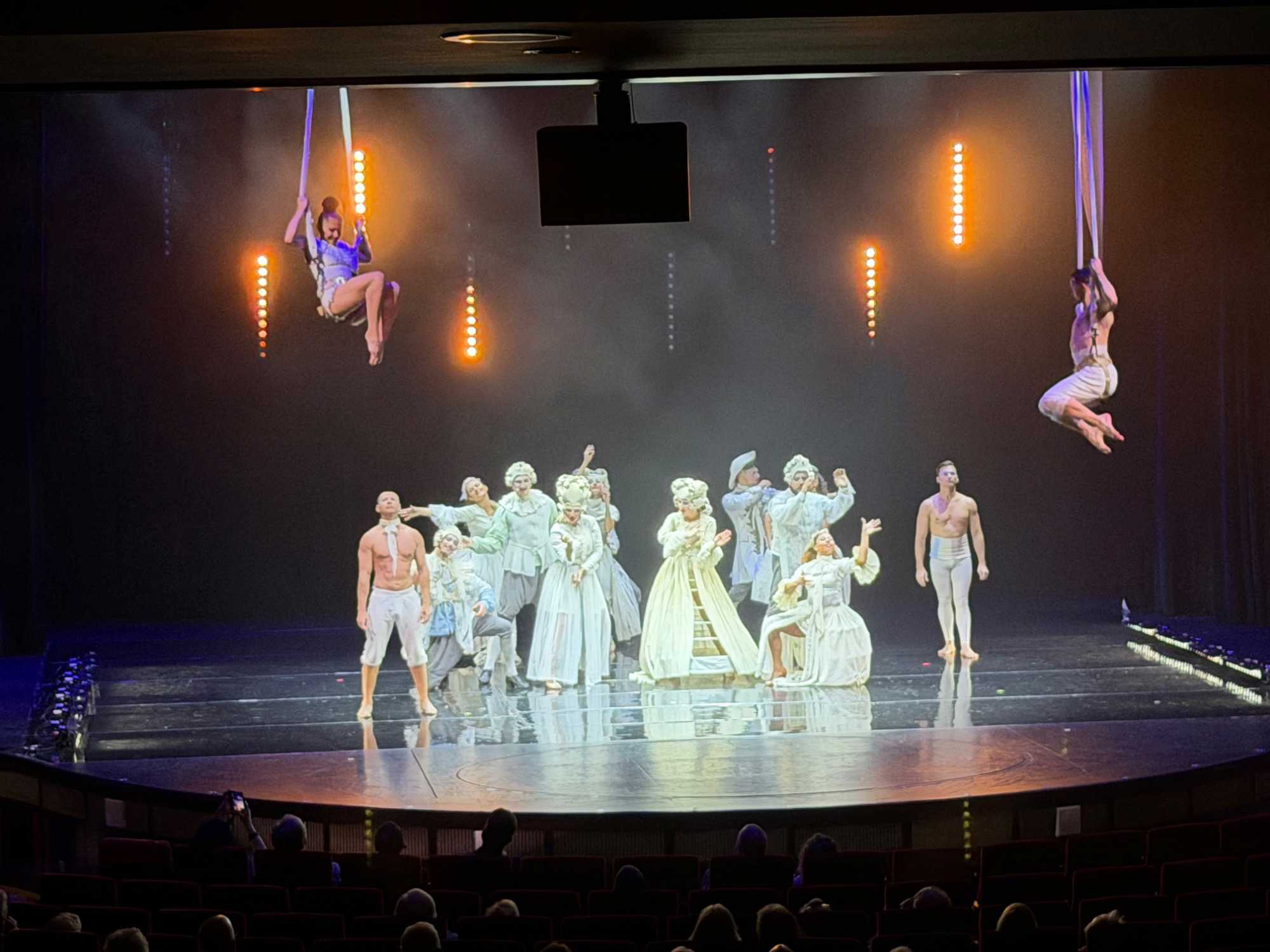 Le spectacle Amade nous a fait voyager à travers l’évolution de la musique, en montrant comment les œuvres de Wolfgang Amadeus Mozart et d’autres grands compositeurs classiques ont inspiré la musique moderne. Des morceaux actuels remixés et réinventés se sont mêlés aux sonorités classiques dans une mise en scène impressionnante, célébrant le passage du classique au contemporain. Un spectacle primé, animé avec beaucoup d’énergie par le directeur de la croisière Kristoff.