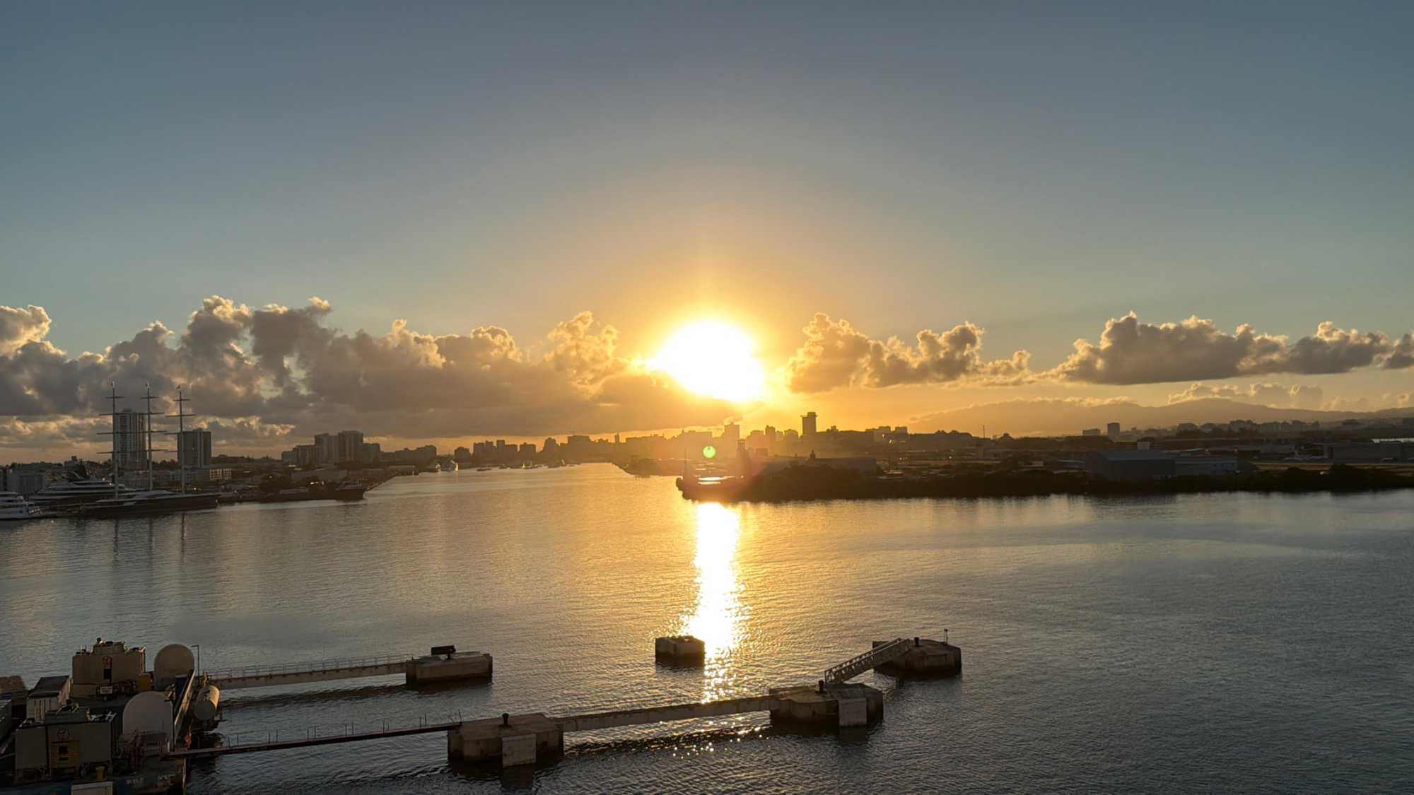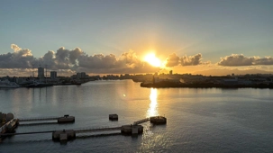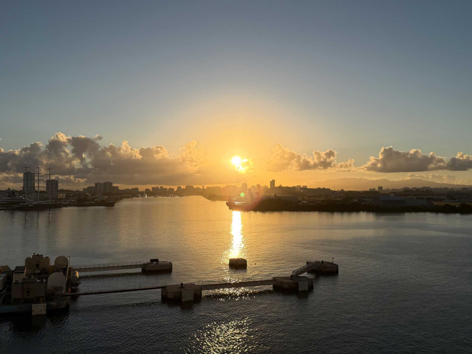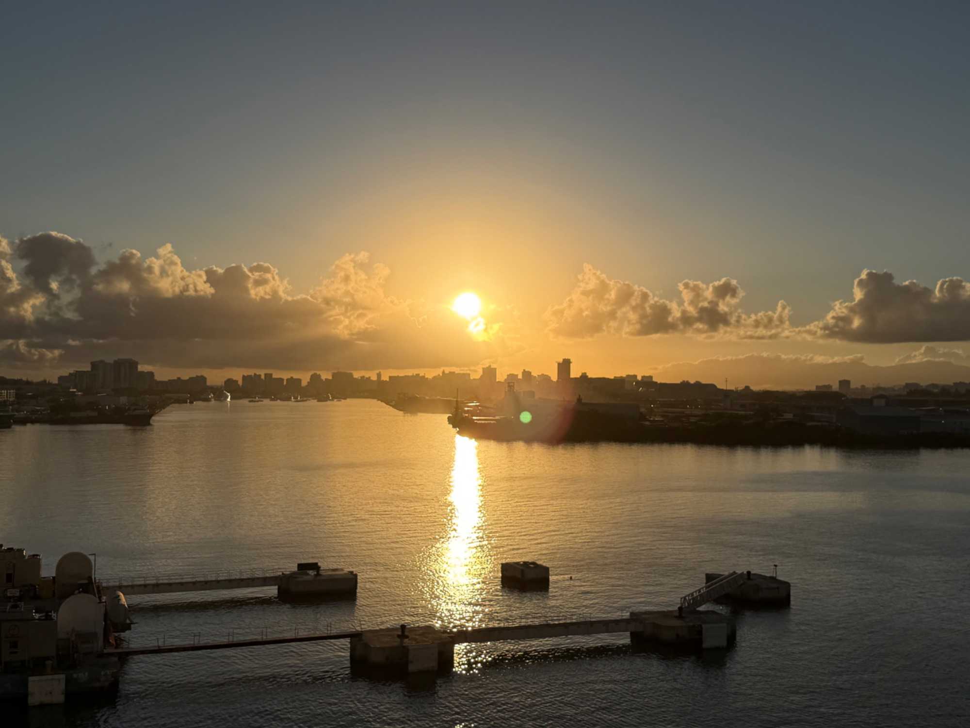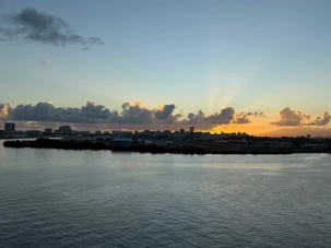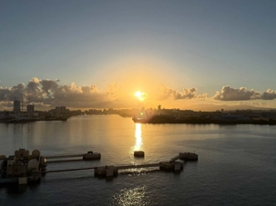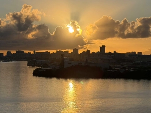 Ce matin, notre bateau est arrivé à 7 h 00, au moment du soleil levant, nous offrant un spectacle absolument magnifique. Les teintes dorées illuminaient l’océan et la ville, annonçant une journée remplie de découvertes et de beaux moments.