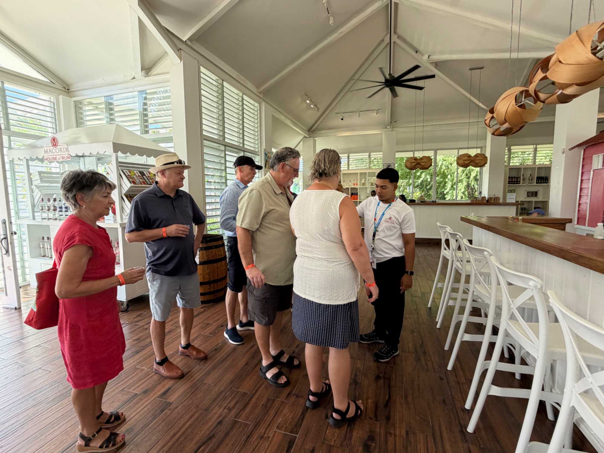 Nous avons commencé notre visite par la célèbre Macorix House of Rum, où nous avons découvert les secrets de fabrication du rhum, véritable fierté des Caraïbes. La canne à sucre est récoltée, pressée pour en extraire le jus, puis cuite afin d’obtenir une mélasse riche en sucre. Cette mélasse est ensuite fermentée avec de l’eau et des levures naturelles, distillée dans des alambics, puis vieillie en fûts de chêne pendant plusieurs années. Ce long processus donne un rhum doux, doré et parfumé aux arômes de vanille, caramel et épices.