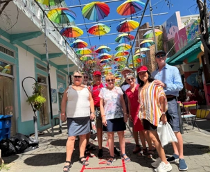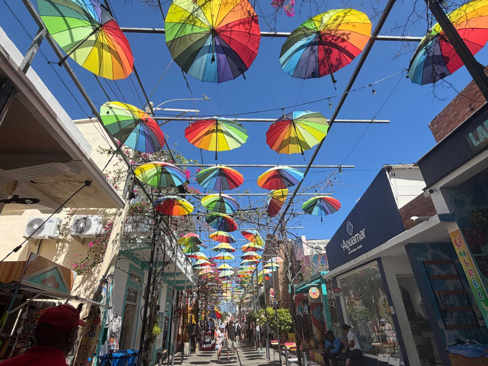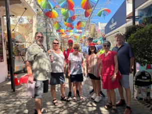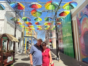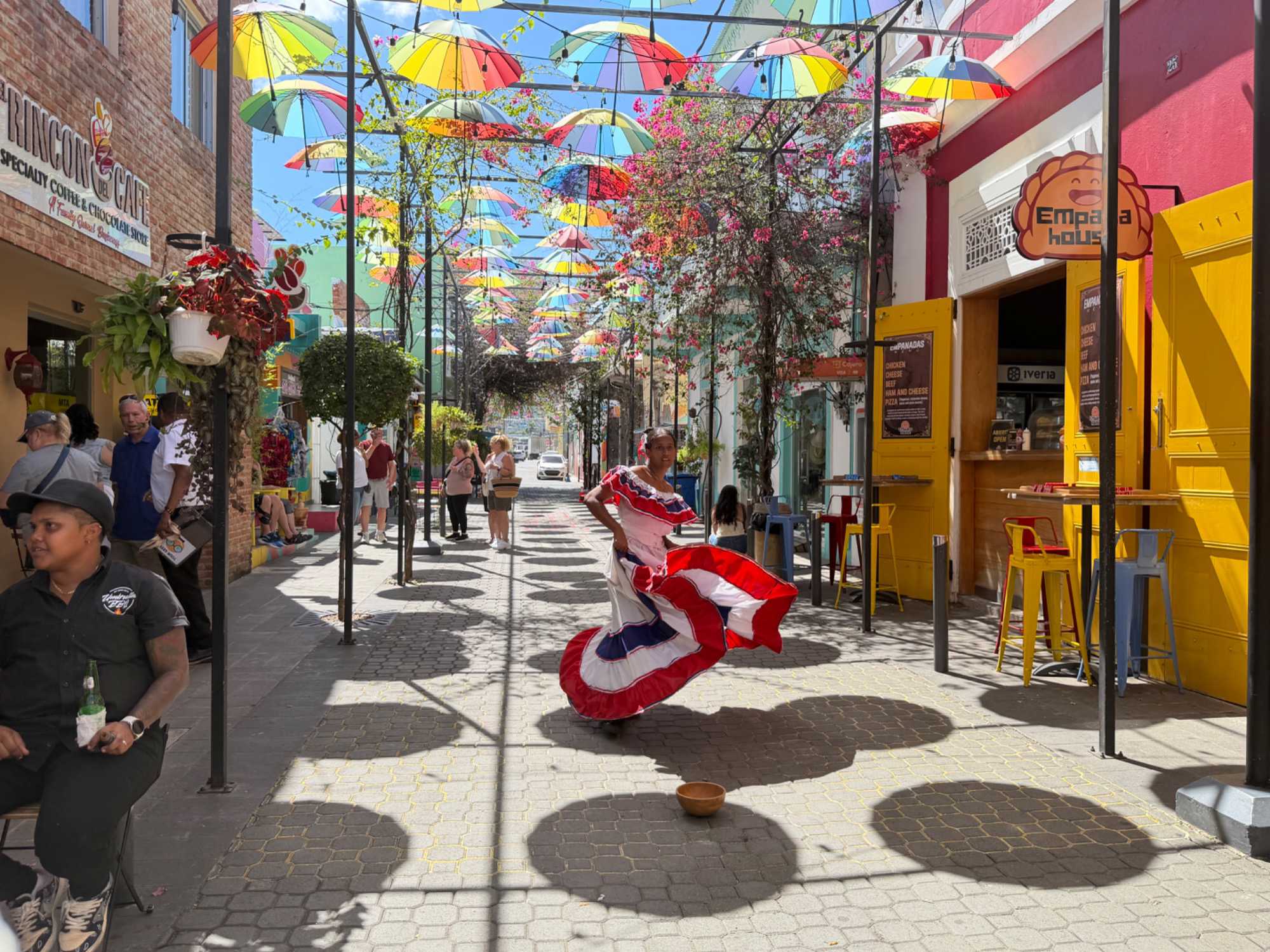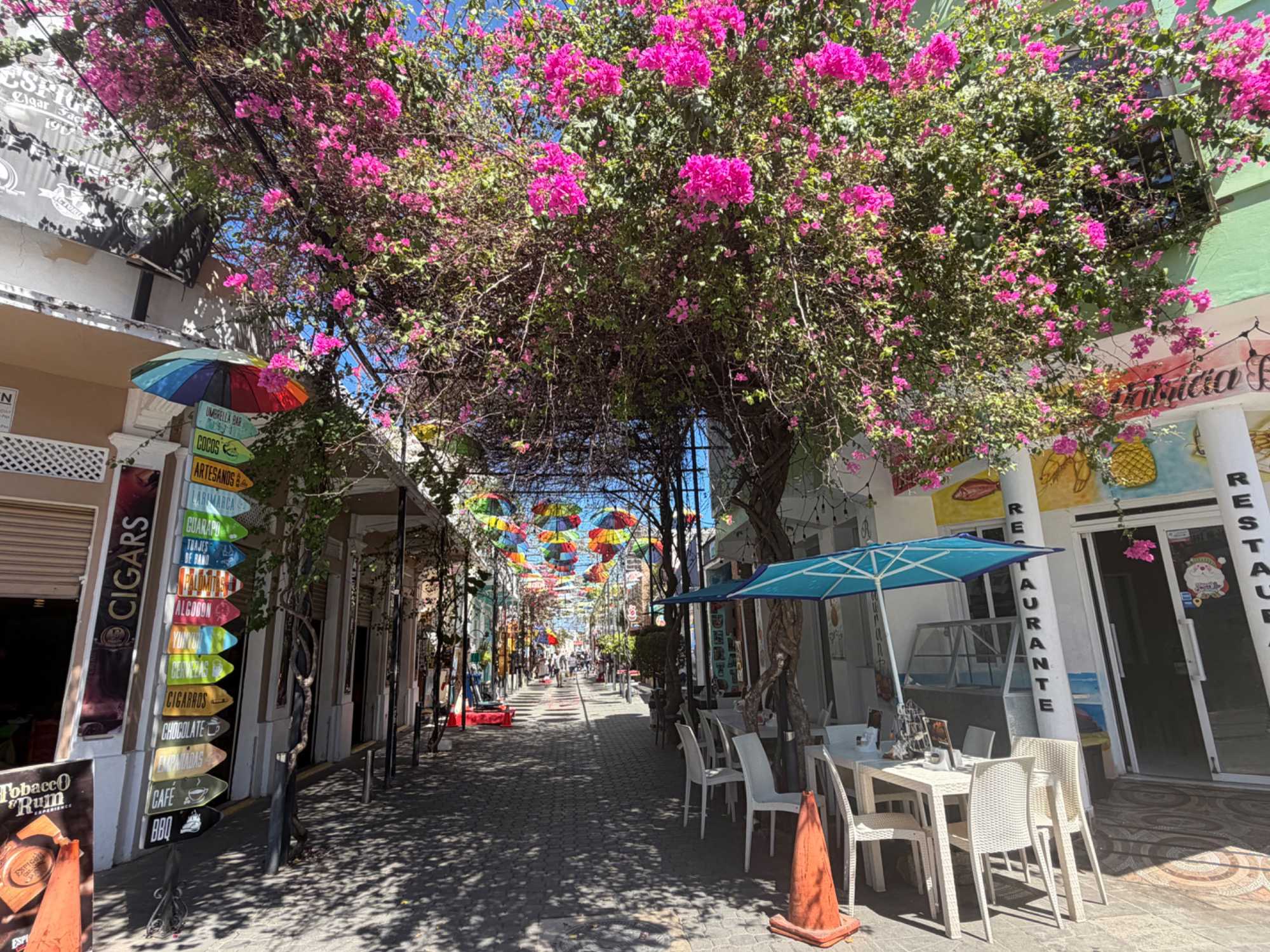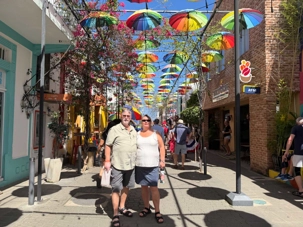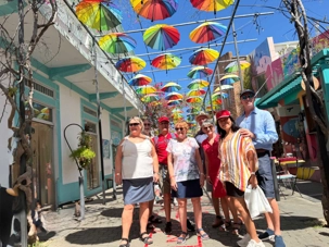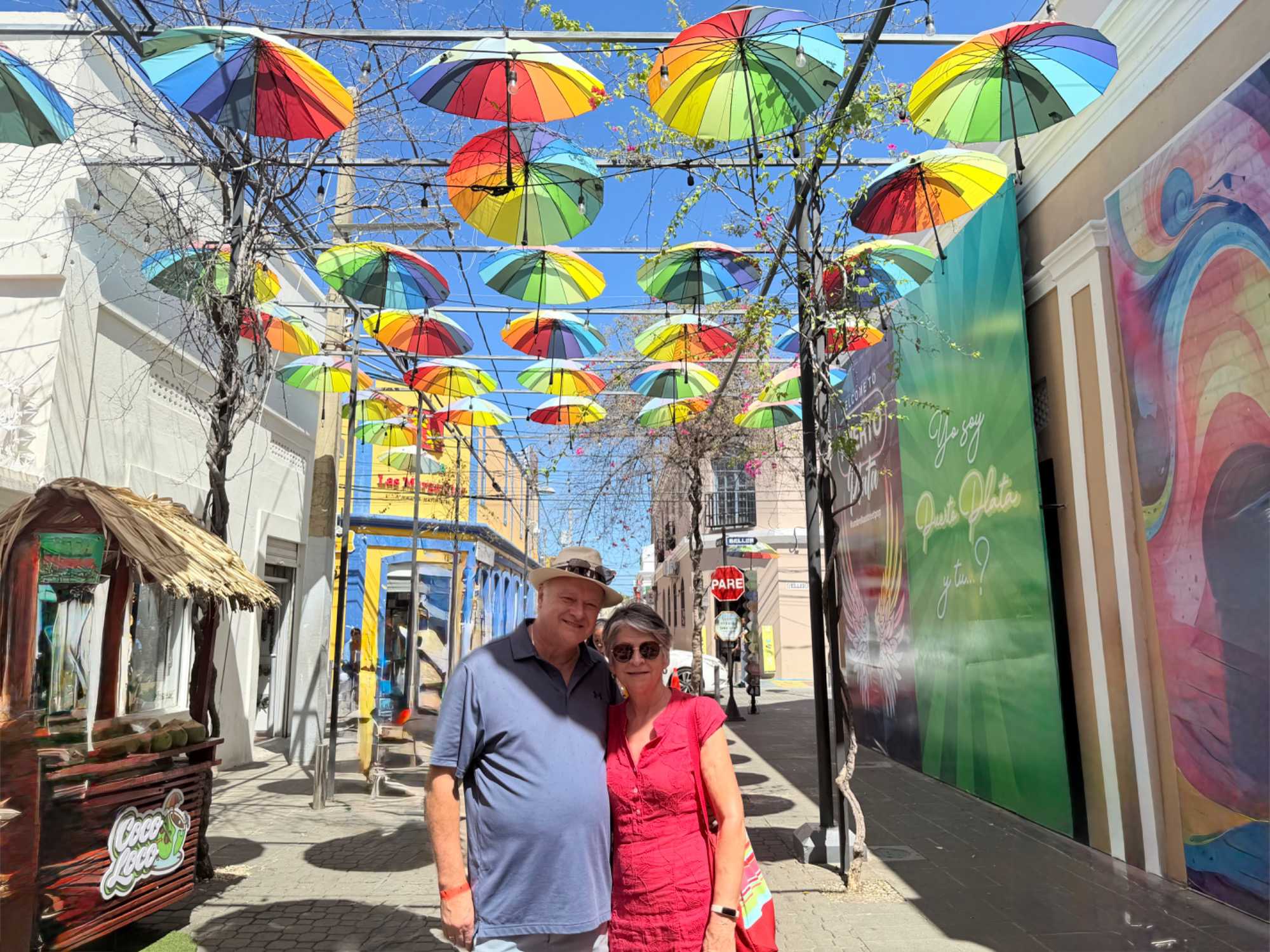 Nous avons poursuivi notre promenade dans la magnifique rue colorée du Paseo de Dona Blanca, pleine de vie et de joie, puis dans la célèbre Umbrella Stress Puerto Plata, décorée de centaines de parapluies suspendus au-dessus de nos têtes, créant une ambiance féerique. Juste après, nous avons parcouru la rue rose, aménagée en l’honneur de la lutte contre le cancer du sein, un moment touchant et symbolique pour tous.