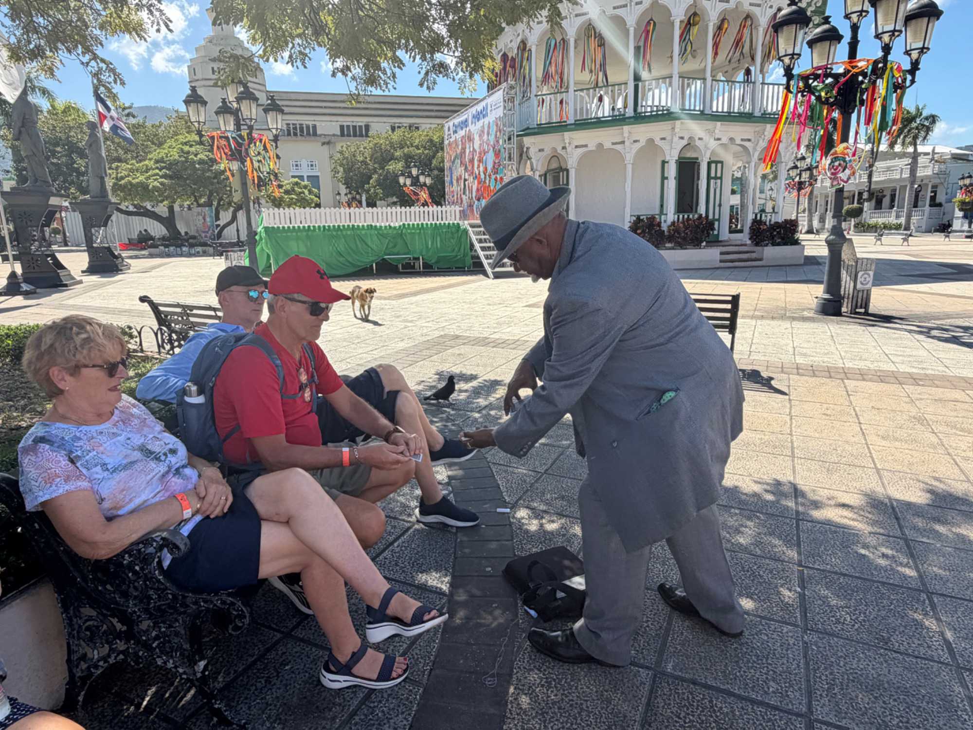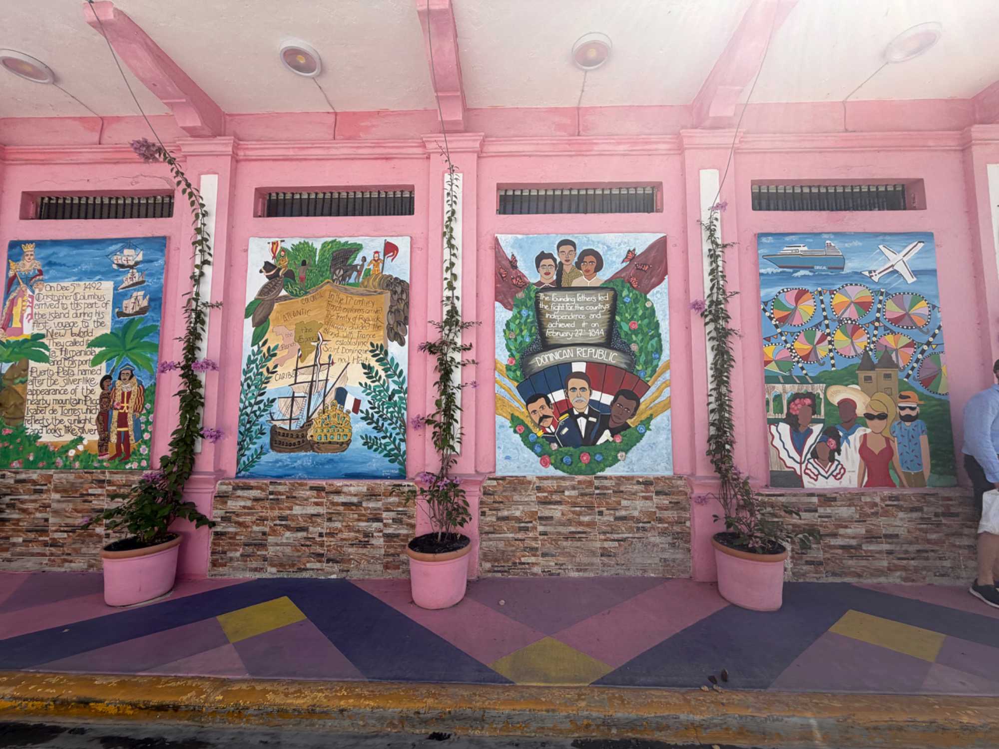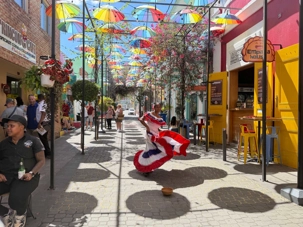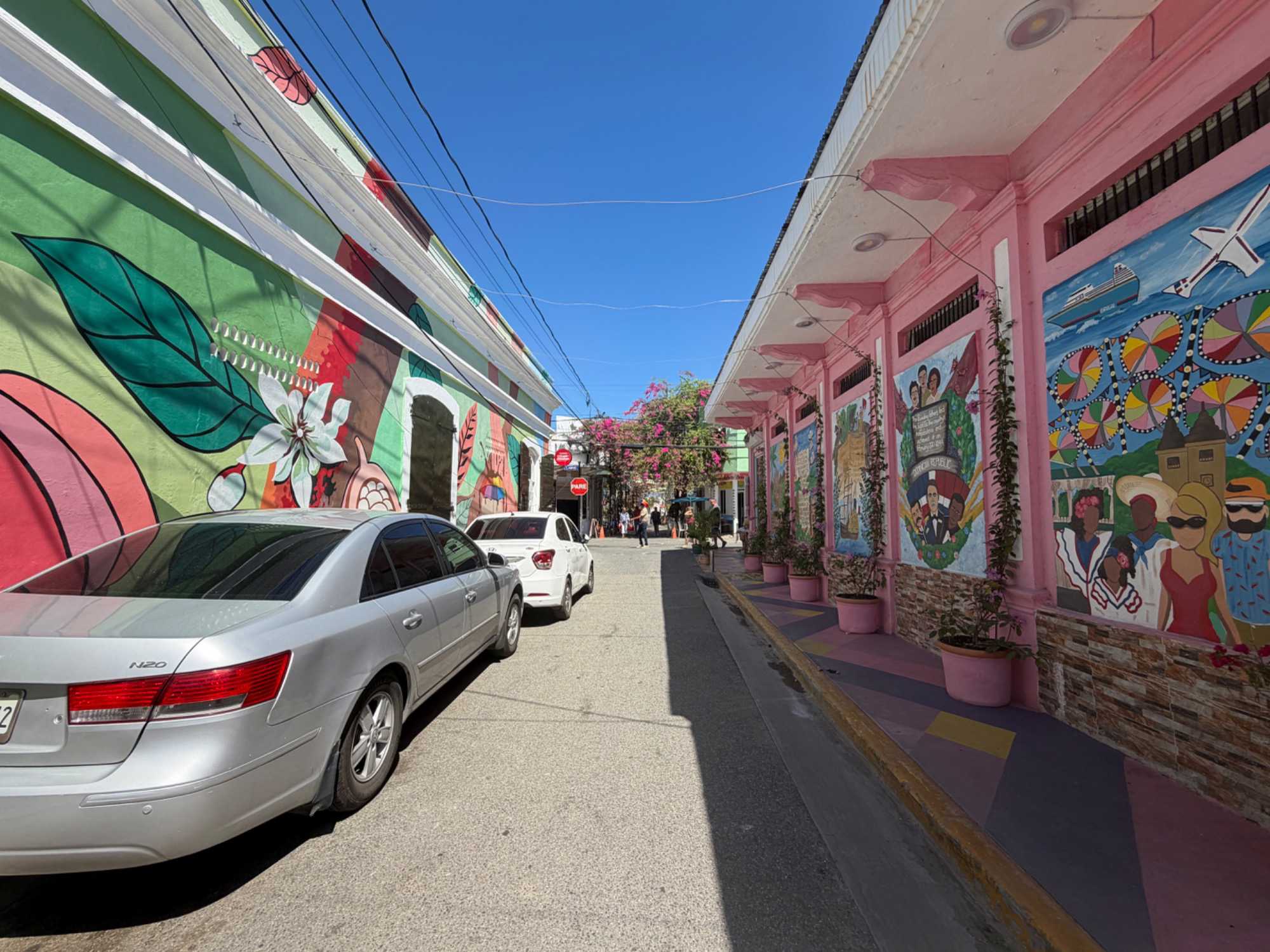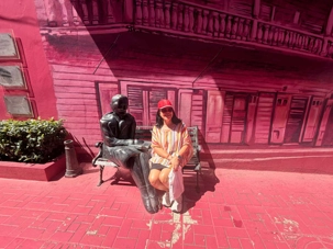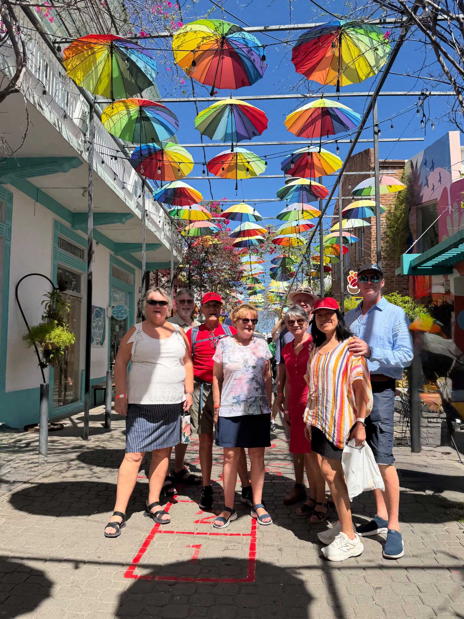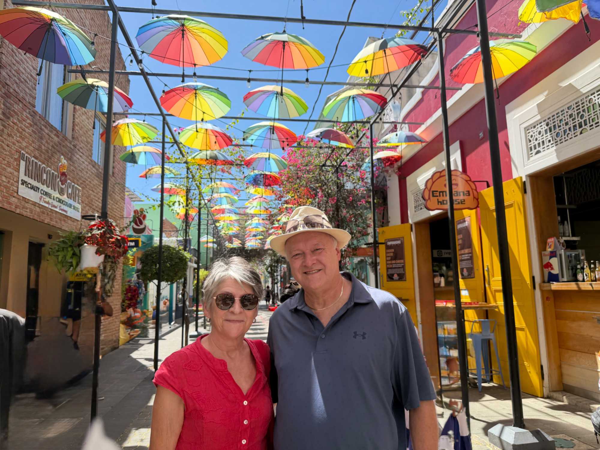 Nous avons poursuivi notre promenade dans la magnifique rue colorée du Paseo de Dona Blanca, pleine de vie et de joie, puis dans la célèbre Umbrella Stress Puerto Plata, décorée de centaines de parapluies suspendus au-dessus de nos têtes, créant une ambiance féerique. Juste après, nous avons parcouru la rue rose, aménagée en l’honneur de la lutte contre le cancer du sein, un moment touchant et symbolique pour tous.
