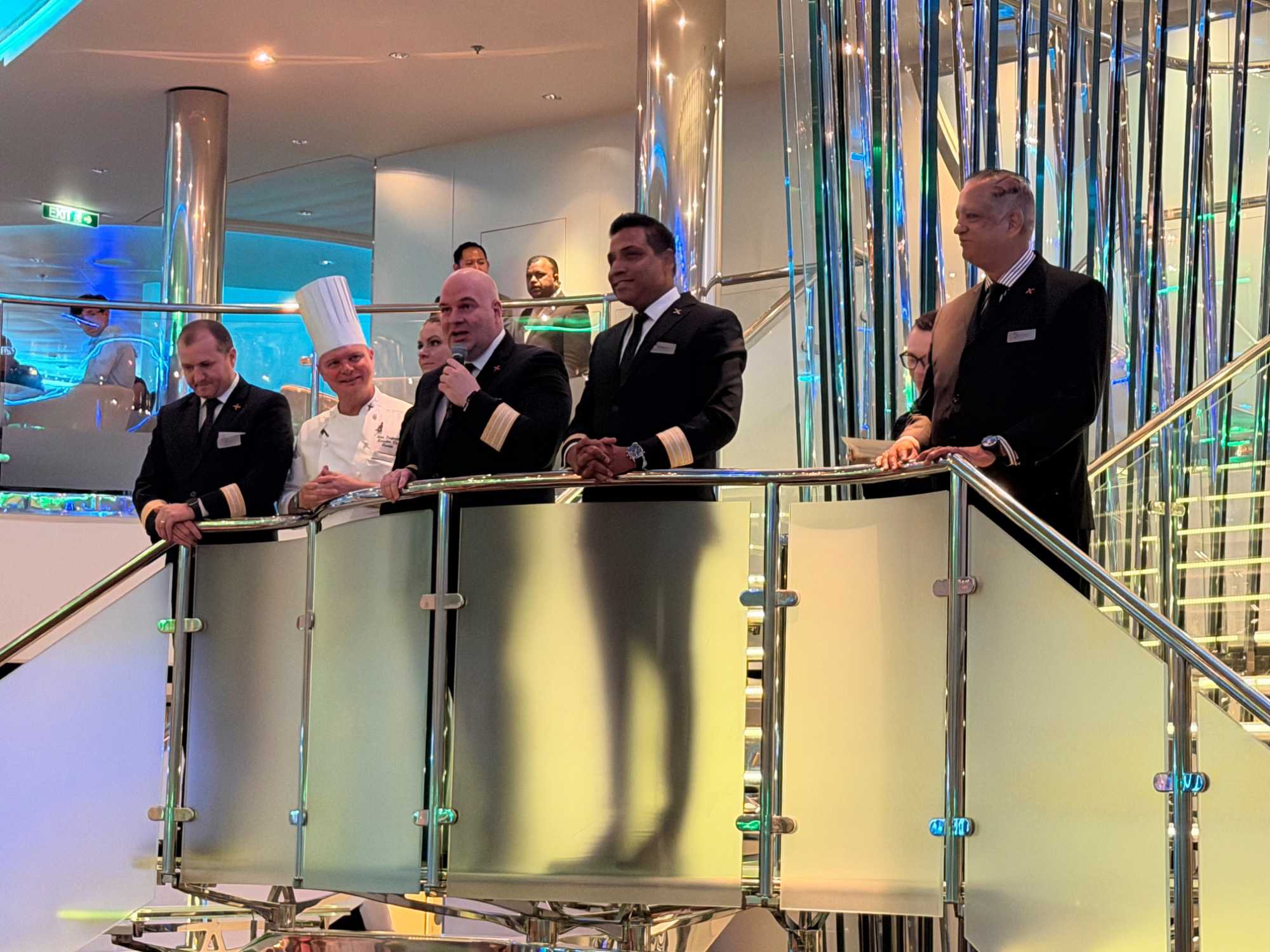 À la fin du repas, nous avons eu la chance de voir tous les membres de l’équipage du navire se présenter avec le sourire et une énergie contagieuse — un moment rempli d’émotion et de joie. 🤩