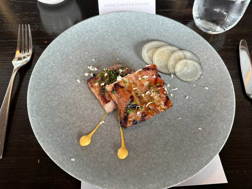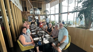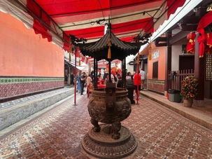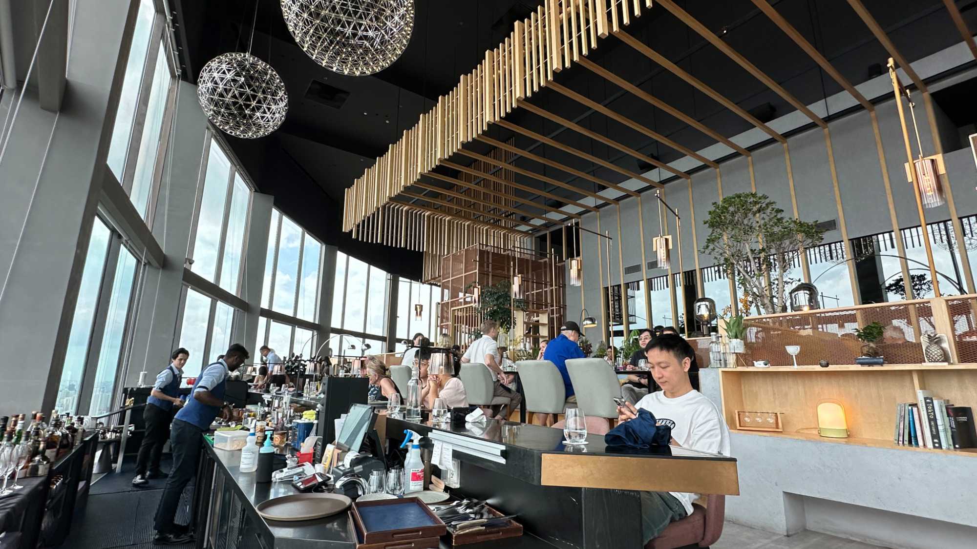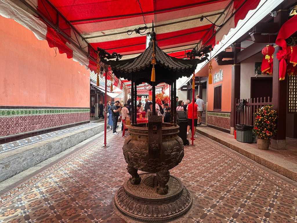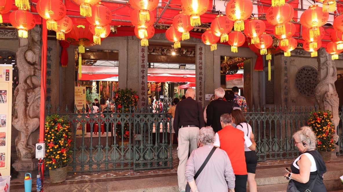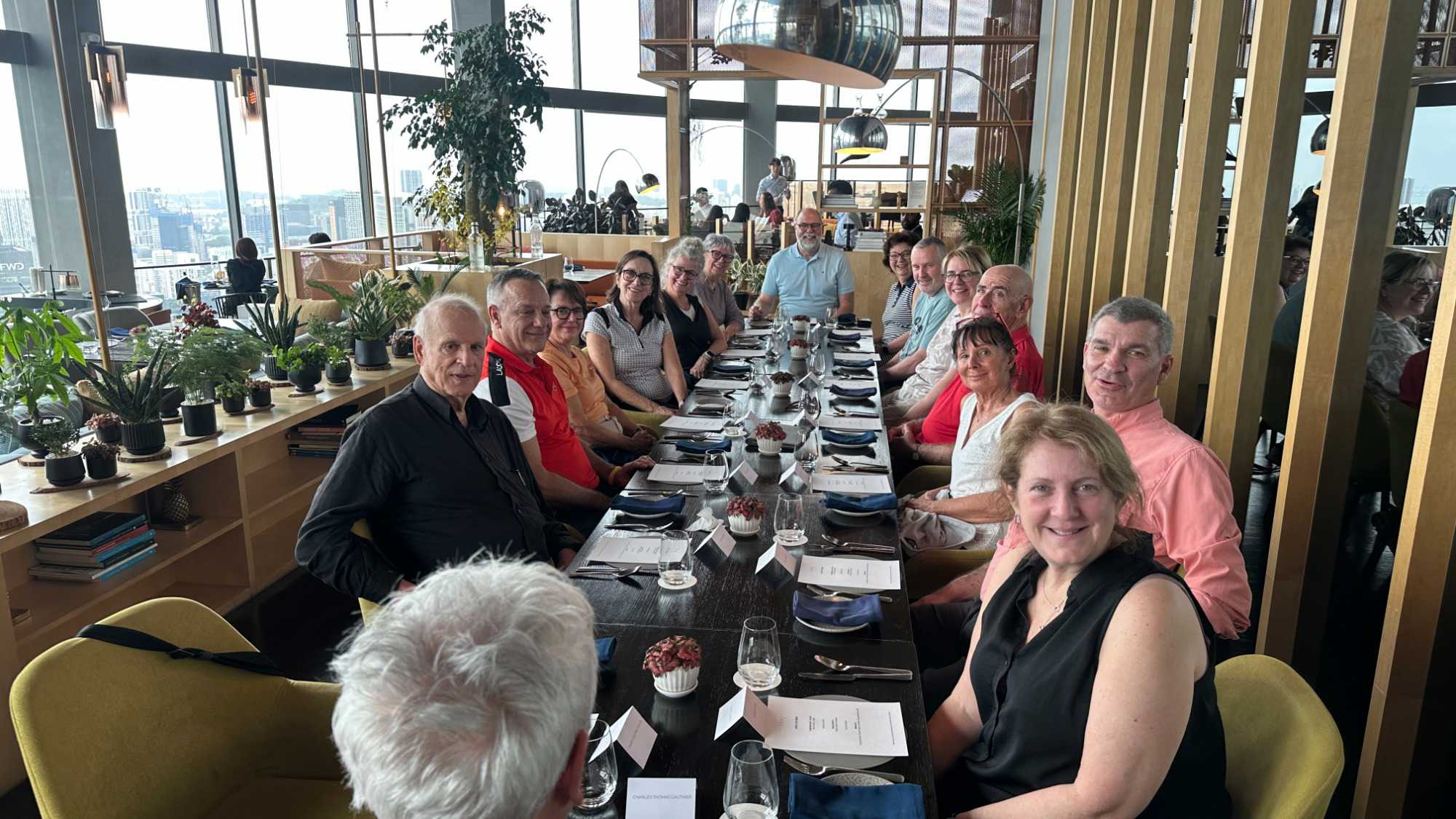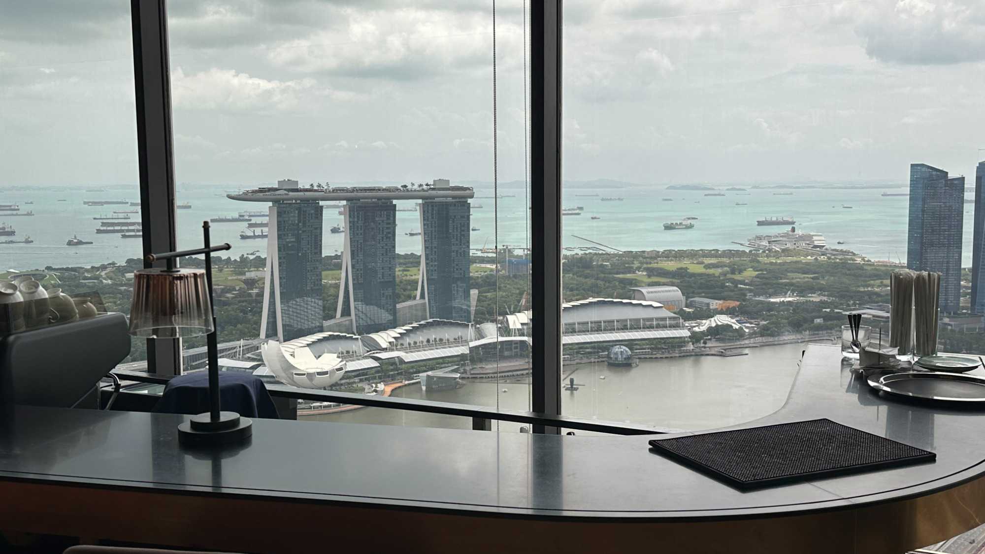 Avant de casser la croûte, il nous restait d’autres incontournables à voir. D’abord, l’élégante avenue Orchard, que Cindy compare aux “champs Élysées” de Singapour, idéale pour le menu magasinage chez Louis Vuitton, Ferragamo, Cartier, Dior, Bugatti, Ferrari, Bentley, Burberry, etc. Vous voyez ce que je veux dire? Passons notre chemin pour des considérations plus sérieuses et spirituelles; le temple Thian Hock Keng, le plus ancien et important de Singapour, classé lui aussi, monument du patrimoine mondial de l’UNESCO en 1973. Il est littéralement “le Palais du Bonheur Céleste” étant voué principalement à la déesse de la mer ou du voyage. Dans le culte de Mazu, les premiers immigrants chinois à Singapour offraient de l’encens à la déesse pour la remercier d’avoir traversé la mer en toute sécurité. Encore aujourd’hui, on y vient perpétuer cette offrande. On peut même y faire d’une pierre plusieurs coups puisqu’on peut implorer le dieu de la Miséricorde, de la médecine, de la ville, de la santé et enfin Confucius. Nous voilà donc prêts pour un bon dîner. Bon dîner vous dîtes? Nos invités ont eu l’honneur d’un restaurant étoilé Michelin, le SKAI. Déjà que de manger dans un restaurant étoilé n’est pas si mal, on en rajoute encore: il est situé au 70e étage du Swissotel The Stamford. La vue de la baie de la Marina, littéralement à nos pieds, en laisse plus d’un bouche bée. Eric et moi avions bien hâte de dévoiler cette surprise habilement cachée dans ce beau programme du Grand Tour d’Asie. Voyez par vous-même les clichés pris sur place. Et que dire du menu… On s’est régalés ! Ce n’était pas l’envie qui manquait de partager ce détail au groupe, mais nous avons résisté malgré la “subtile” insistance de Gaétan!! Ah oui, en passant, un des taquins, c’est lui. Saurez-vous trouver l’autre? Ou plutôt les deux autres car il s’en est ajouté un au lot !!