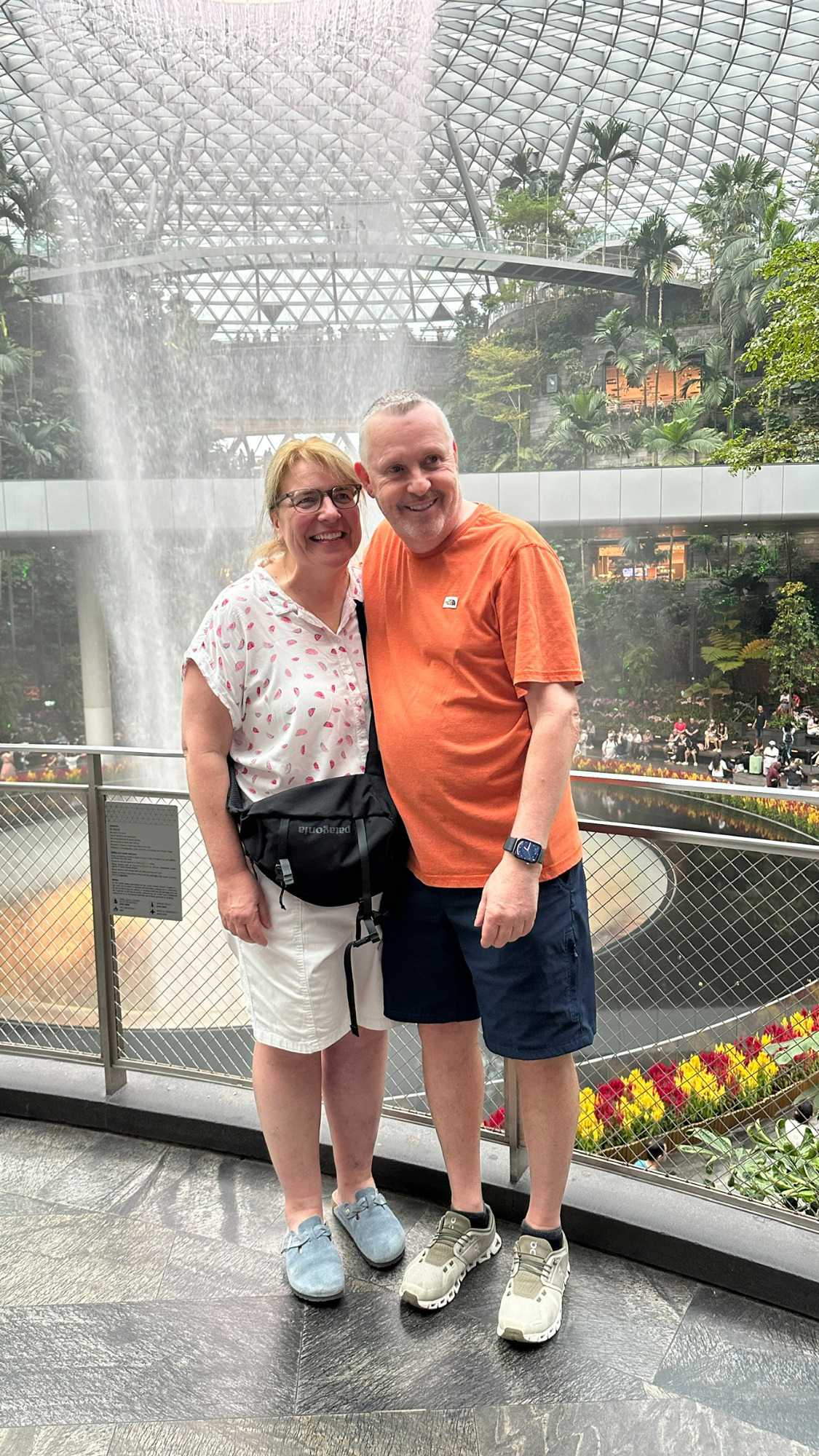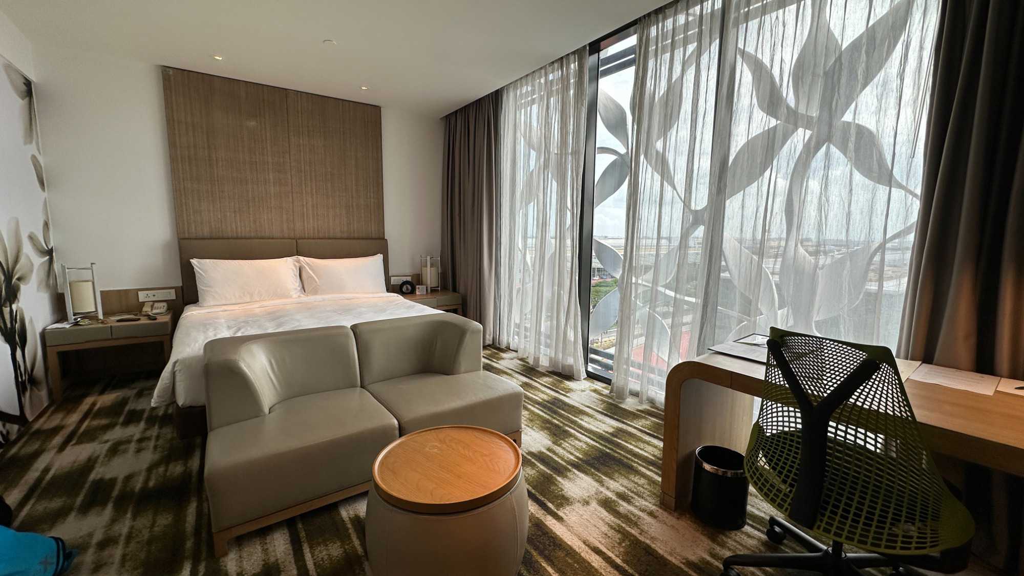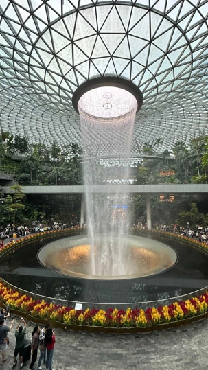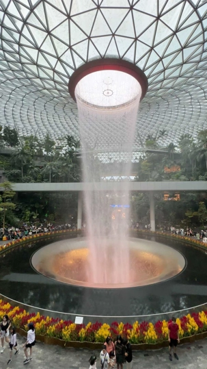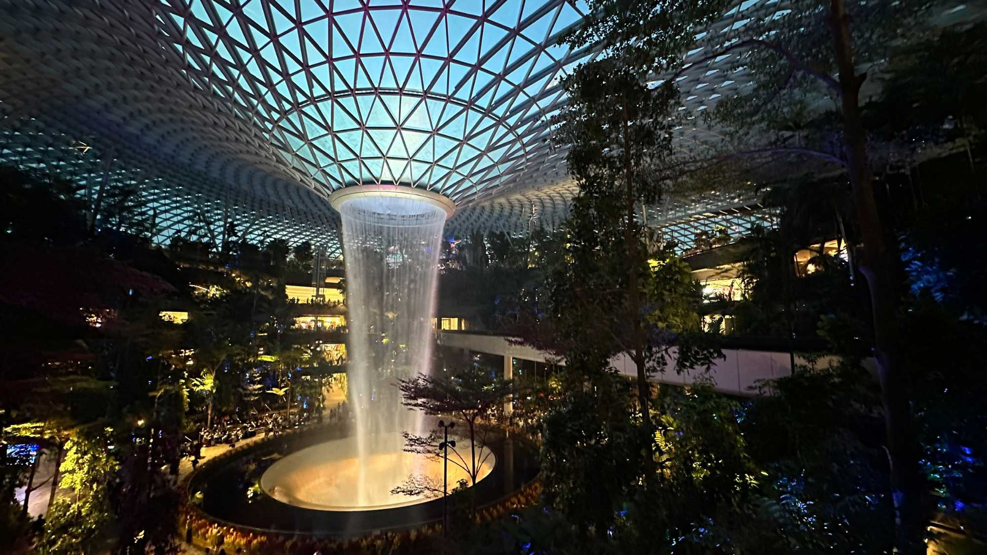 Quand un hôtel est désigné meilleur hôtel d’aéroport au monde par le Skytrax World Airport Awards, on sait que nous y passerons du bon temps. Sa piscine parsemée d’îlots de palmiers nous a fait le plus grand bien. On oublie la proximité des allers et venues des avions tellement l’insonorisation des chambres est bonne. L’hôtel est à distance de marche des terminaux d’où nous décollerons demain et nous avons, en plus, l’immense plaisir de visiter le troisième joyaux de Singapour; j’ai nommé le Jewel.