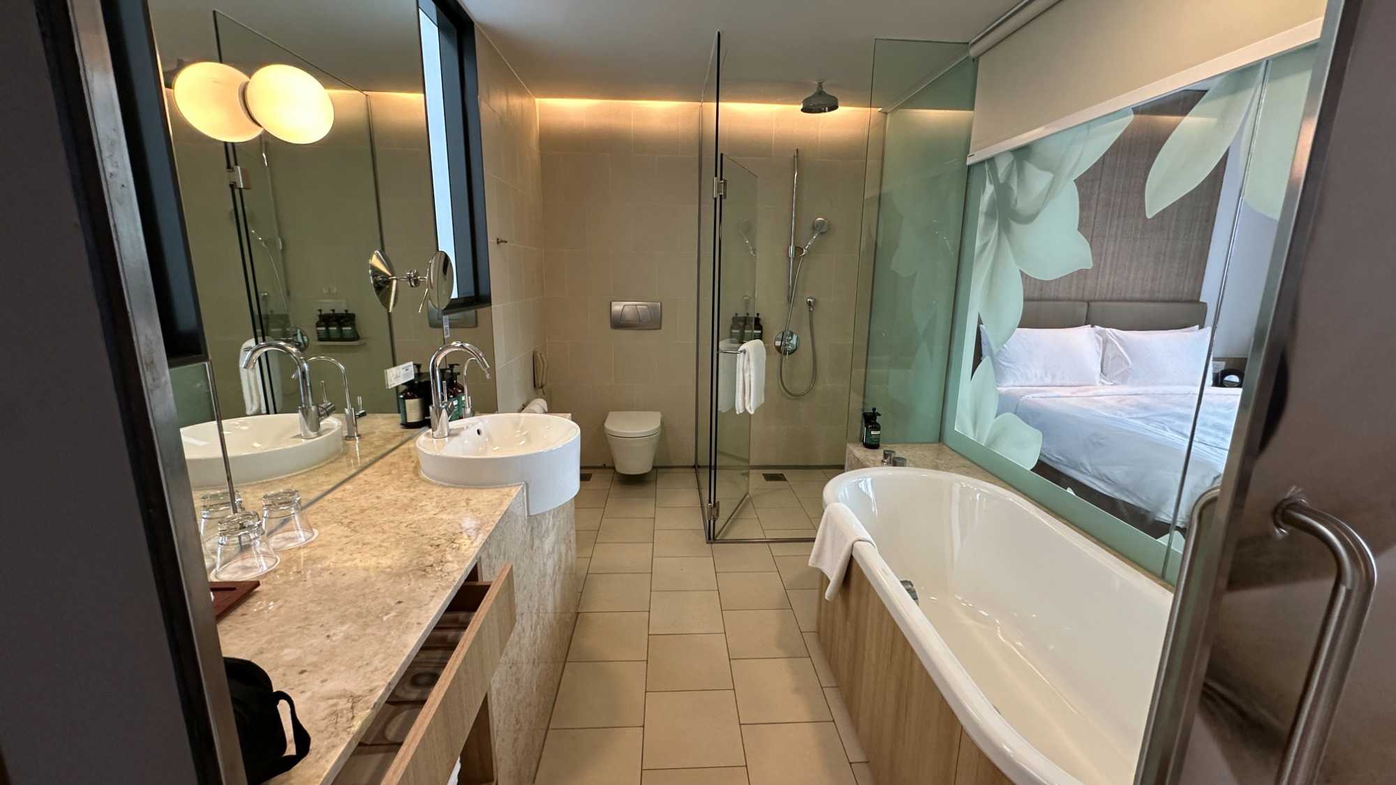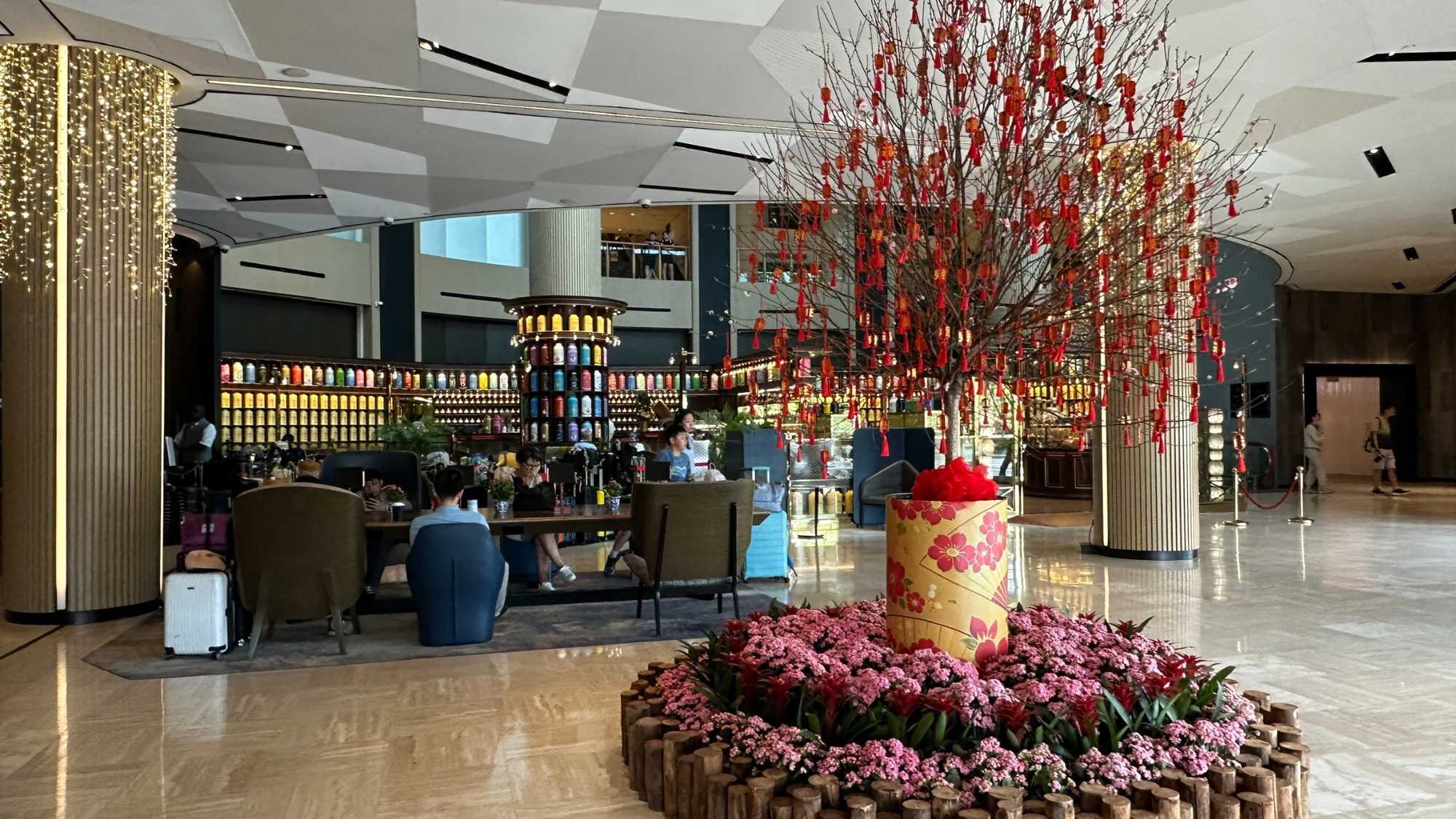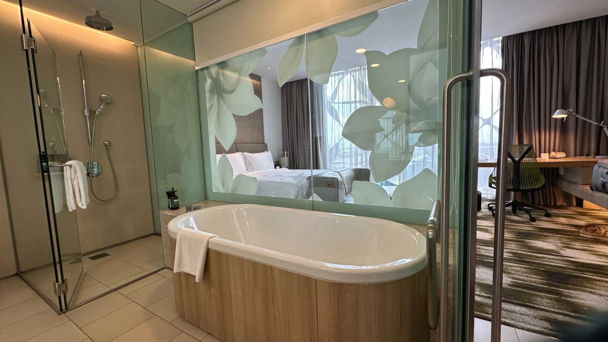 Quand un hôtel est désigné meilleur hôtel d’aéroport au monde par le Skytrax World Airport Awards, on sait que nous y passerons du bon temps. Sa piscine parsemée d’îlots de palmiers nous a fait le plus grand bien. On oublie la proximité des allers et venues des avions tellement l’insonorisation des chambres est bonne. L’hôtel est à distance de marche des terminaux d’où nous décollerons demain et nous avons, en plus, l’immense plaisir de visiter le troisième joyaux de Singapour; j’ai nommé le Jewel.