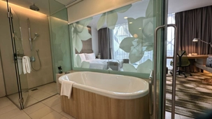 Le décalage horaire et le manque de sommeil nous rattrape, nos paupières se font lourdes ou est-ce la chaleur qui nous donne l’irrésistible envie de profiter de la piscine, de se retrouver dans nos valises ou dans un bon lit? Toujours est-il que Cindy et notre chauffeur nous font la grâce de nous emmener subito presto à l’hôtel Crown Plaza Chandi, un 5* situé à l’aéroport.