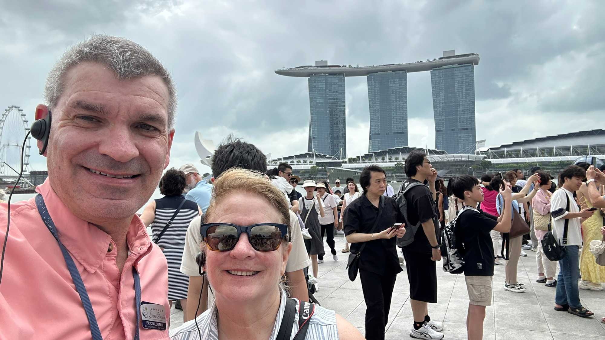 Cindy, notre guide, nous accueille avec son humour et son professionnalisme. On sent tout de suite sa grande expérience à transmettre sa passion de la ville qui l’a vue grandir, à qui lui fait le plaisir de lui rendre visite. Nos premières impressions de Singapour sont truffées de mots-clés: propreté, calme, richesse, luxe, conduite à gauche, végétation luxuriante, bosquets de bougainvilliers, tours d’habitation très hautes, architecture moderne et originale, surveillance omniprésente, sentiment de sécurité, coût de vie très élevé.