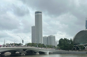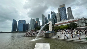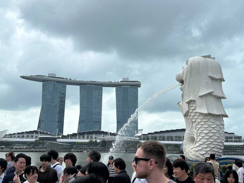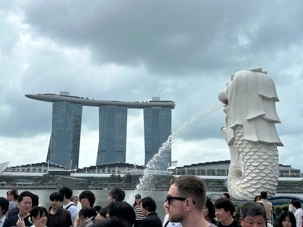 Après cet oasis de verdure, direction centre-ville au cœur de l’action et droit au but: le Merlion, fontaine mi-lion, mi-poisson, symbole par excellence de Singapour, la vue sur le Marina Bay Sands Hôtel en passant, bien entendu, sur le fameux pont du circuit de Formule un de Singapour. Ce sont à eux seuls des lieux phares de Singapour. Nous ne sommes pas les seuls à vouloir profiter du décor dont on ne se lasse pas en voyant tout ce monde agglutiné autour.