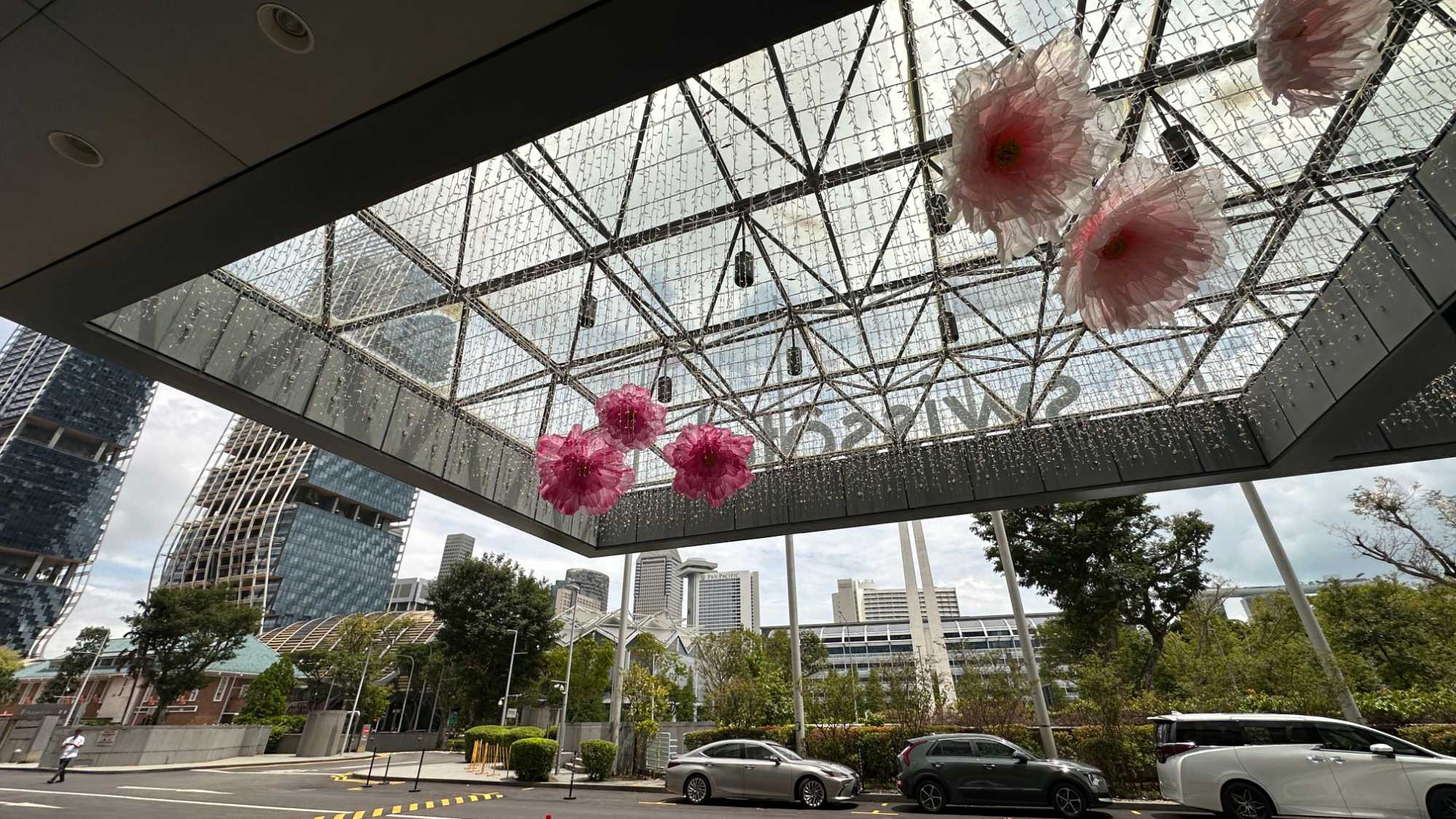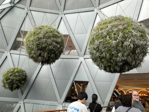 En effet, Eric et moi avions donné rendez-vous à celles et ceux qui souhaitaient le découvrir. Une marche d’une dizaine de minutes vers ce dôme étrange qu’est le “Jowel”. Wow, vous avez sûrement vu “dans les internet” cette immense fontaine de 40 m de haut dont l’eau tombe du toit de verre en formant un cylindre pour finir par s’engouffrer dans un trou béant qui semble sans fin. Entourée de 10 étages de végétation luxuriante telle une forêt amazonienne, c’est un havre de paix, mais aussi une mecque de la consommation. Les 10 étages d’anneaux concentriques entourant cette fontaine sont constitués de restaurants, de magasins, d’entreprises de divertissement pour jeunes et moins jeunes. On veut définitivement y passer un bout de temps, ne serait-ce que pour s’imprégner de cette culture asiatique friande de gadgets dernier cri. Le magasin Crocs en est un qui nous a bien impressionné avec ses milliers de “pins” à ajouter sur des modèles plus fous les uns que les autres.