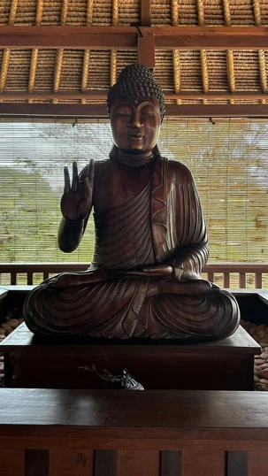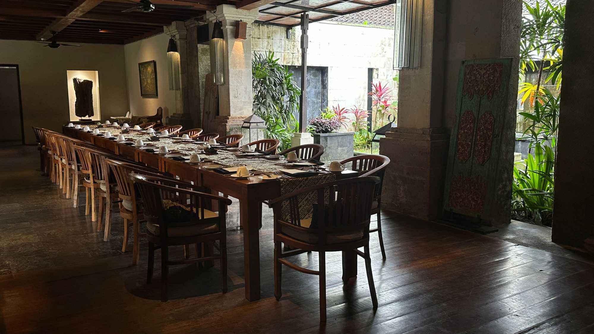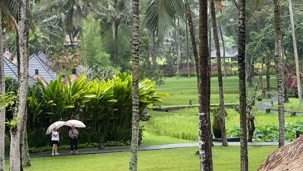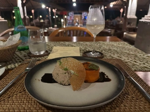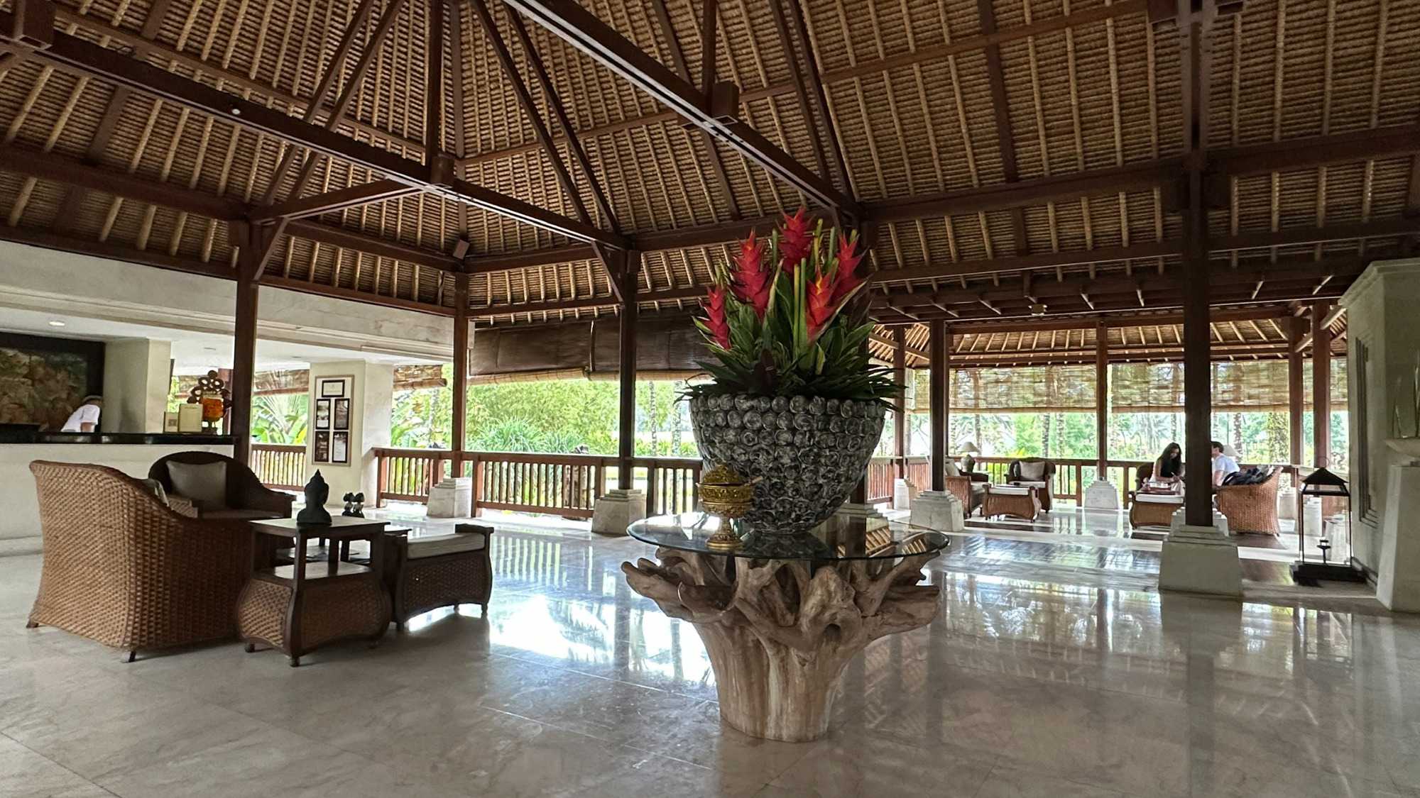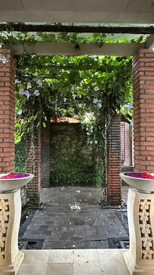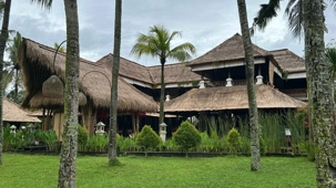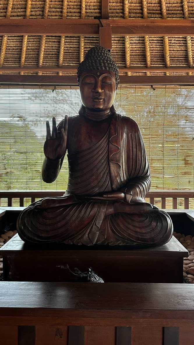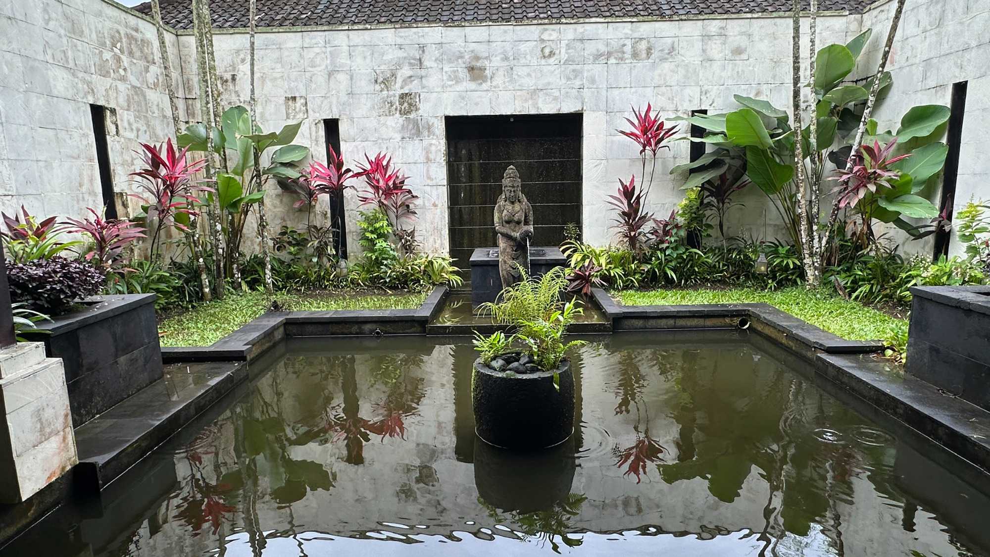 Le réveil se fait naturellement, bercé par les sons de la nature. Les oiseaux se chargent de remplacer toute alarme, Certains émergent tôt, attirés par la fraîcheur relative du matin, tandis que d’autres savourent le luxe de ne rien avoir à faire. De mon côté, j’ai même eu le privilège de pousser quelques longueurs de piscine tôt ce matin. Le petit-déjeuner est un moment bien unique. Servi dans un décor idyllique, il invite à la gourmandise et à la contemplation : fruits tropicaux, jus frais, spécialités locales et café balinais. Les conversations sont tranquilles, encore un peu endormies, mais déjà empreintes de cette sérénité que Bali semble distiller sans effort. On a même pu profiter d’un 10 minutes de soleil. Nous avons tout de même appris une leçon de base: Ne sortez jamais sans le parapluie que l’hôtel fournit gracieusement, heureusement!