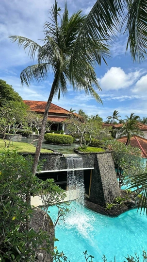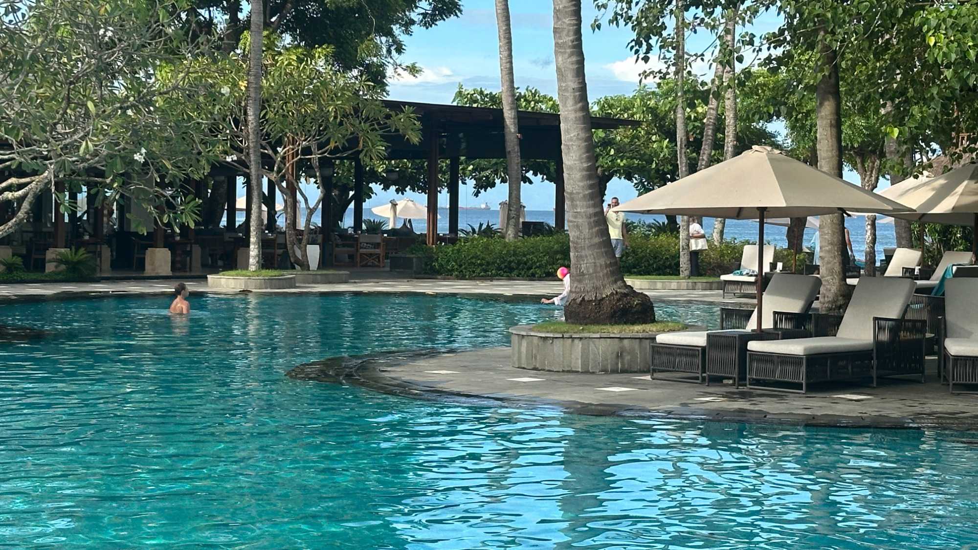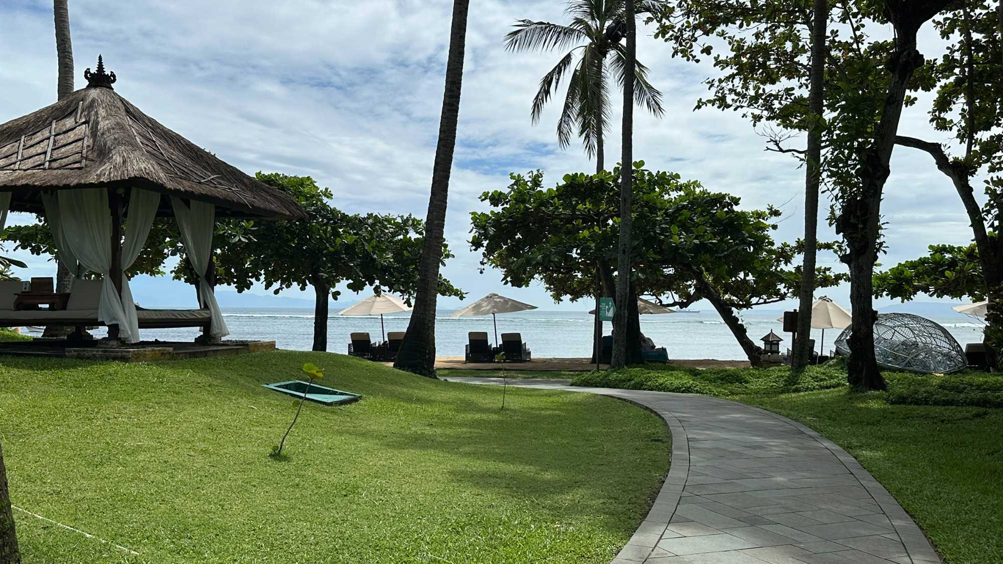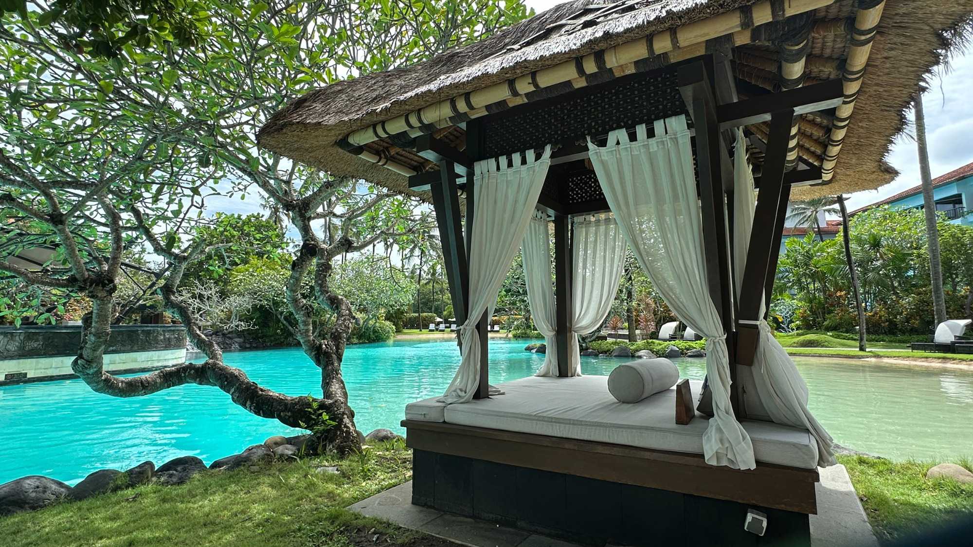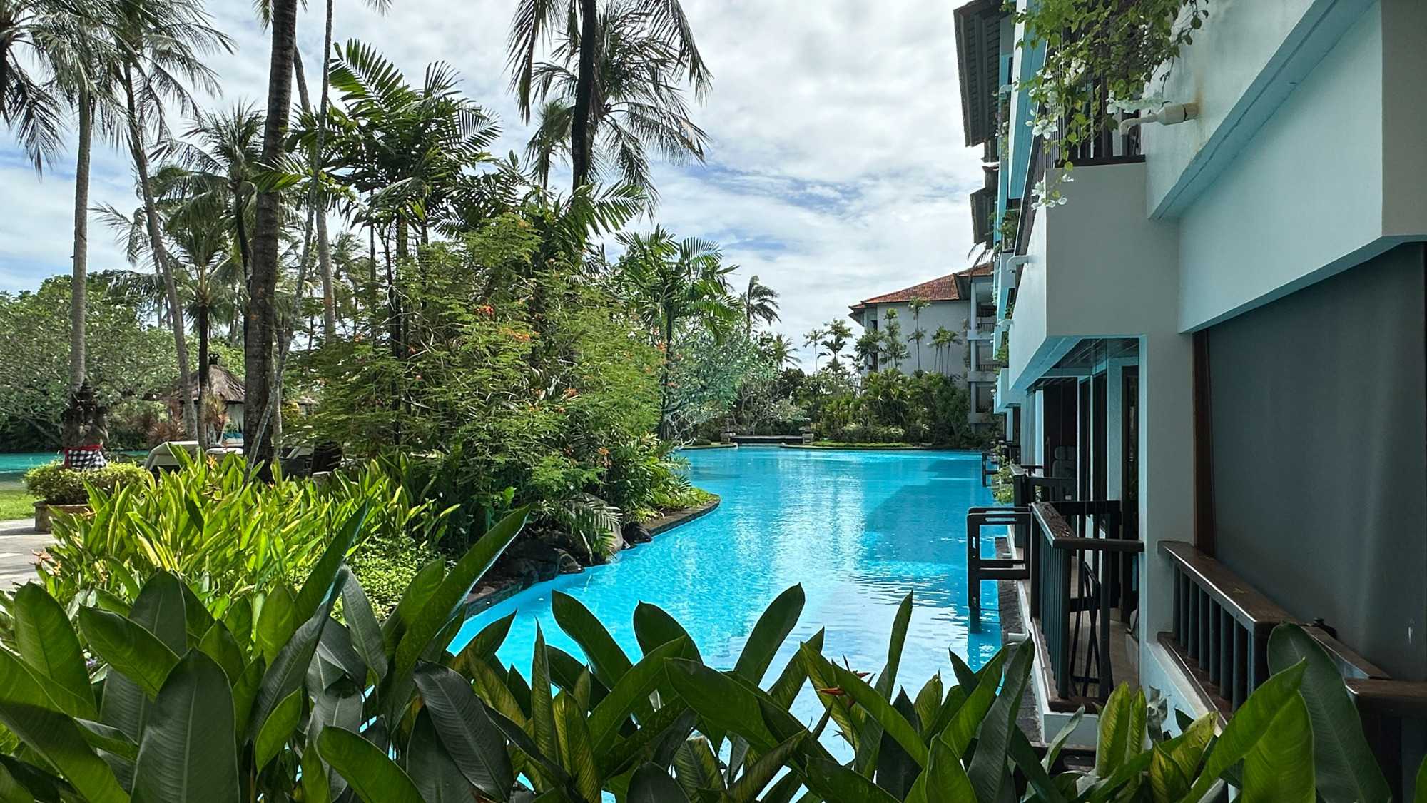 Installé dans la partie sud-ouest de Bali, plus précisément à Nusa Dua, notre hôtel 5* se niche au cœur d’un vaste domaine luxuriant. Il compte 287 chambres et suites. On y retrouve aussi des studios, des suites exécutives, des villas avec accès direct à la lagune. Le Lagoon Spa jouit d’une grande réputation. Tout le personnel est dédié au bien-être et à la satisfaction complète de chaque invité. Nous en sommes témoins depuis notre arrivée.