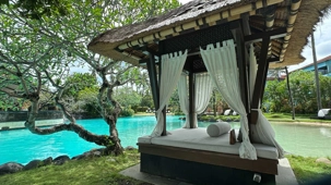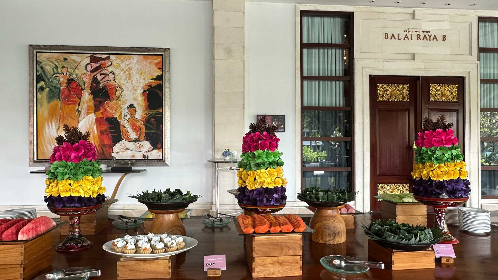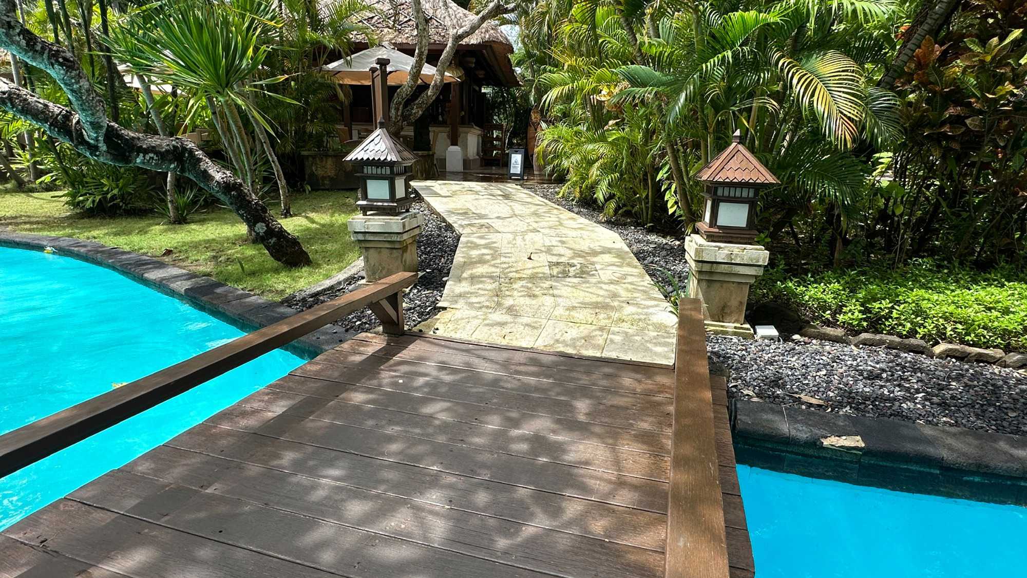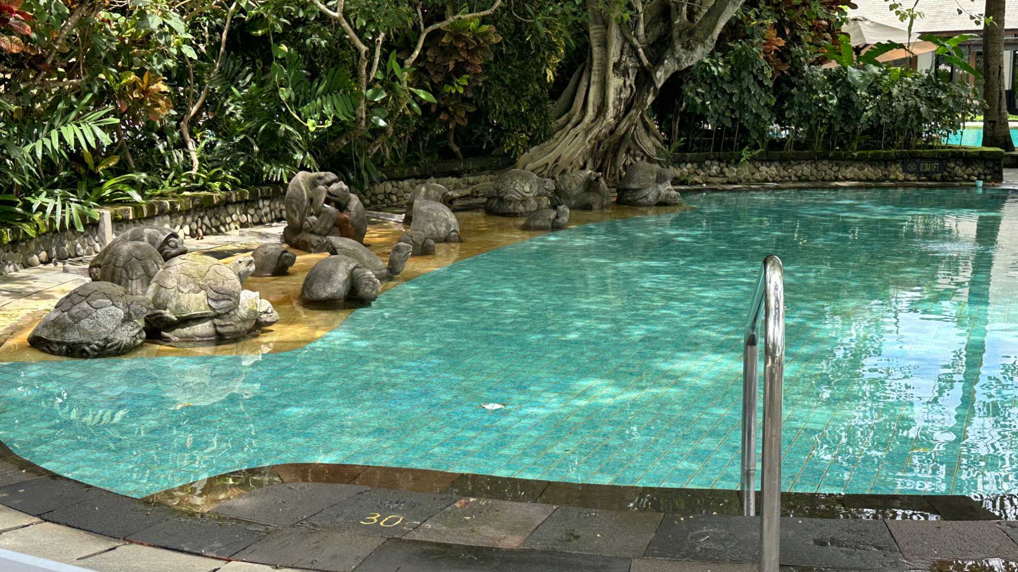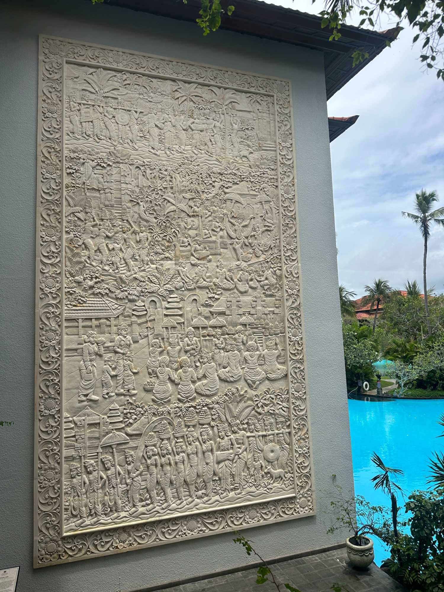Installé dans la partie sud-ouest de Bali, plus précisément à Nusa Dua, notre hôtel 5* se niche au cœur d’un vaste domaine luxuriant. Il compte 287 chambres et suites. On y retrouve aussi des studios, des suites exécutives, des villas avec accès direct à la lagune. Le Lagoon Spa jouit d’une grande réputation. Tout le personnel est dédié au bien-être et à la satisfaction complète de chaque invité. Nous en sommes témoins depuis notre arrivée.