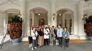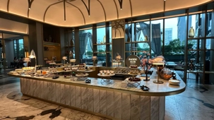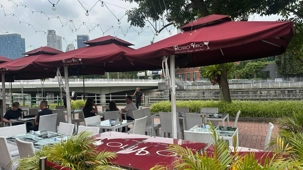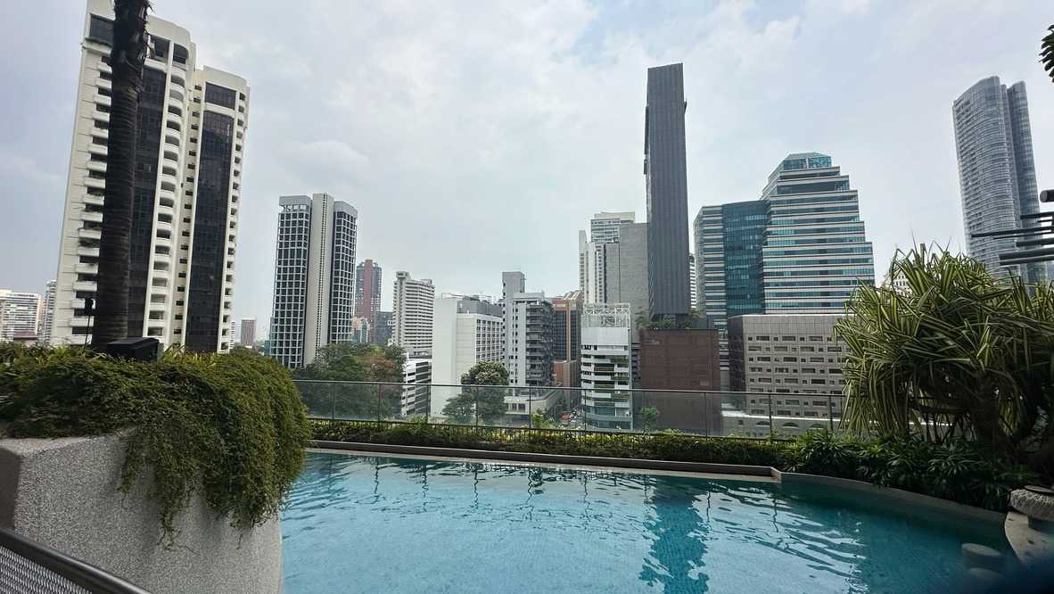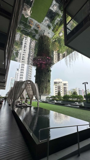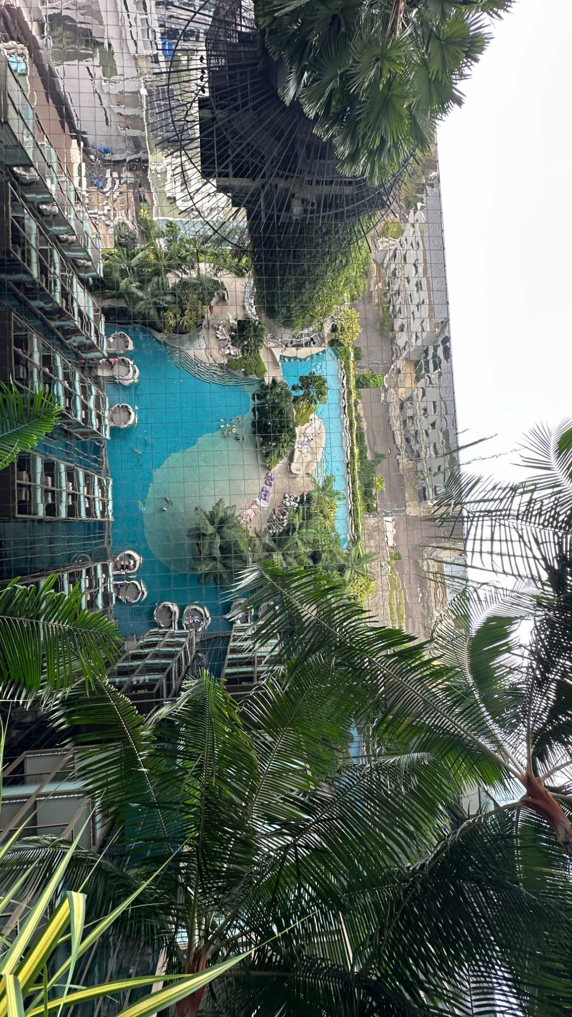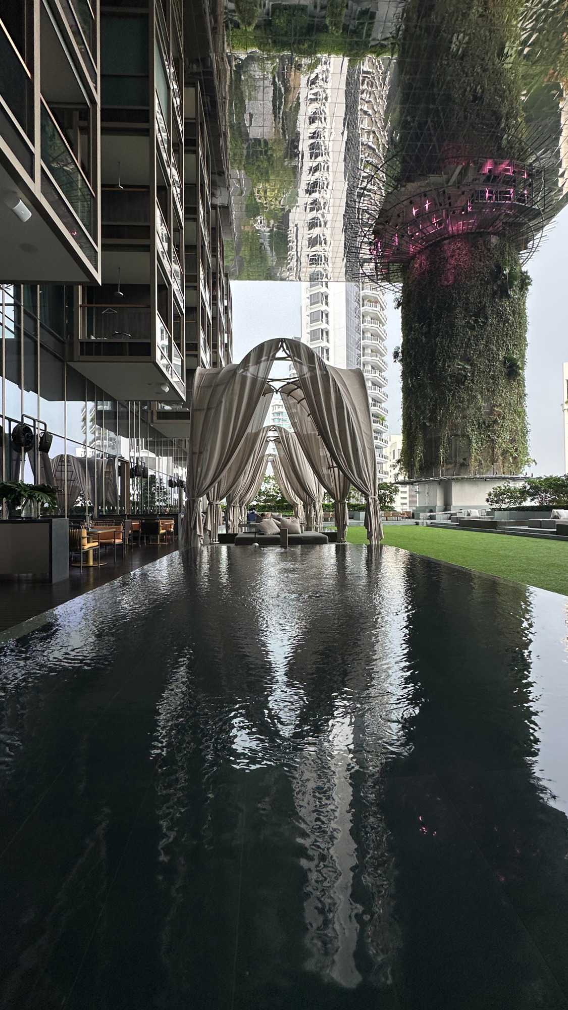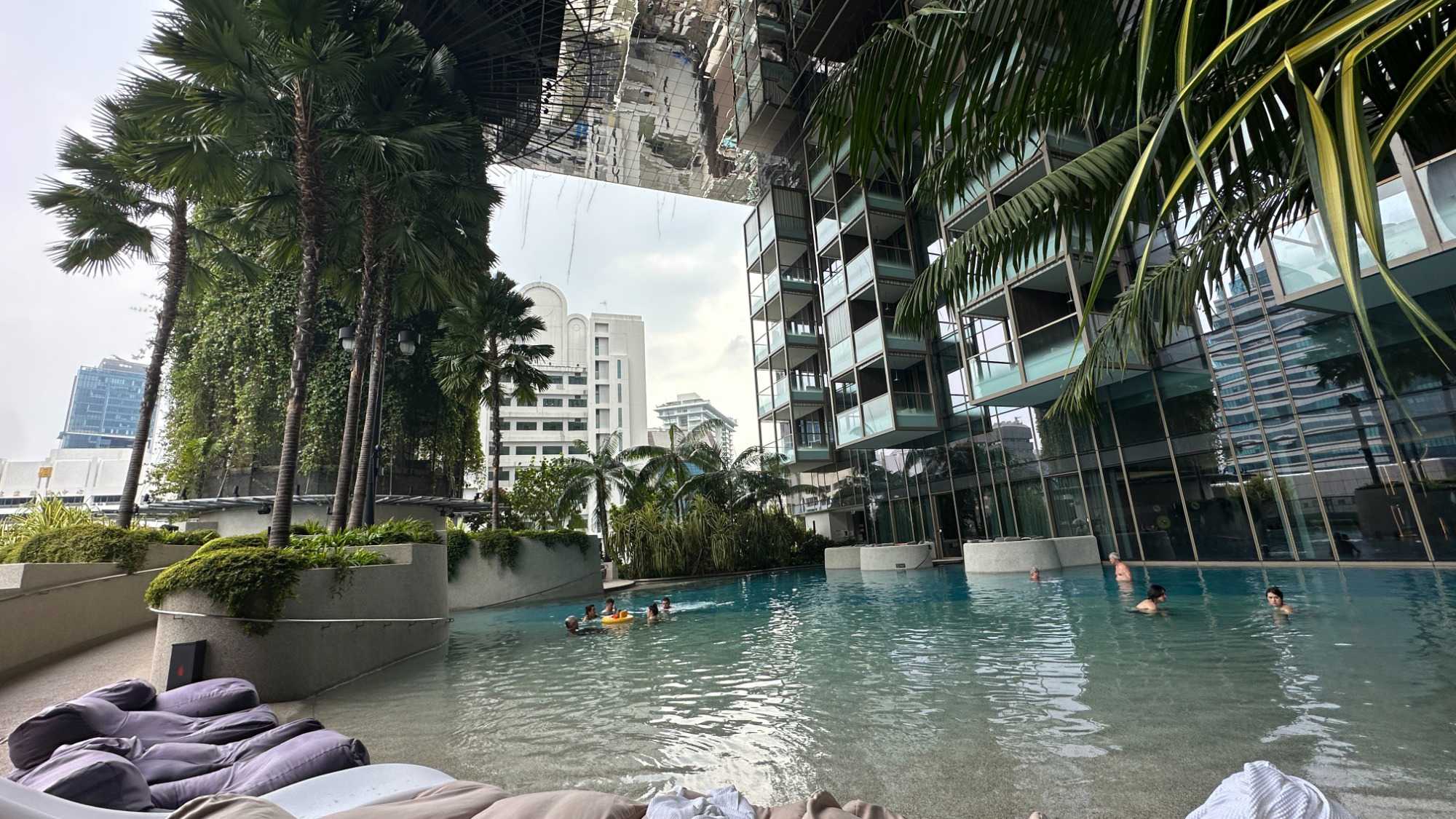 Transfert au centre-ville vers notre hôtel, le Pan Pacific. Même si nous avions peu de temps avant de ressortir pour la mini-croisière ce soir, nous nous sommes réunis à l’immense piscine du 5e étage de l’hôtel, suspendue telle une terrasse verdoyante. Cet hôtel a d’ailleurs gagné un prix pour avoir intégré autant de végétation. Nous ne manquons pas de visiter le 11e étage où l’on retrouve une magnifique terrasse.