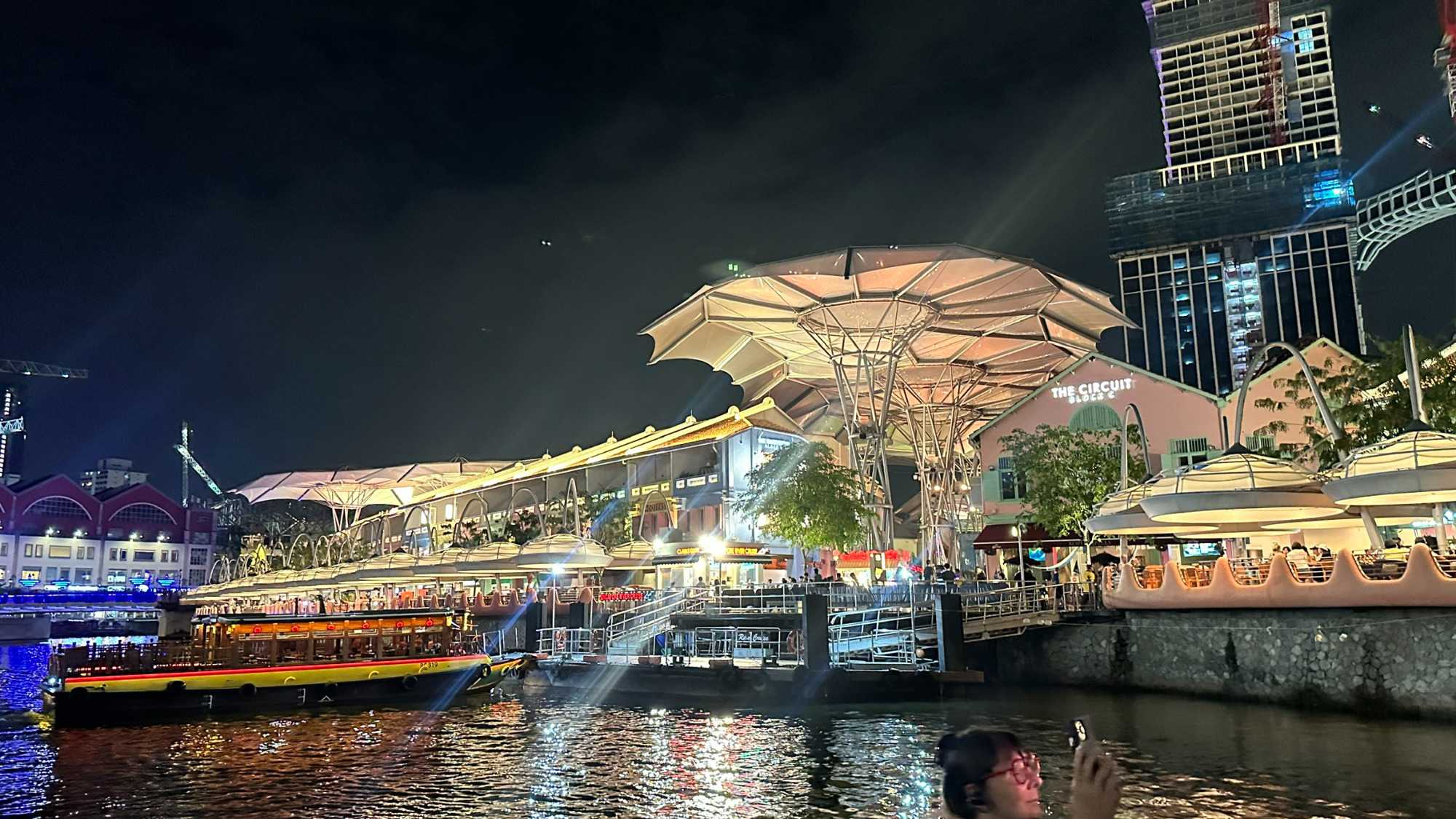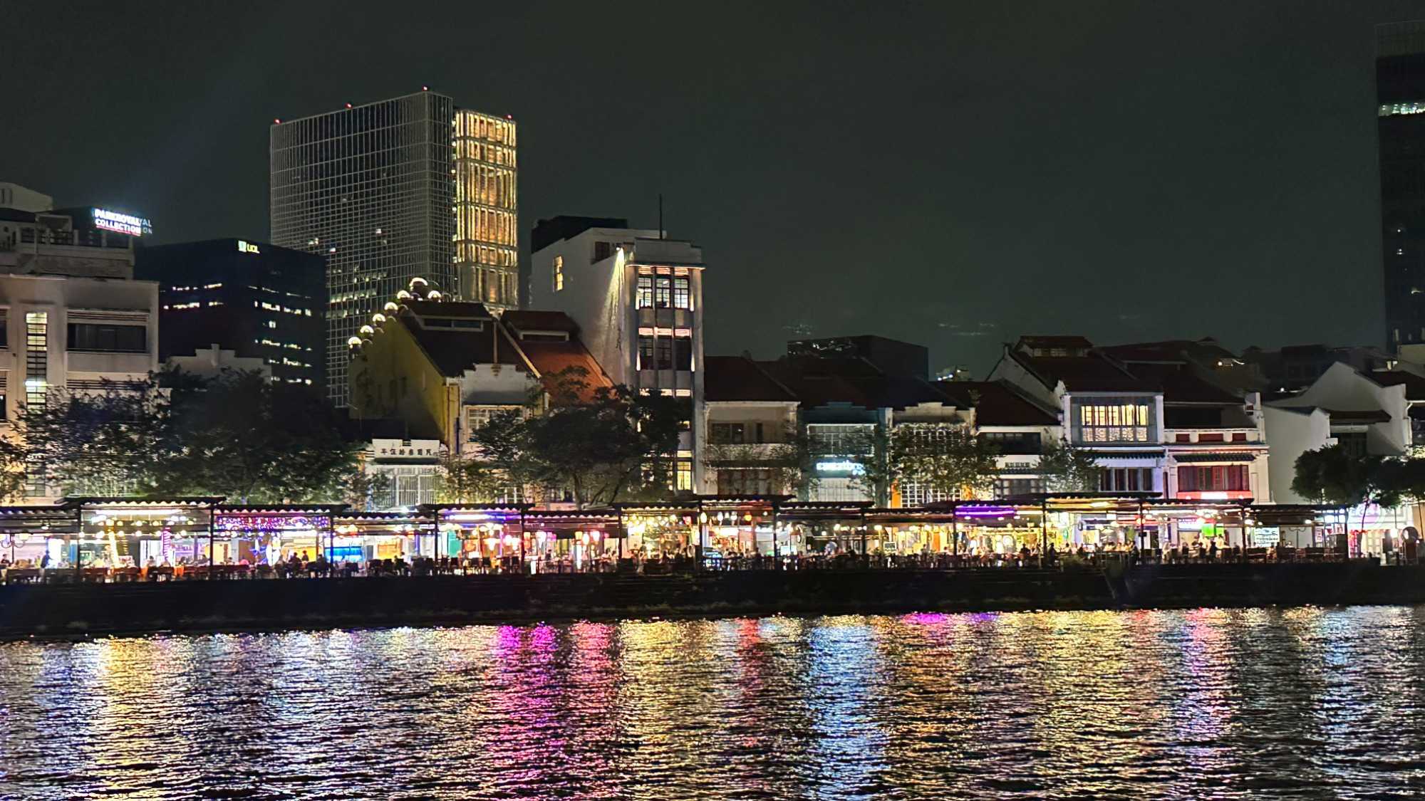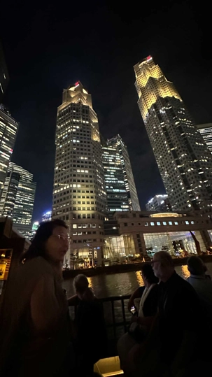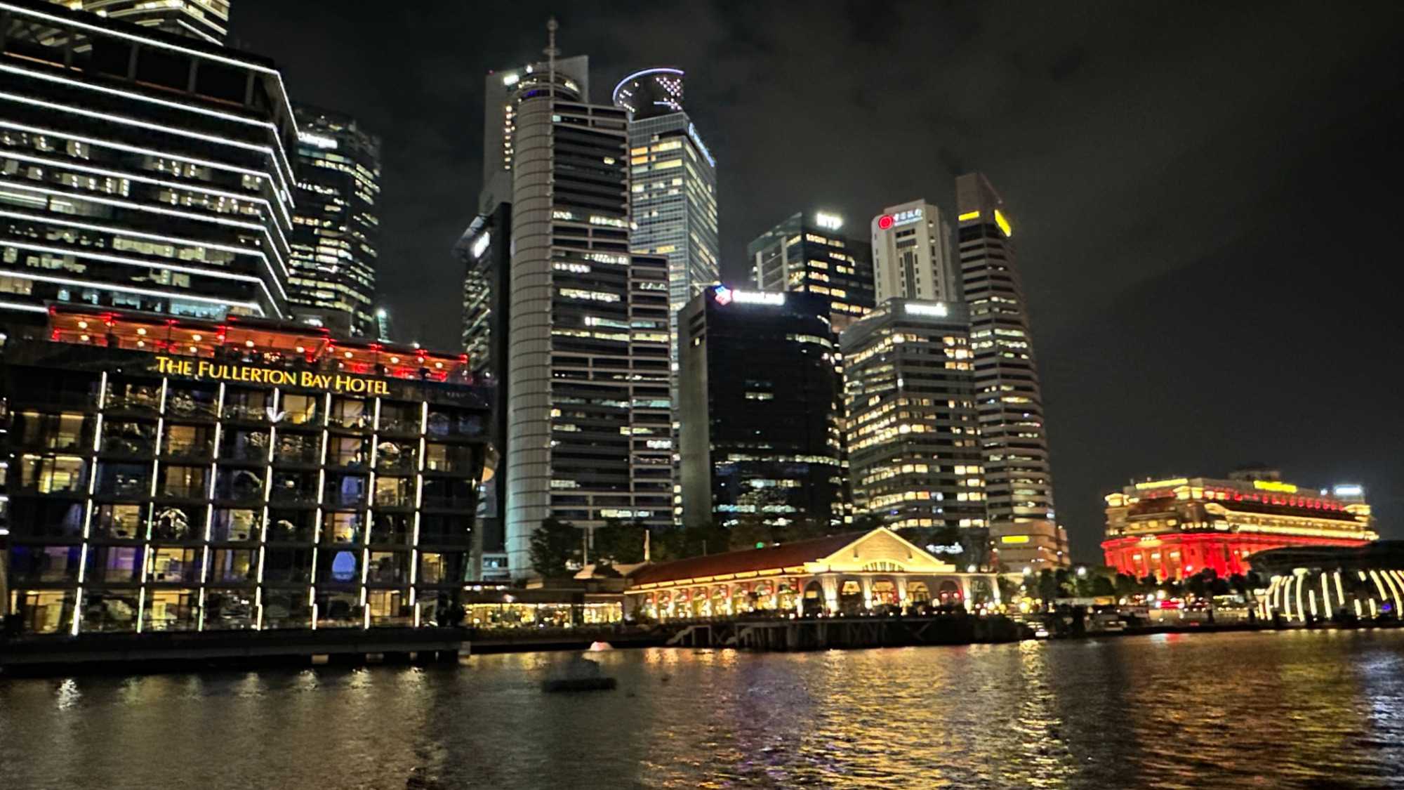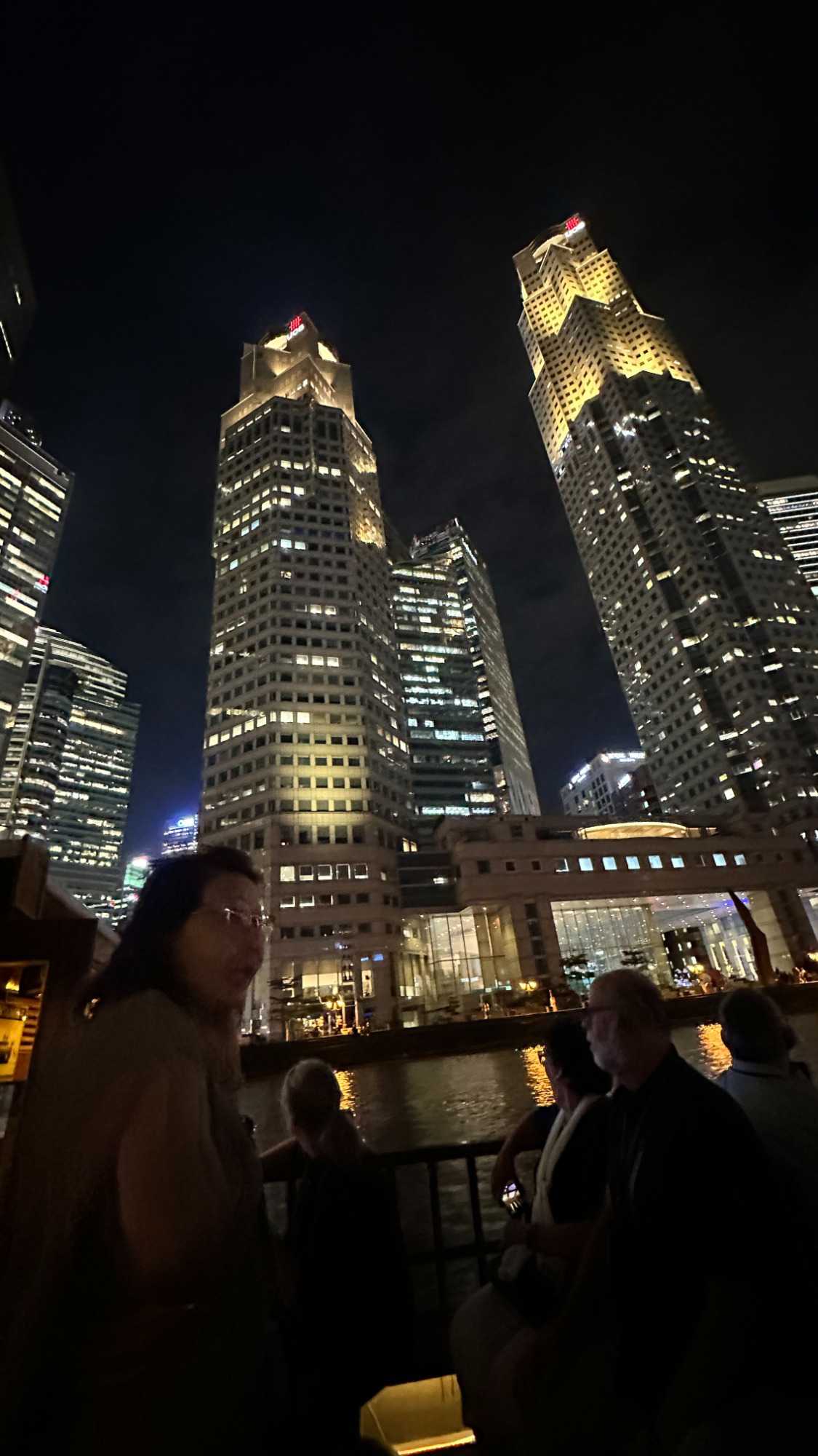 Après le souper fort animé, bien que fatigués du vol, nous avions très hâte de découvrir les lumières de la ville en voguant doucement à bord d’un bumboat traditionnel le long de la rivière Singapour. Dès que nous embarquons, la magie opère : la ville scintille tout autour de nous et la vue est à couper le souffle. La rivière, miroir noir et lisse, reflète les milliers de lumières des bâtiments qui se dressent majestueusement sur ses rives. Les grattes-ciels du quartier financier, l’opéra, les ponts illuminés, le chic Fullton hôtel, le Merlion et que dire du Marina Bay hôtel, bref, Singapour est sublimée.