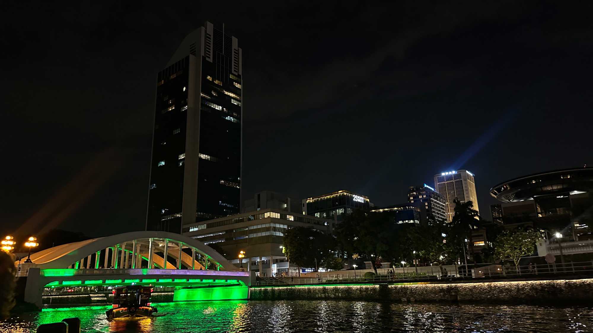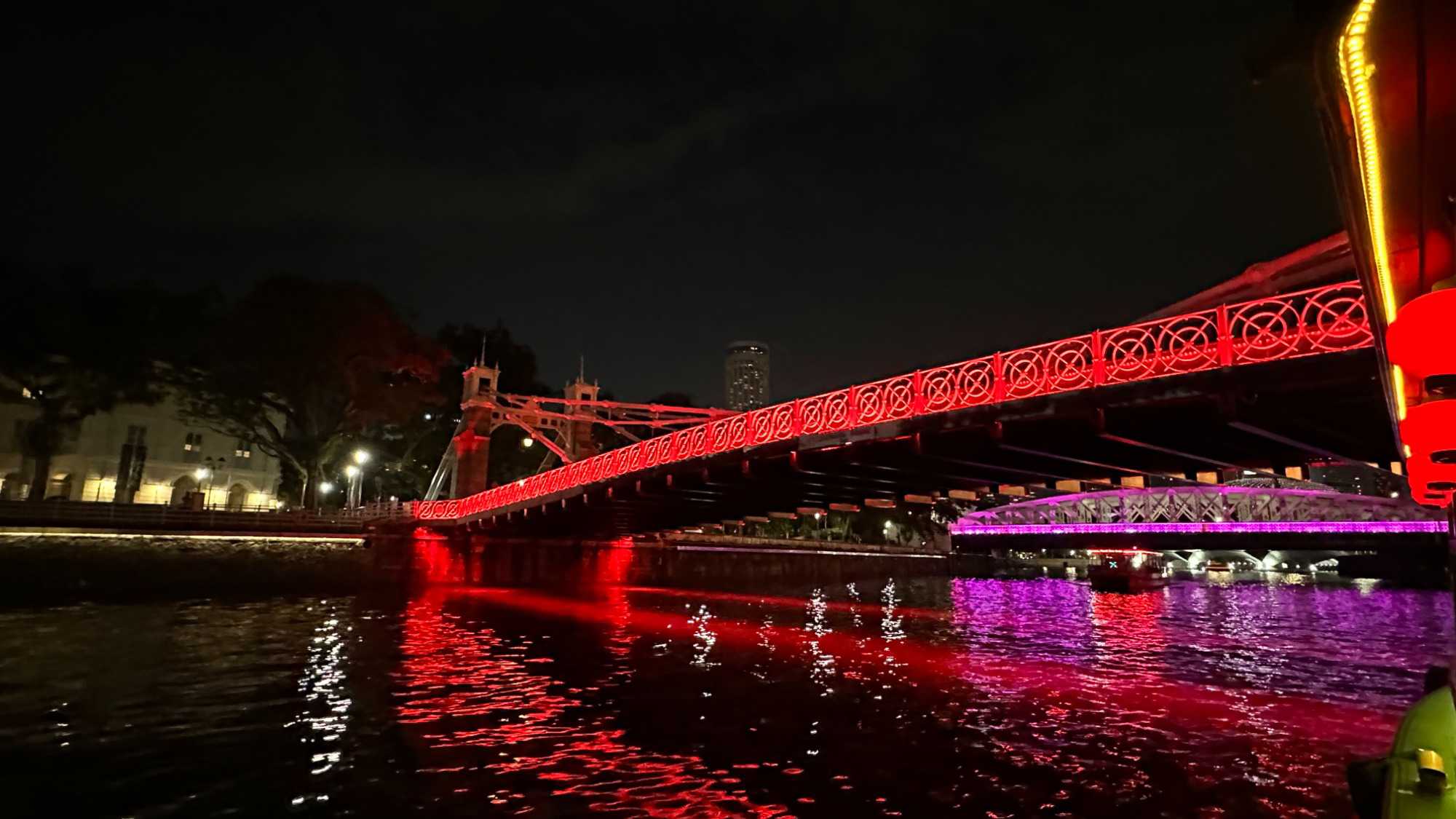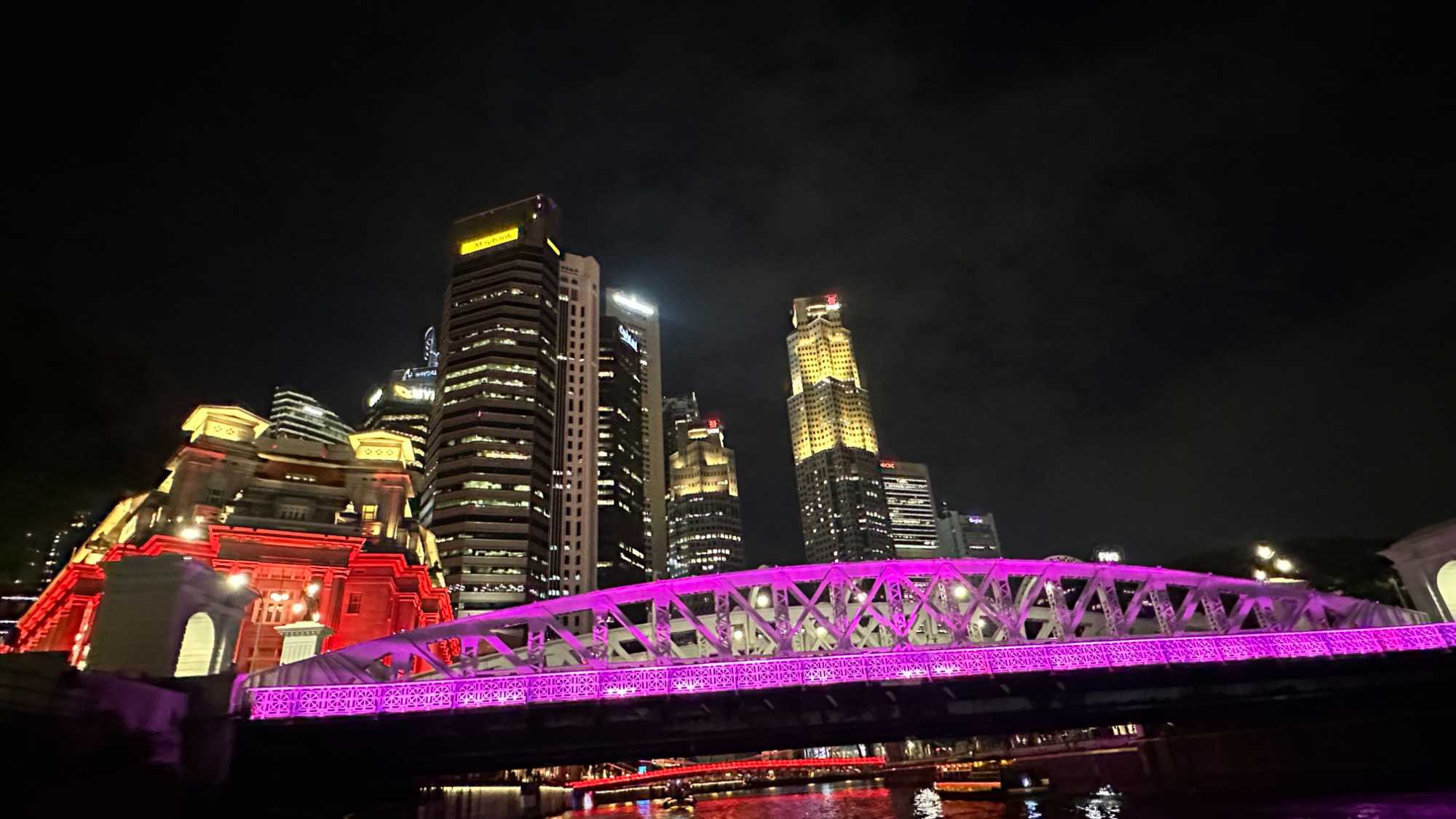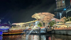Après le souper fort animé, bien que fatigués du vol, nous avions très hâte de découvrir les lumières de la ville en voguant doucement à bord d’un bumboat traditionnel le long de la rivière Singapour. Dès que nous embarquons, la magie opère : la ville scintille tout autour de nous et la vue est à couper le souffle. La rivière, miroir noir et lisse, reflète les milliers de lumières des bâtiments qui se dressent majestueusement sur ses rives. Les grattes-ciels du quartier financier, l’opéra, les ponts illuminés, le chic Fullton hôtel, le Merlion et que dire du Marina Bay hôtel, bref, Singapour est sublimée.