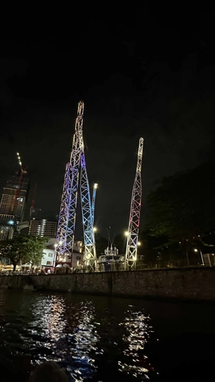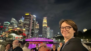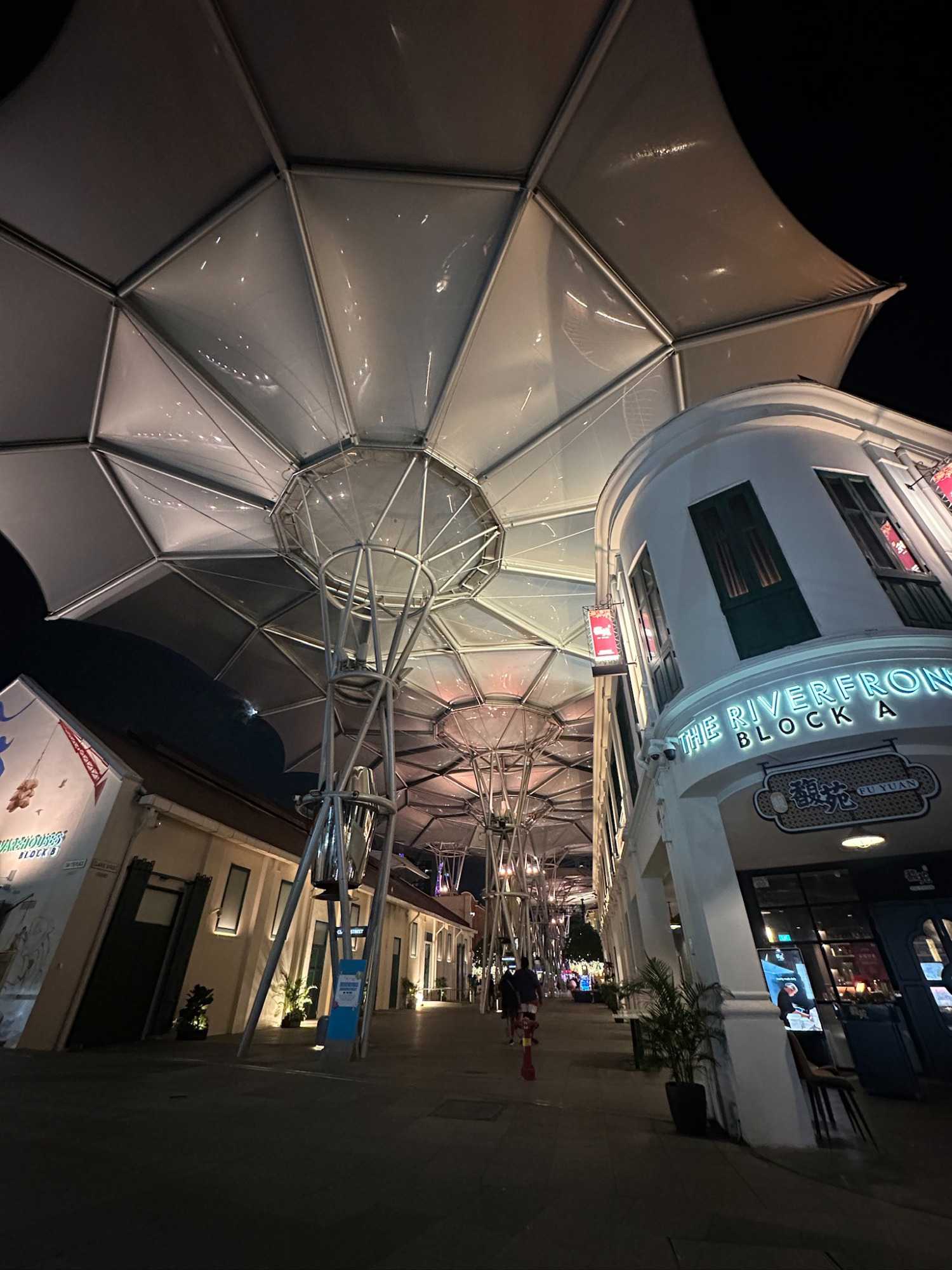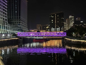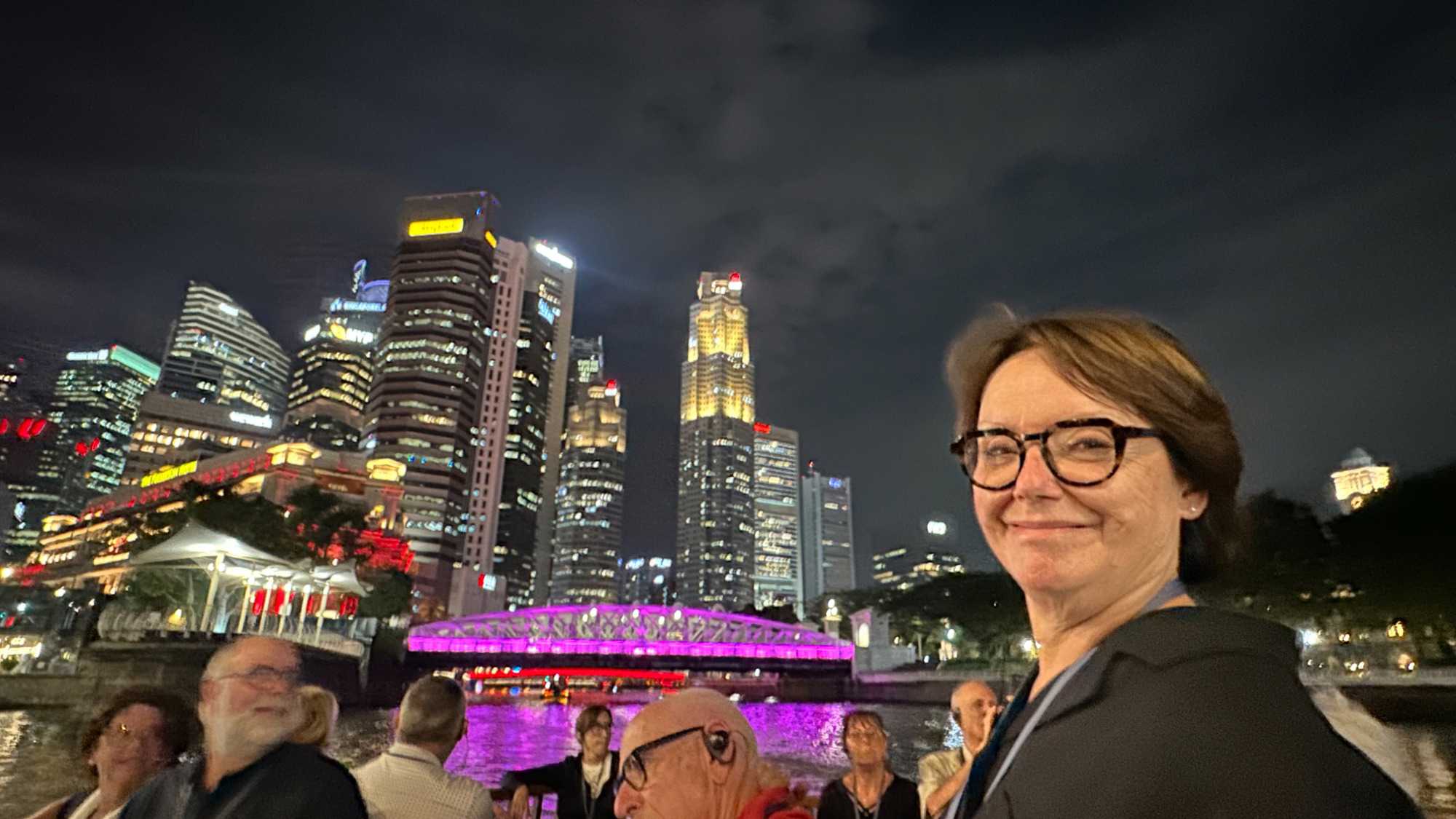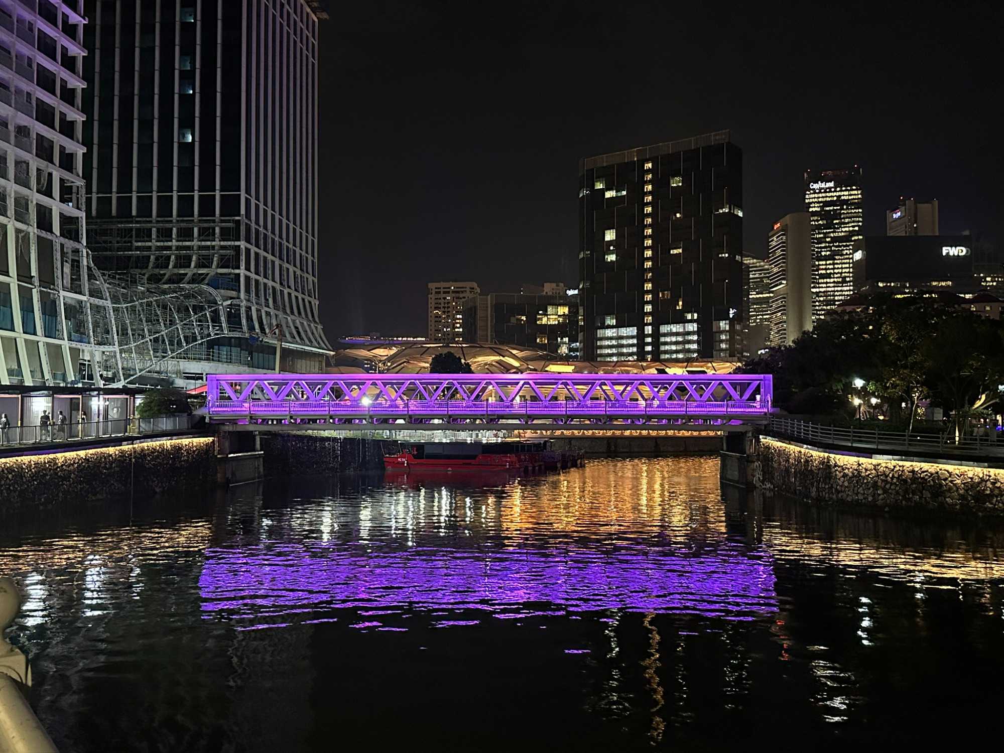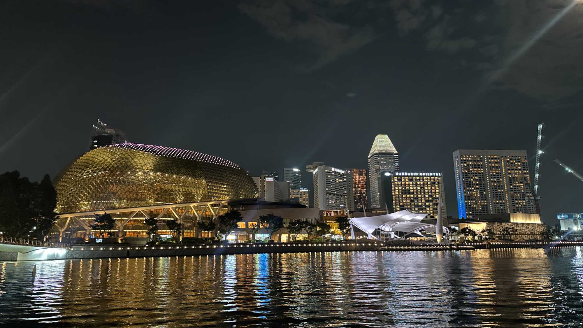 Après le souper fort animé, bien que fatigués du vol, nous avions très hâte de découvrir les lumières de la ville en voguant doucement à bord d’un bumboat traditionnel le long de la rivière Singapour. Dès que nous embarquons, la magie opère : la ville scintille tout autour de nous et la vue est à couper le souffle. La rivière, miroir noir et lisse, reflète les milliers de lumières des bâtiments qui se dressent majestueusement sur ses rives. Les grattes-ciels du quartier financier, l’opéra, les ponts illuminés, le chic Fullton hôtel, le Merlion et que dire du Marina Bay hôtel, bref, Singapour est sublimée.