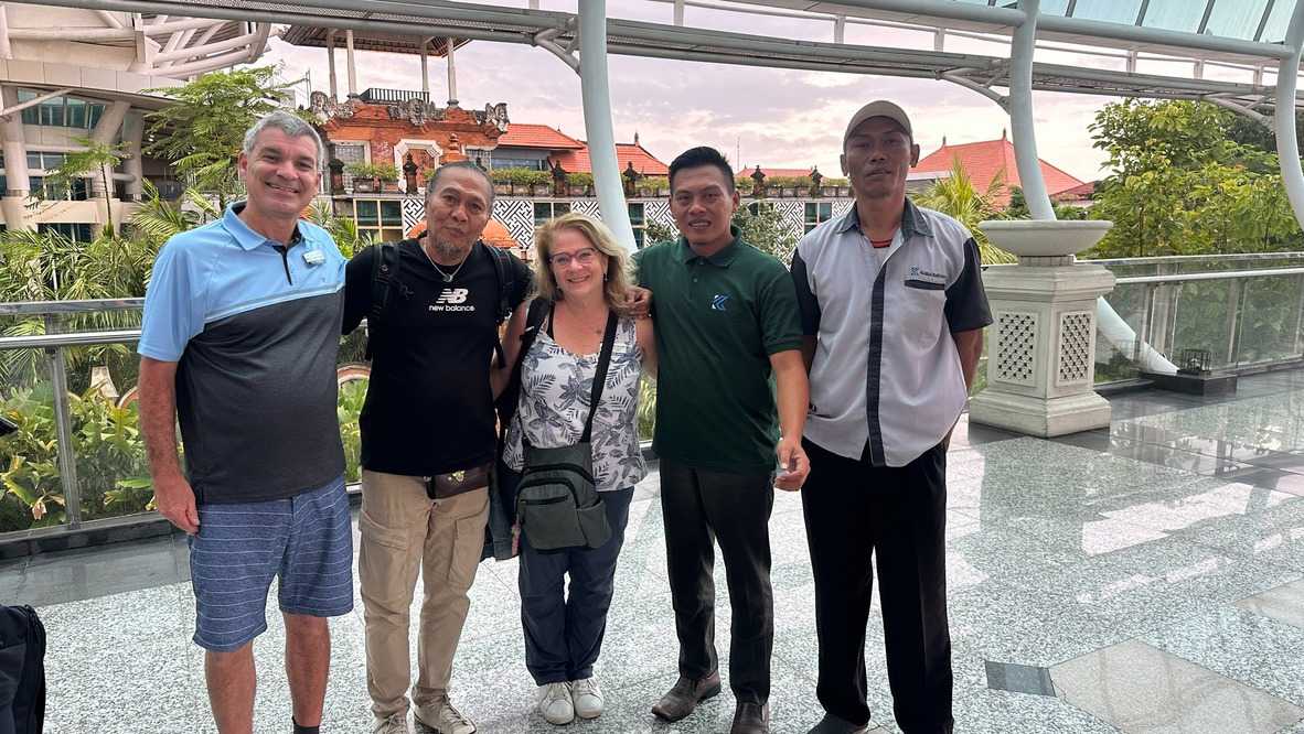 Il pleut des cordes sur l’autoroute, comme pour nous rappeler nos premiers jours ici. Robert, un brin philosophe, lance que Bali pleure de nous voir partir ! Nous avons profité du court trajet d’une vingtaine de minutes entre le Laguna Resort et l’aéroport de Denpasar pour consacrer ces derniers moments aux remerciements que nous voulions les plus chaleureux pour nos chauffeurs et plus particulièrement pour notre cher Kabal. Si nous avons tant appris sur la culture, les rituels, les croyances, la symbolique des offrandes, la vie économique, le vivre-ensemble, la nature, le respect et la gentillesse de ce peuple et bien plus, c’est grâce à Kabal notre guide. En prime, on a eu droit à ses mémorables jeux de mots qu’il trouvait lui-même très drôles et, avant même de nous les raconter, riait aux éclats. Nous n'oublierons pas de si tôt ces bons moments passés en sa belle compagnie. Nous lui remettons un flacon de notre “or blond” (sirop d’érable) dont il connaissait déjà le bon goût. En entonnant tous en coeur “Mon cher Kabal, c’est à ton tour, de te laisser parler d’amour…” il craque, et tous ont les yeux dans l’eau.