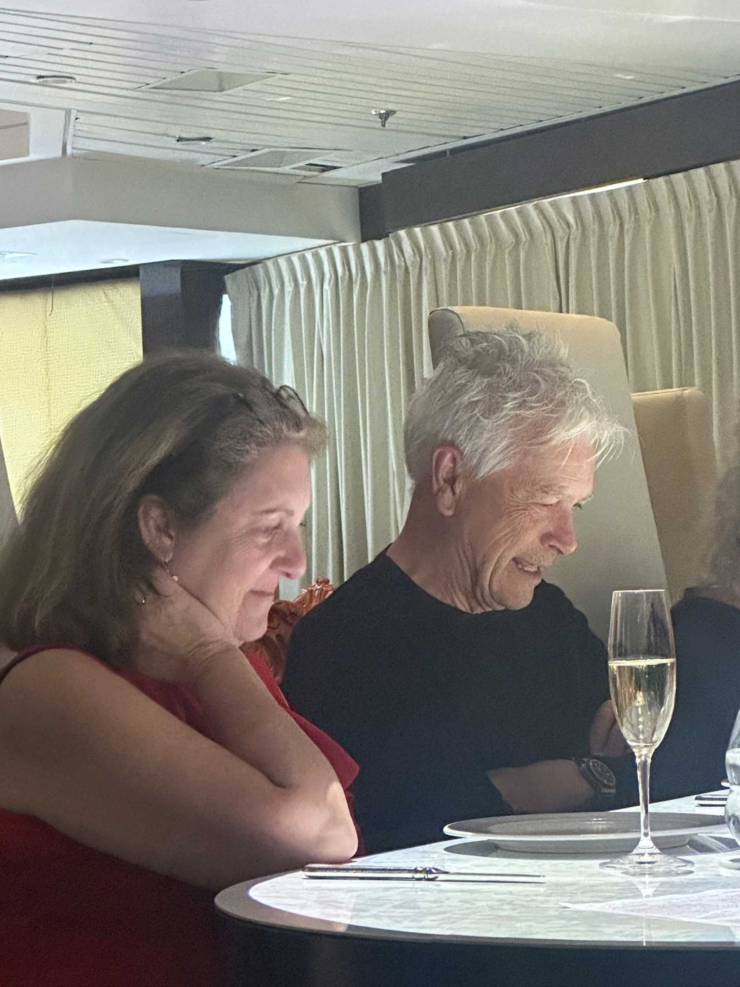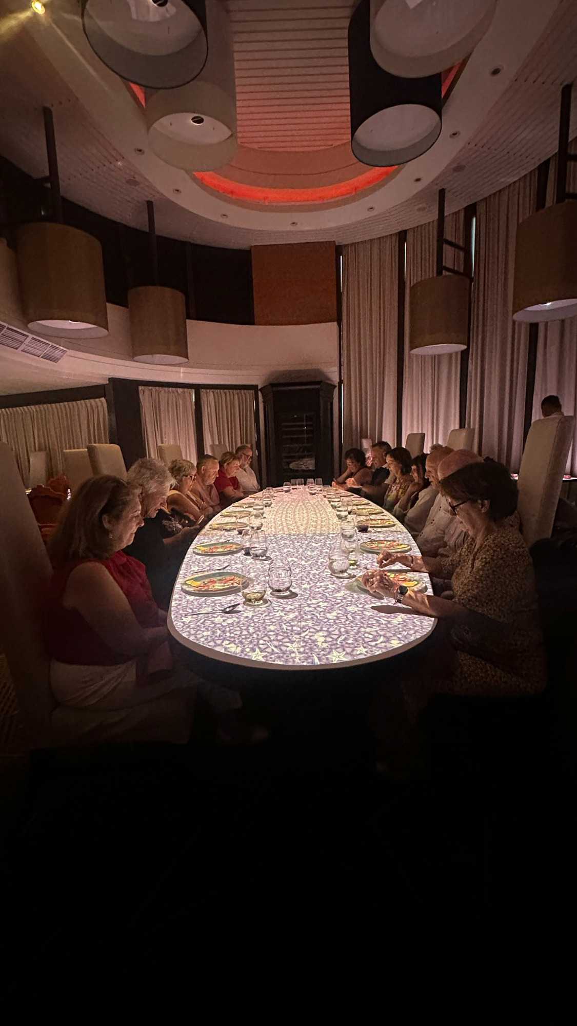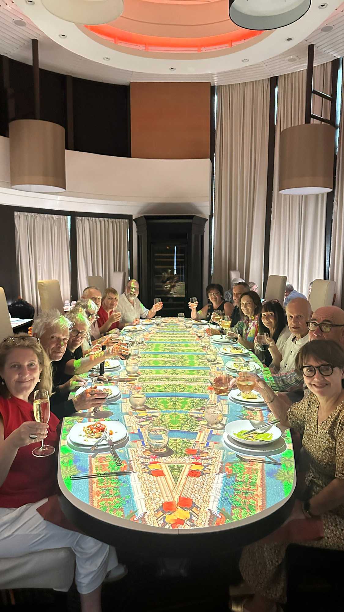 Vous croyez que la journée est terminée ? Bien sûr que non! Une belle surprise attendait nos chers voyageurs; la grande table de 14 convives du restaurant le Petit Chef. À part Francine et Claude, personne n’avait encore fait l’expérience de ce souper-animé multimedias, concept unique de Celebrity qui ferait tomber n’importe qui sous le charme. Je ne veux pas trop en dévoiler par respect pour les nombreux d’entre-vous qui auront le plaisir d’en faire l’expérience lors d’une prochaine croisière avec Voyage Louise Drouin.