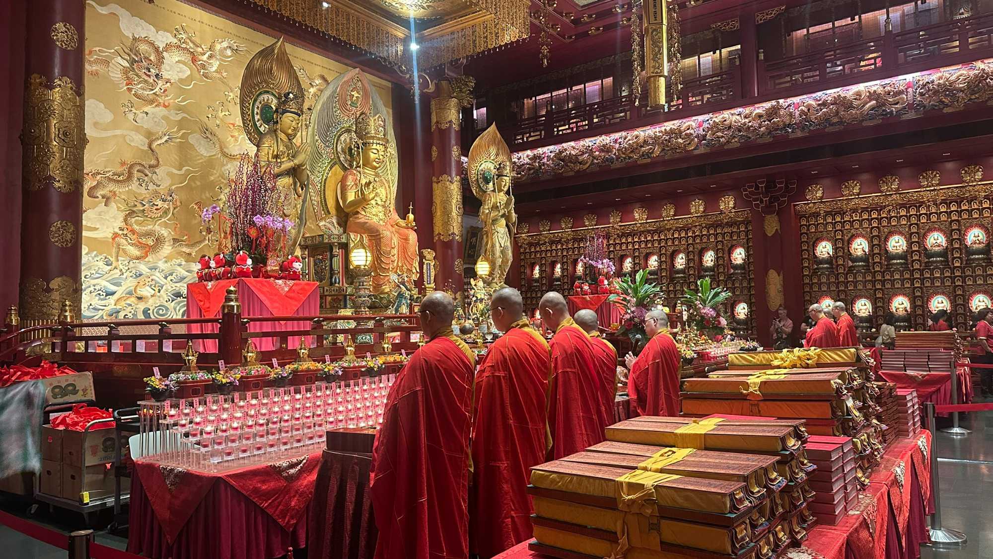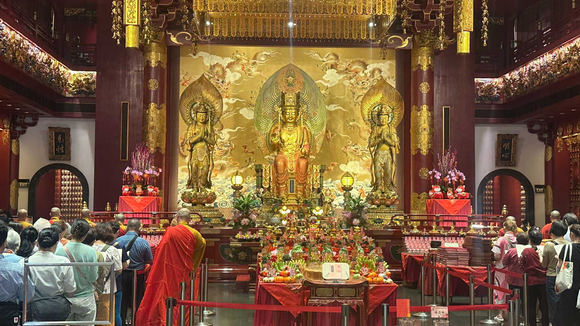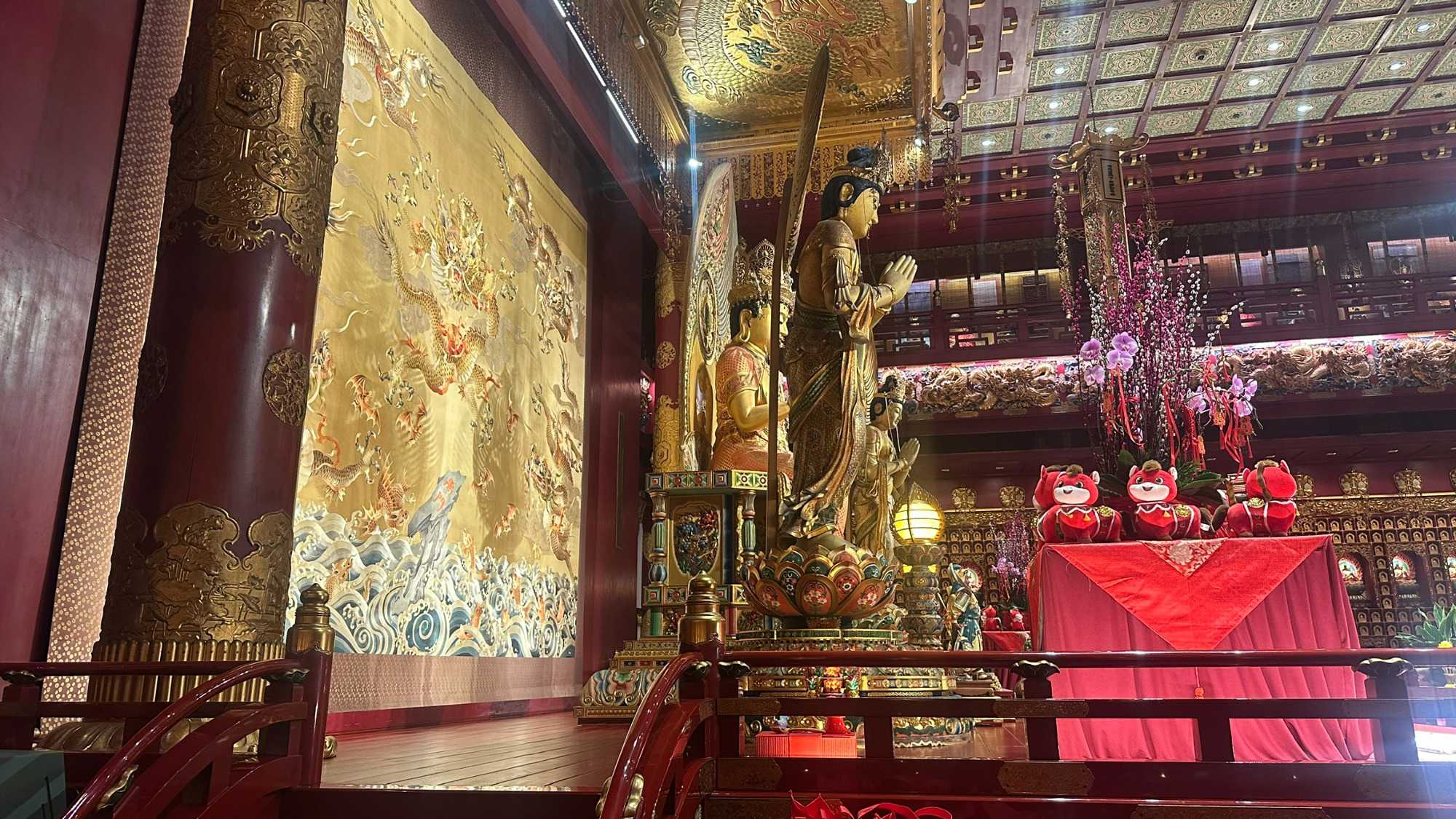 Notre immersion commence immédiatement par une promenade dans le vibrant quartier chinois, le temple de la dent de Bouddha. Ouf, on y plonge dans “la messe du dimanche chinoise”; dépaysement garanti. On parcourt les ruelles des shophouses rénovées, circulons dans les quartiers de Little India et de Bugis Village. Ici, les ruelles s’animent, entre étals colorés, parfums d’épices et musique chaleureuse. Le spectacle des saris éclatants, des marchés animés et des petites boutiques artisanales donne un avant-goût parfait de la diversité et de l’énergie singapourienne.