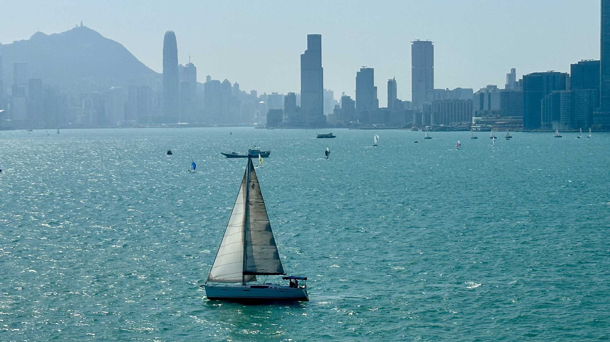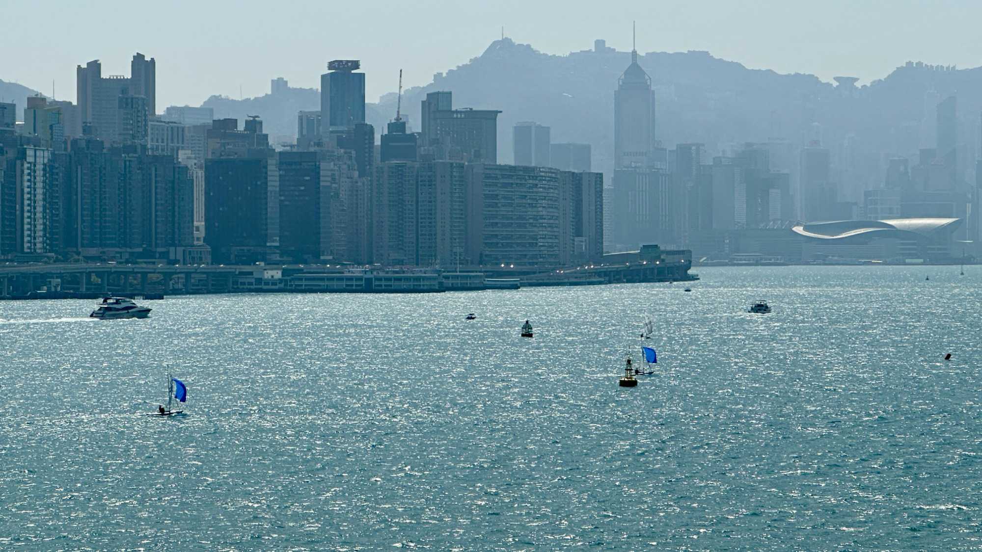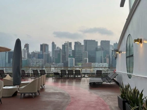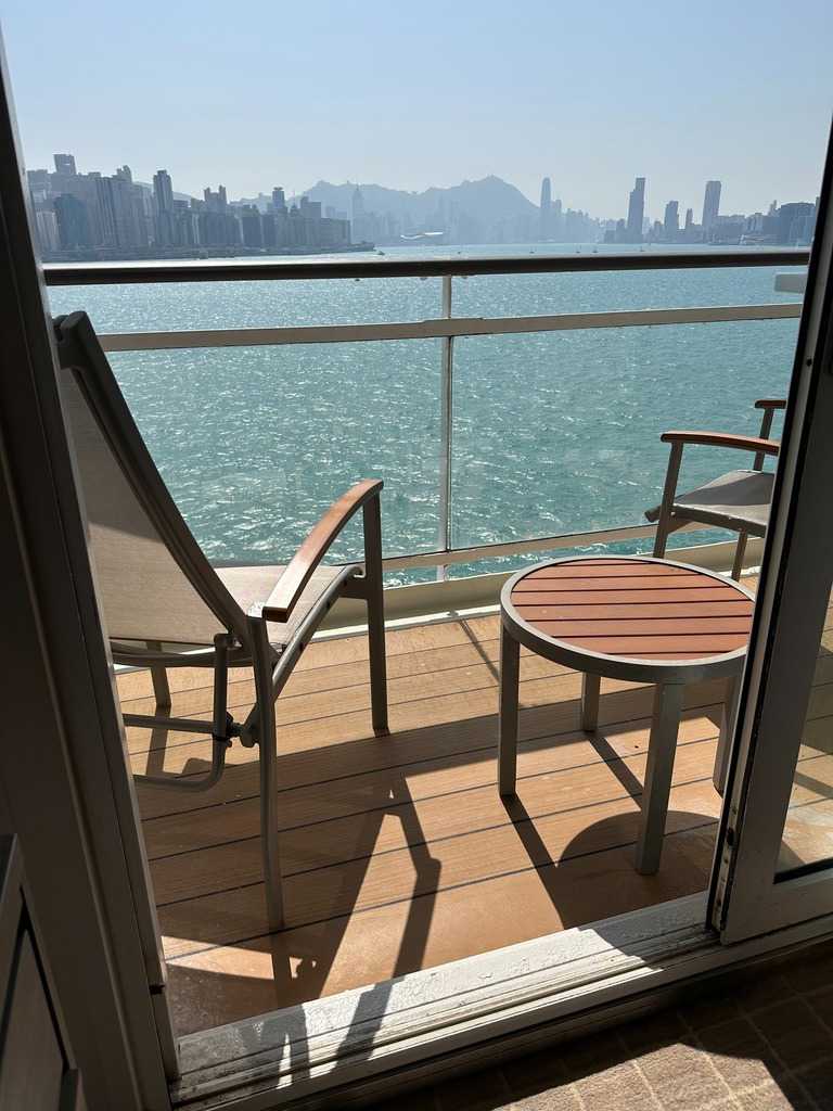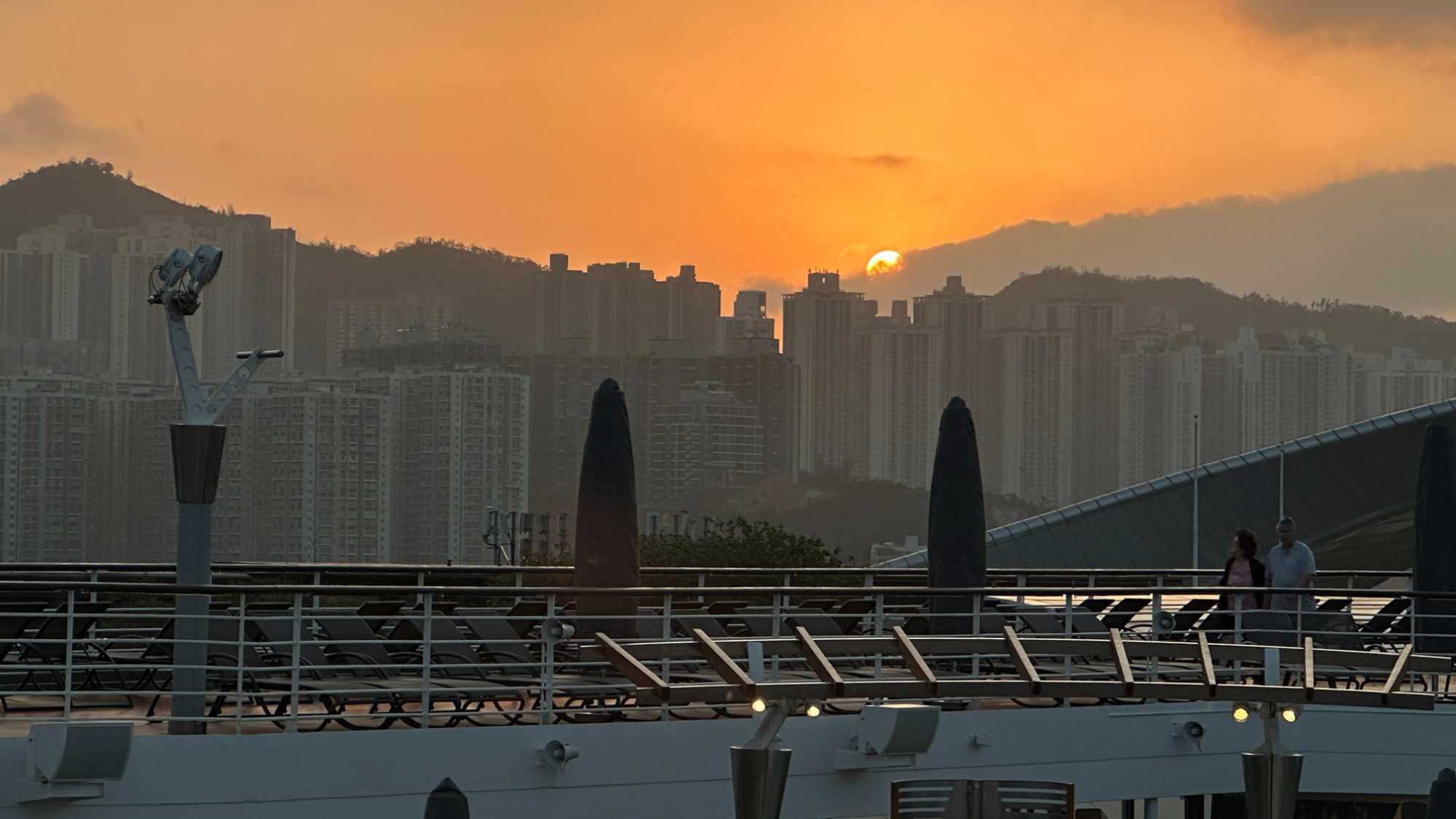 Le réveil a sonné, Eric nous avait dit de le mettre assez tôt pour ne rien manquer du spectacle grandiose qui nous attend à l’arrivée à Hong Kong. Imaginez-vous tirant les rideaux de votre fenêtre-balcon, le regard remplit par une forêt d’édifices hauts de 70 étages en moyenne coiffés de montagnes aux pentes abruptes dépassant ces édifices ! Les lueurs du petit matin illuminent d’abord leur cime, puis tranquillement éclairent l’ensemble de ces mastodontes vitrés. Comme on veut bien en croire nos yeux, on se vêtit de la première chose qui nous tombe sous la main et hop, au 11e étage constater le tout de visu. Wow! Nous sommes bel et bien à Hong Kong.