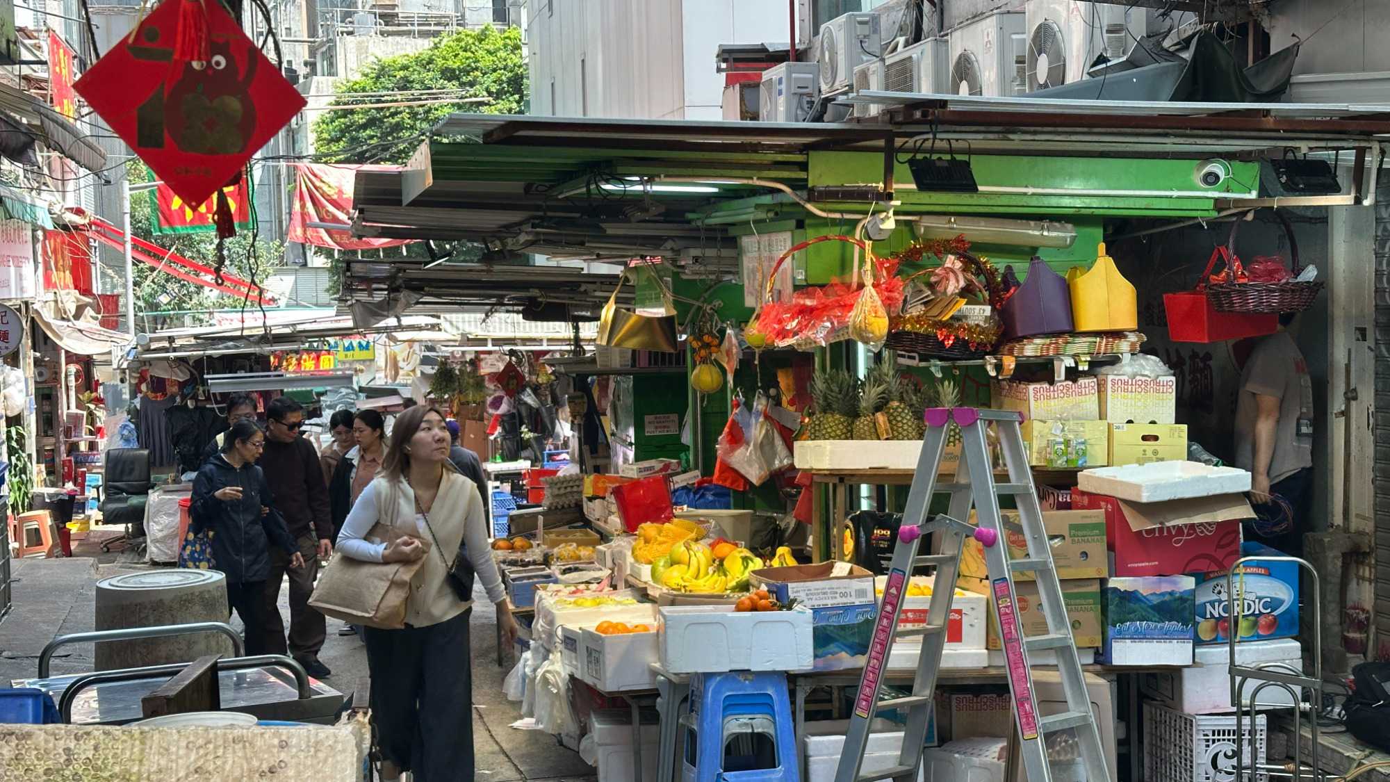 Redescendons maintenant au niveau de la mer pour commencer la visite de Kowloon, le cœur commerçant et populaire de Hong Kong. Ce quartier animé regorge de marchés, boutiques, et rues où la vie ne semble jamais ralentir. Nous arpentons les ruelles, découvrant des échoppes d’herbes médicinales, des champignons séchés, des objets artisanaux et des produits locaux. L’ambiance est encore assez tranquille ce matin, ce qui nous permet d’observer ce nouveau territoire dans une quiétude relative. Nous sommes encore une fois dépaysés et c’est très bien ainsi.