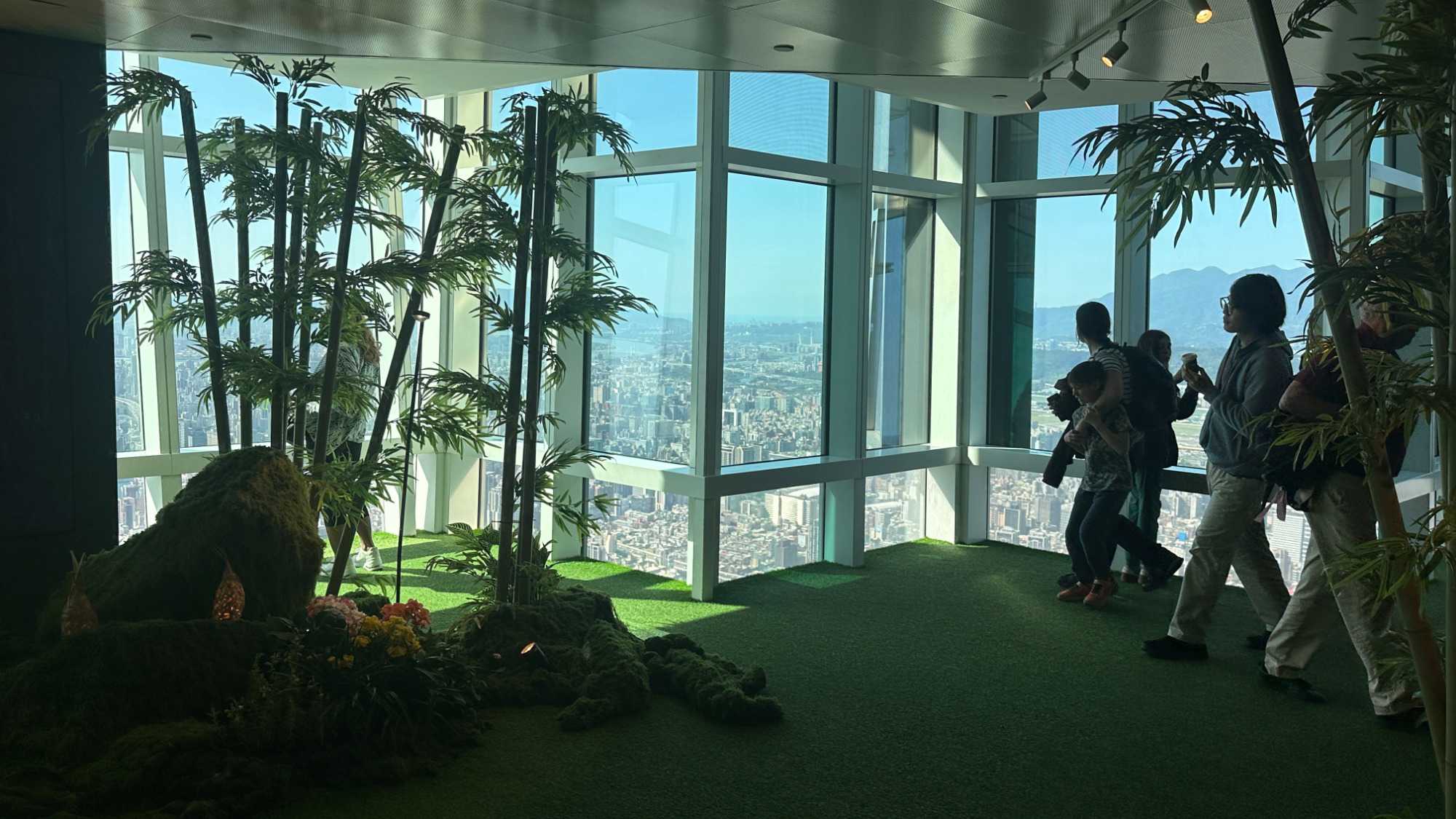 L’après-midi nous propulse ensuite au cœur de la modernité avec la montée au spectaculaire Taipei 101, longtemps considéré comme le plus haut gratte-ciel du monde. Grâce à un accès prioritaire, nous rejoignons rapidement (en 37 secondes) la plateforme d’observation du 89e étage. De là-haut, la vue panoramique sur la ville est tout simplement époustouflante : une mer de gratte-ciels, de quartiers animés, de collines verdoyantes et de parcs urbains s’étend à perte de vue. Un instant suspendu, parfait pour mesurer l’immensité et l’énergie de Taipei.