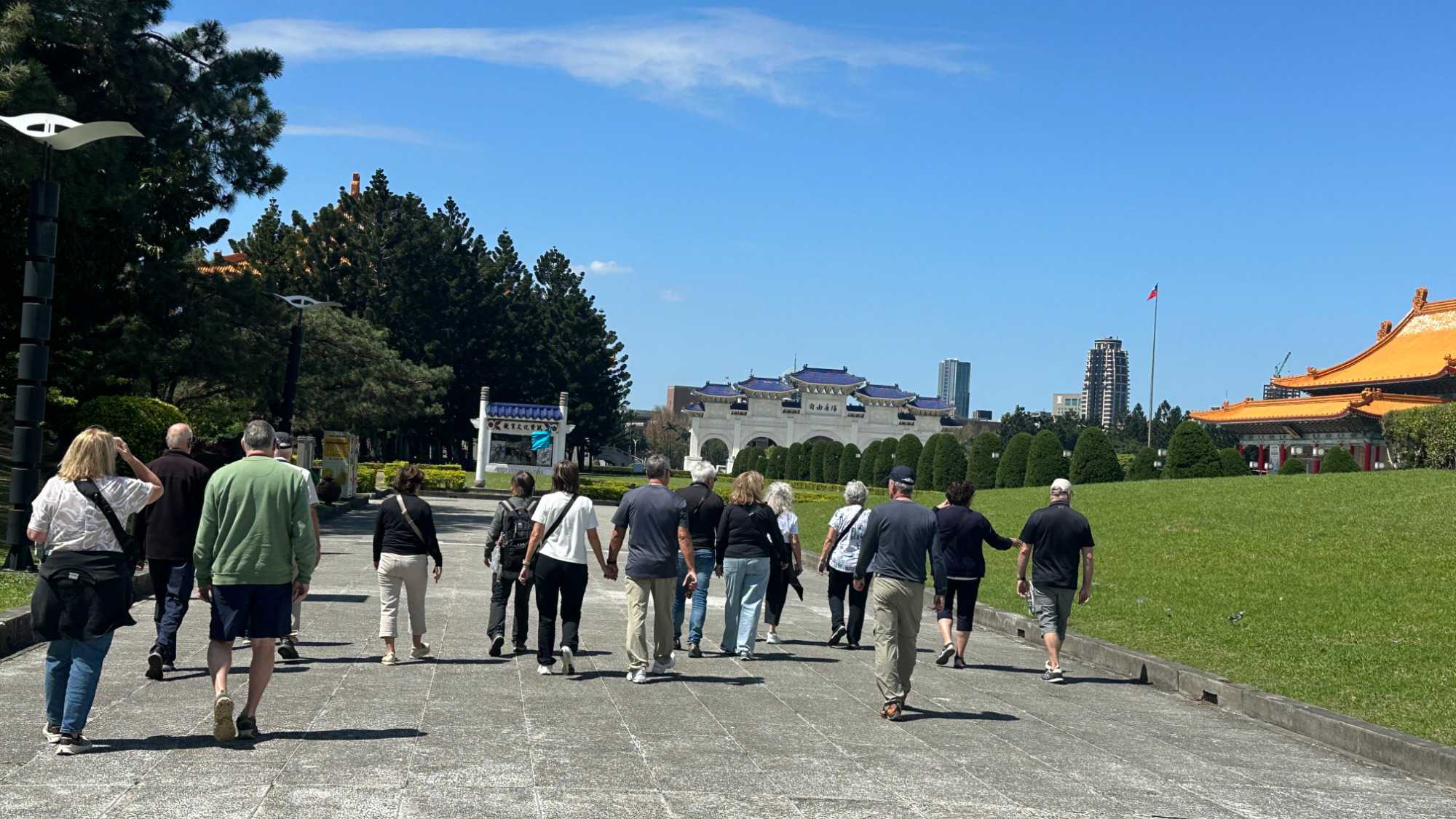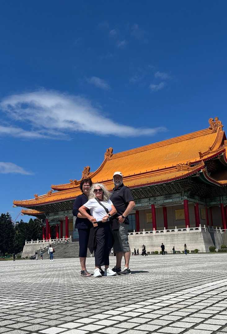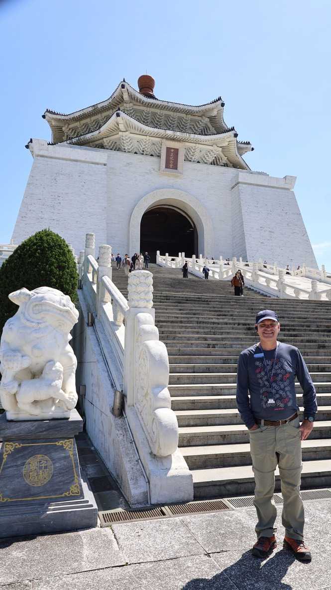 Nous poursuivons ensuite vers l’un des sites les plus emblématiques de Taïwan : le majestueux Mémorial Chiang Kai-Shek. Chiang Kai-shek (1887-1975) fut le dirigeant nationaliste chinois qui, après la victoire communiste en 1949, se réfugia à Taïwan et fit de Taipei la capitale du gouvernement de la République de Chine. Sous son autorité, la ville devint le centre politique et administratif de l’île et connut une modernisation rapide, marquée aujourd’hui par des lieux emblématiques comme son memorial. Ce vaste ensemble monumental, symbole fort de l’histoire contemporaine du pays, impose le respect par sa grandeur et son élégance. Le bâtiment principal, recouvert de tuiles bleues et de marbre blanc, atteint environ 76 mètres de hauteur et domine un vaste parc de 240 000 m² au cœur de la ville.