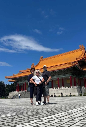 Nous assistons à la célèbre relève de la garde, une cérémonie solennelle et parfaitement chorégraphiée, empreinte de discipline et d’émotion, qui marque les esprits et rappelle les grandes pages de l’histoire taïwanaise. Nous gravissons les 89 marches du Chiang Kai-shek Memorial Hall, qui nous mène au Hall principal et à son immense statue (dans le style de celle d’Abraham Lincoln à Washington). Ce nombre n’est pas choisi au hasard : il correspond à l’âge de 89 ans auquel est mort Chiang Kai-shek en 1975. Aujourd’hui, l’esplanade monumentale et les bâtiments voisins, le théâtre national et la salle de concert, forment l’un des plus grands espaces publics de Taipei. C’est là que nous y avons rencontré Luka, le lézard (en laisse) pendant sa promenade avec son maître.