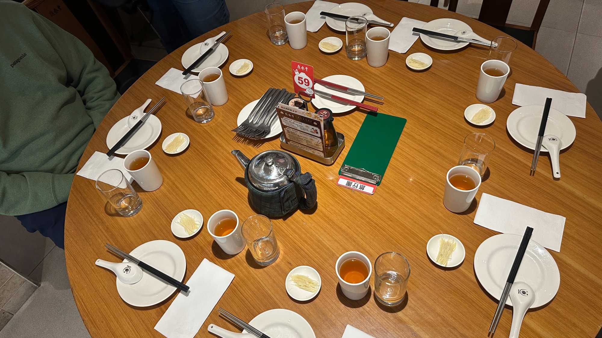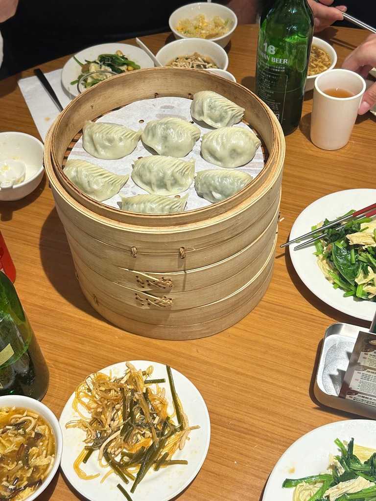 Après cette immersion culturelle, place à une expérience gourmande incontournable. Le dîner nous attend chez Din Tai Fung, véritable institution culinaire reconnue mondialement. Dans ce restaurant mythique, nous savourons une cuisine locale raffinée, notamment les fameux dumplings, délicats, savoureux et préparés avec une précision presque artistique par les cuisinier que l’on peut regarder pratiquer leur art à travers la baie vitrée. Les plats n’en finissent plus d’arriver, tous aussi savoureux et délicats les uns que les autres. Dumplings au poulet, poisson, légumes, salades de fêves germées délicieuse, soupe aux champignons. Puis, le dumpling dessert. Chacun essaie de deviner la saveur, mais vraiment sans succès. Après avoir demandé à Zoé, elle nous dit que c’est une pâte de haricot rouge ! Nous aurions perdu tout l’argent parié ! Mais à l’unanimité, nous avons bien aimé. Bref, un moment convivial et délicieux, un repas que nous sommes ravis d’avoir pu expérimenter, et qui, je crois, a fait l’unanimité autour de la table.