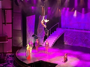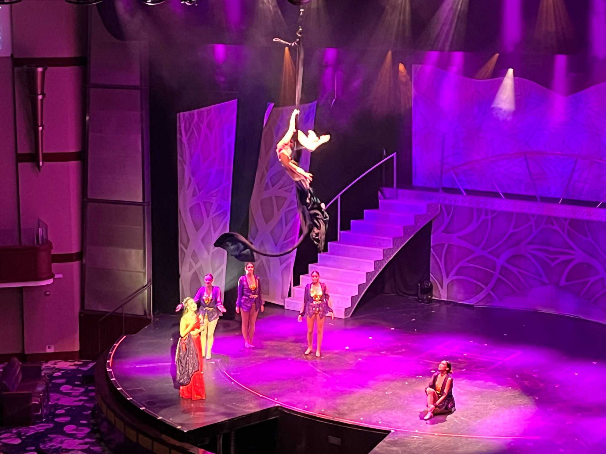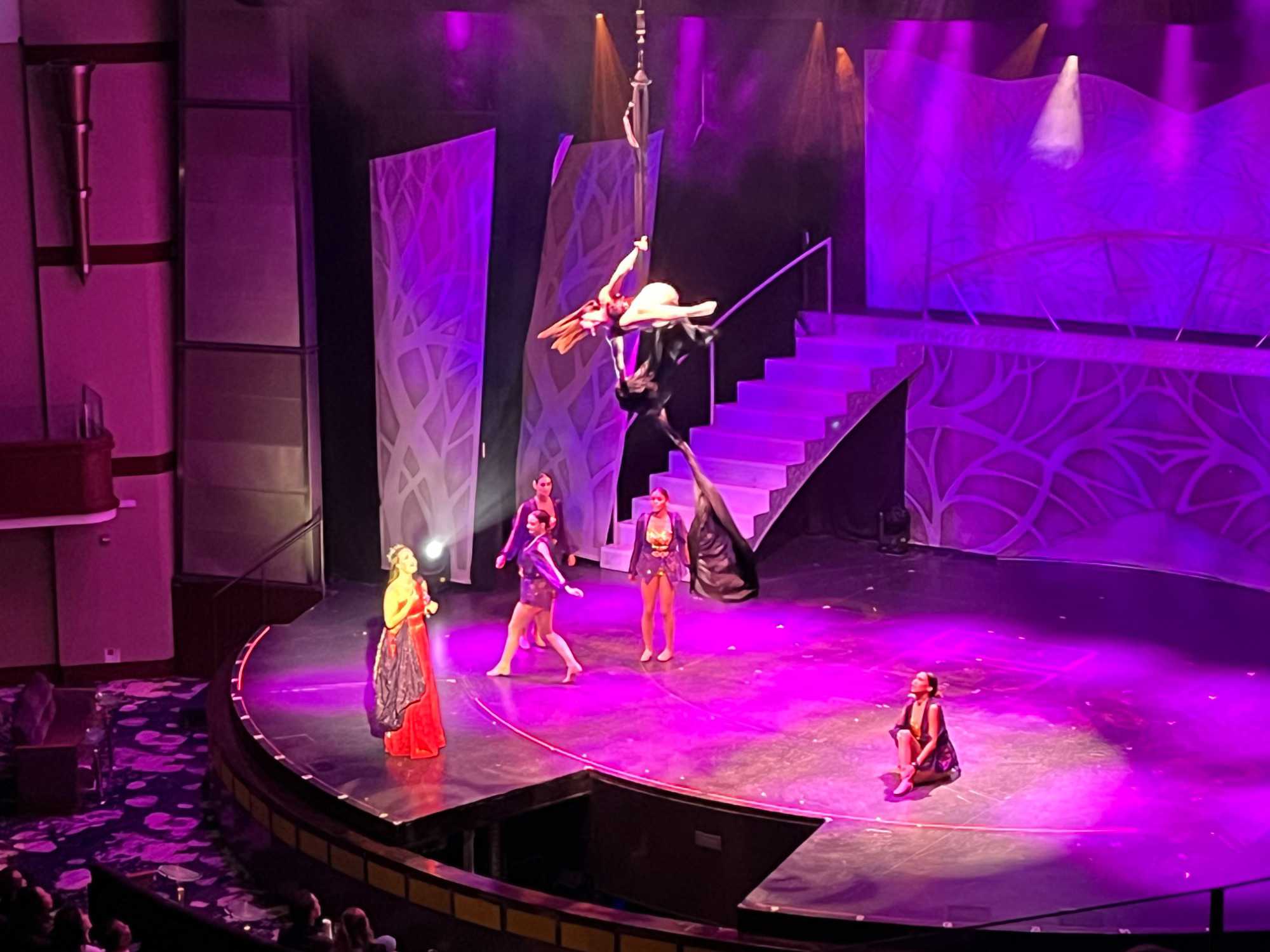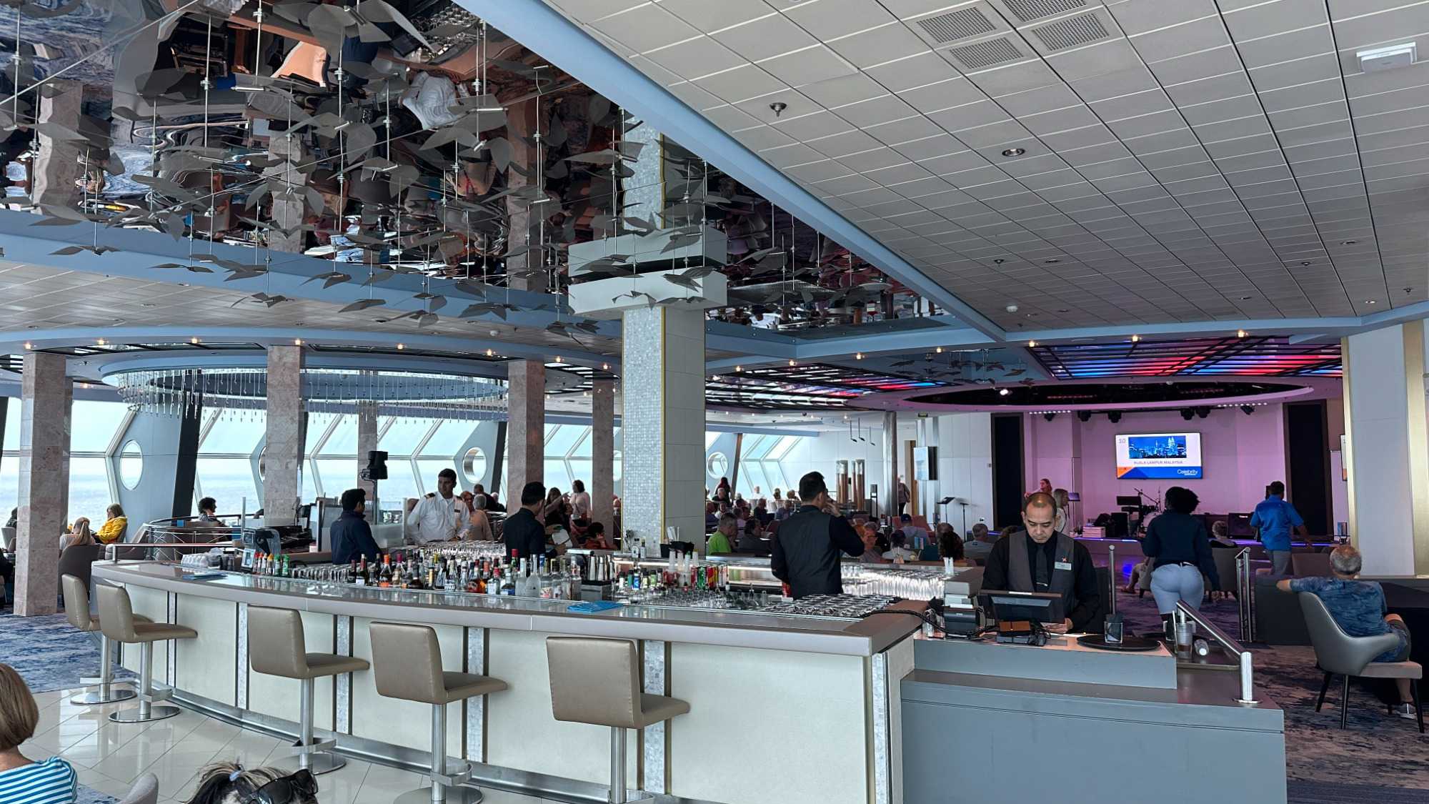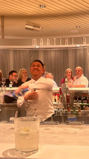 Ce soir au Théâtre du navire, c’est le spectacle Elysium interprété par la troupe d’acteurs, chanteurs, danseurs et musiciens du navire. Puis, nous avons pu capter les quelques minutes du spectacle du Martini Bar qui a lieu à chaque soir et qui suscite toujours autant d’engouement. Abiletés des barmans du Martini Bar à jongler avecl les “shakers”, les bouteilles au son rythmé de la musique du band du Millenium. À voir ! On ne s’ennuie vraiment pas sur le Millenium.