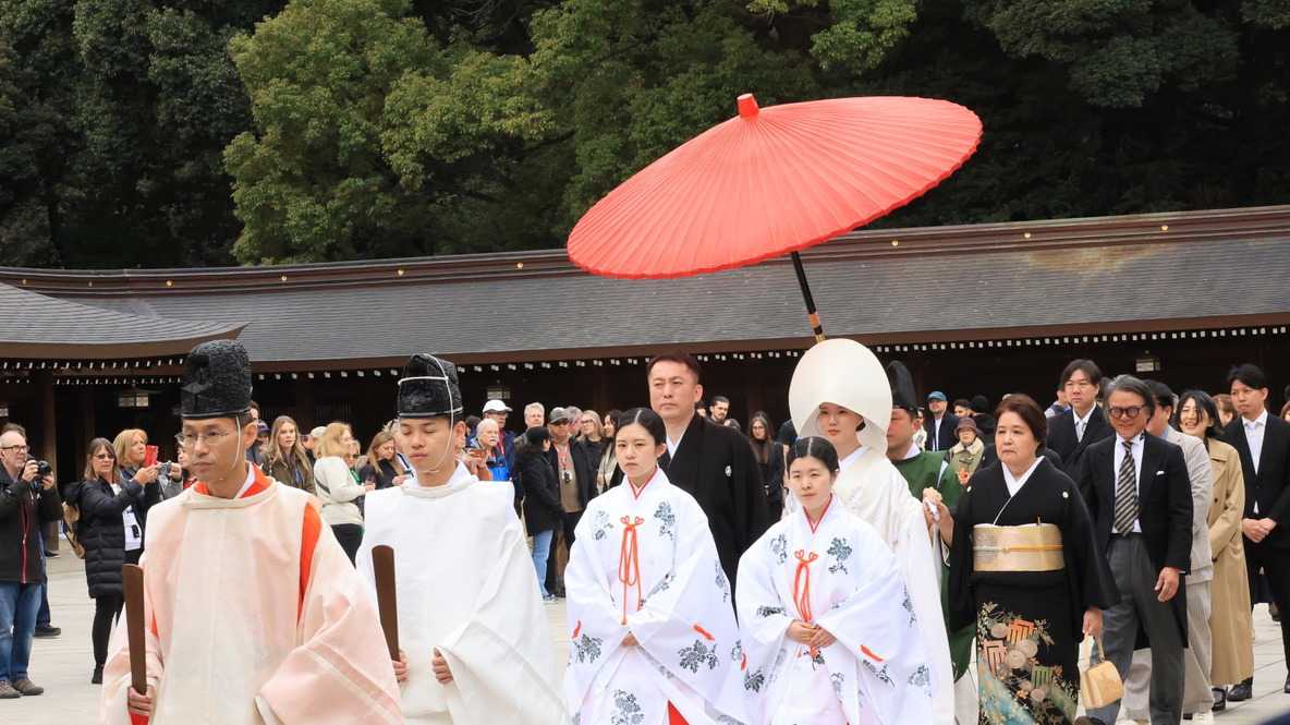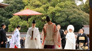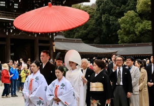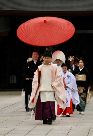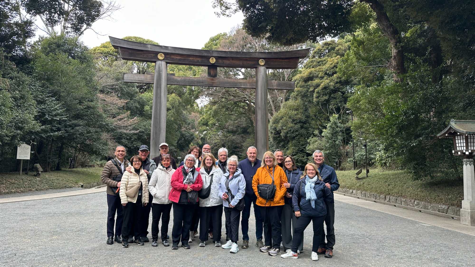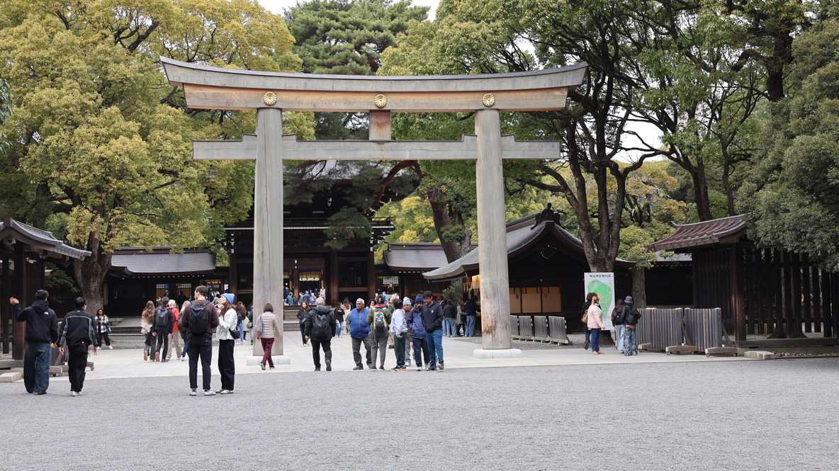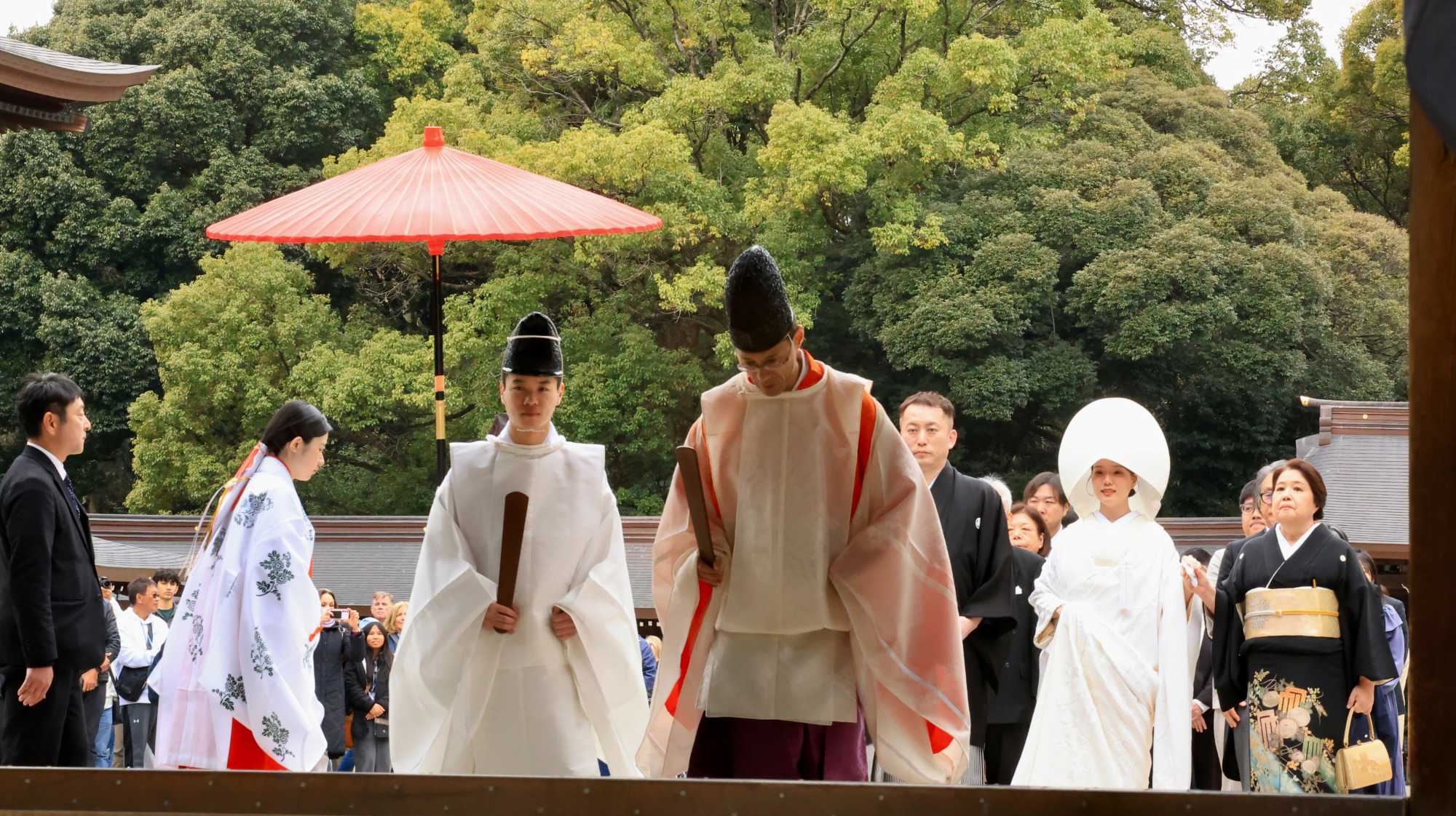 Nous nous sommes ensuite rendus au paisible Sanctuaire Meiji-jingū, véritable écrin de verdure au cœur de la capitale. Dédié à l’empereur Meiji et à l’impératrice Shōken, le sanctuaire a été inauguré en 1920, en hommage à celui qui a ouvert le Japon à la modernité lors de l’ère Meiji. Entouré d’une forêt de plus de 100 000 arbres offerts par des habitants de tout le pays, il incarne l’harmonie entre nature et spiritualité. Là, moment d’exception : au moment où nous nous apprêtions à quitter le temple, nous avons eu l’extrême chance d’assister au passage d’un mariage traditionnel japonais, procession élégante et silencieuse dont les mariés étaient vêtu des habits traditionnels, un instant rare que nous avons pu capter avec respect pour les nouveaux mariés et à notre plus grand bonheur. Wow!