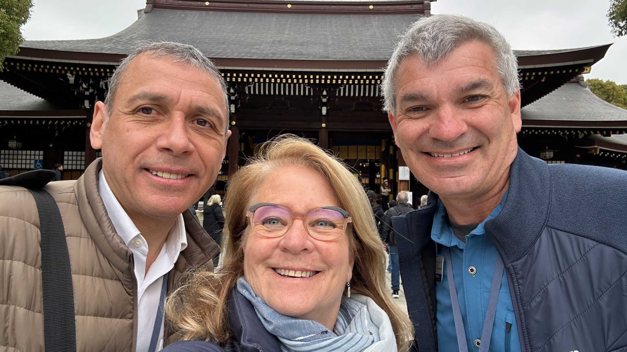 Jean et Sato nous rejoignent à l’hôtel en ce matin frisquet et un peu nuageux. Ça devrait se dégager en après-midi. Nous déposons les bagages à bord de l’autocar de Nichi, notre chauffeur, qu’on retrouve aussi avec grand plaisir. Un chauffeur dévoué, gentil, souriant et professionnel comme pas un. En plus, il porte des gants blancs !