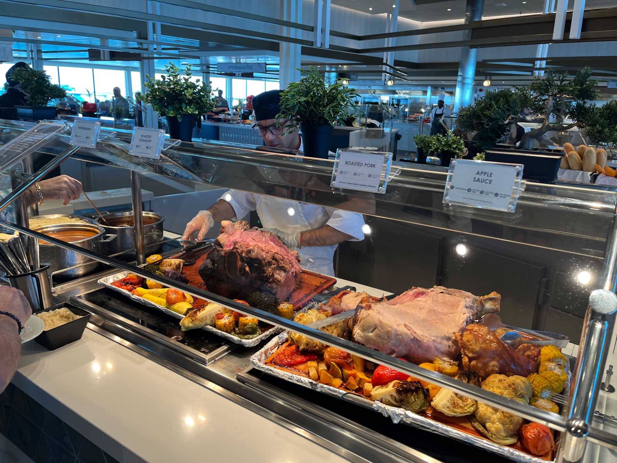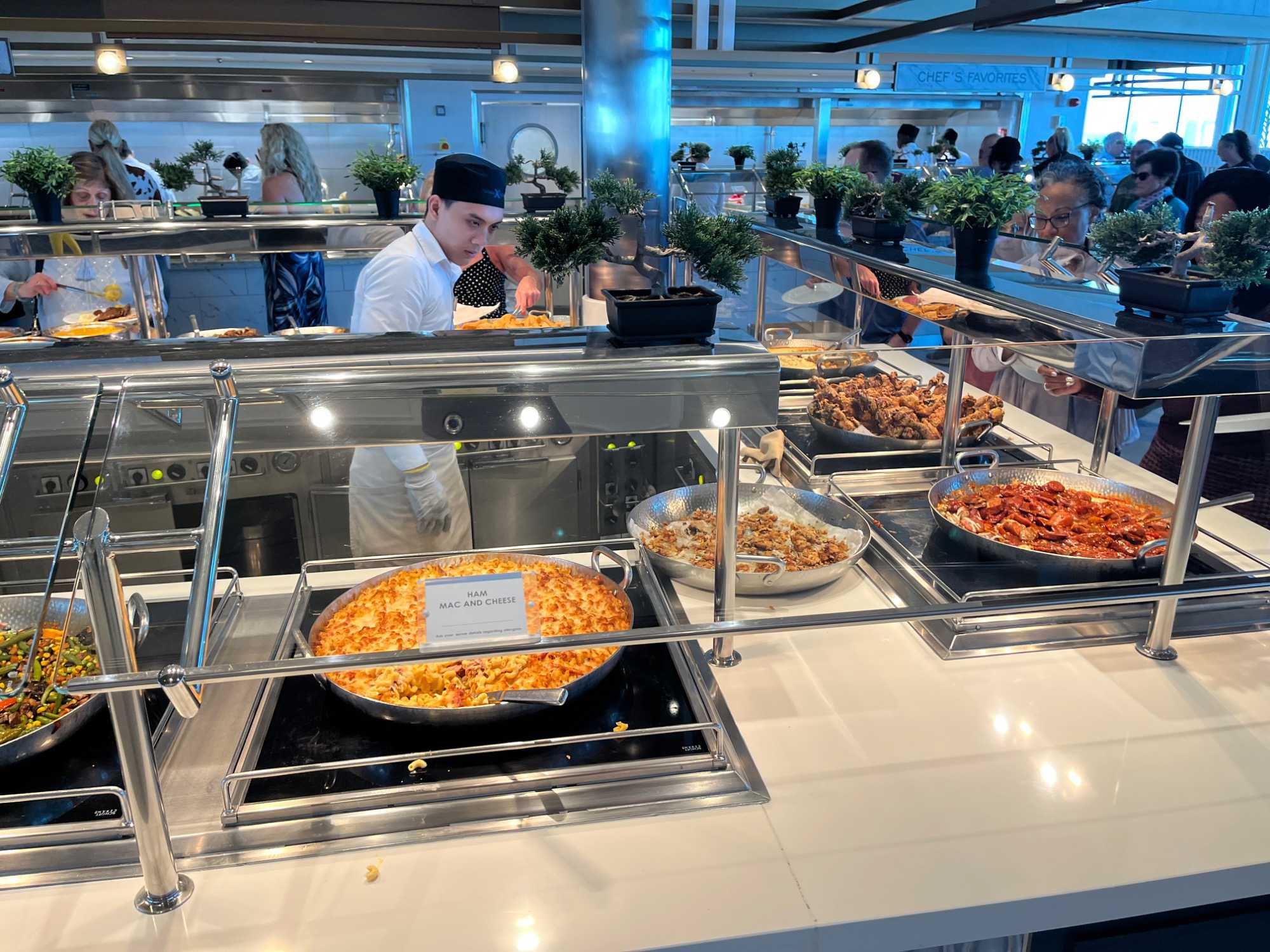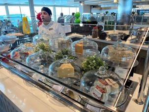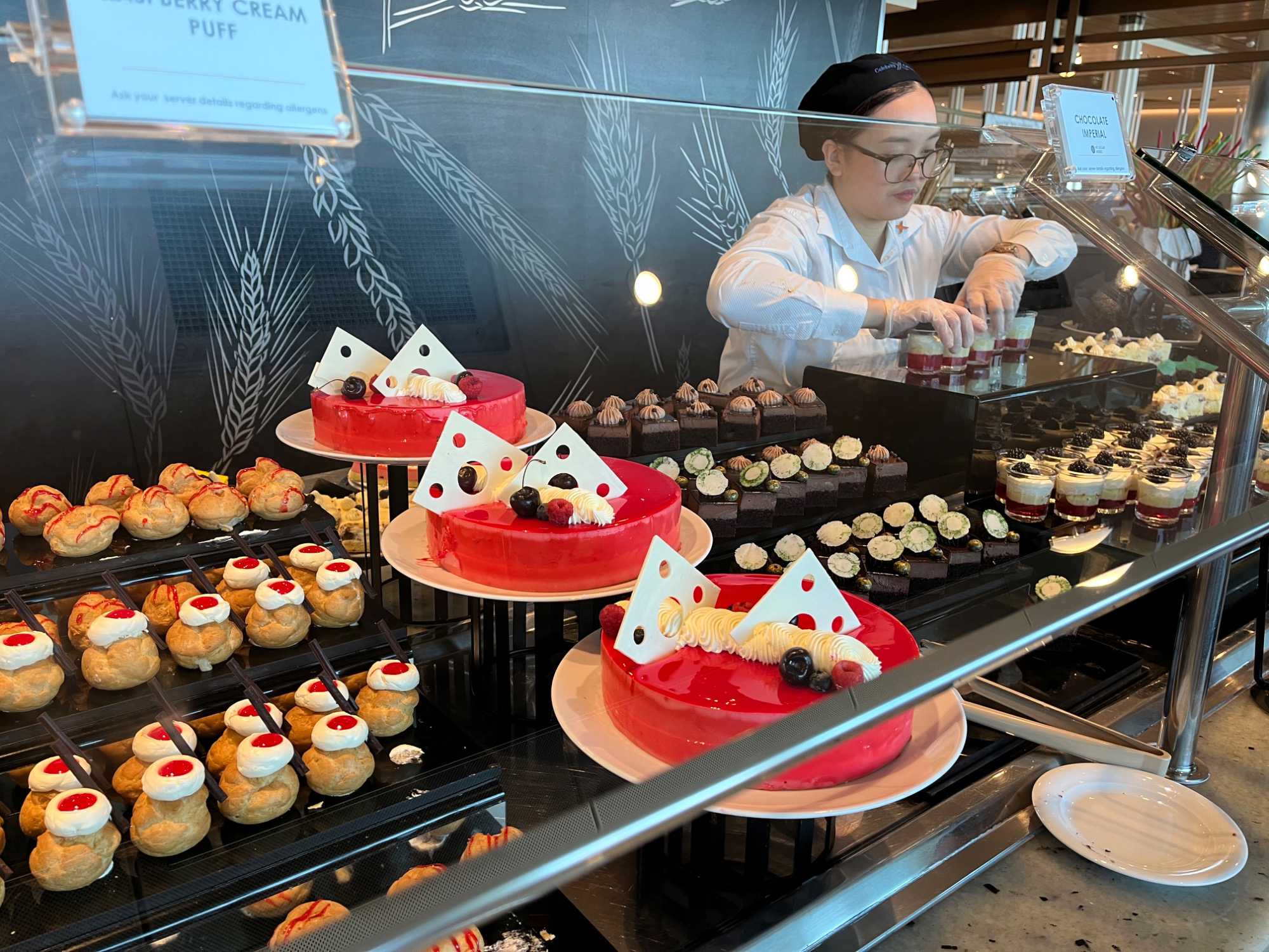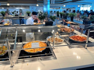 Pour le dîner, nous nous dirigeons vers l’Oceanview Café pour un premier repas à bord. L’offre est abondante et savoureuse : poissons grillés, salades colorées, fruits tropicaux et desserts décadents attendent nos voyageurs, le tout avec une vue splendide sur l’océan depuis les grandes baies vitrées. Le Celebrity Ascent dispose de 18 restaurants et 14 bars et lounges, offrant une variété culinaire exceptionnelle et un service irréprochable, pour un premier contact inoubliable avec la gastronomie à bord.