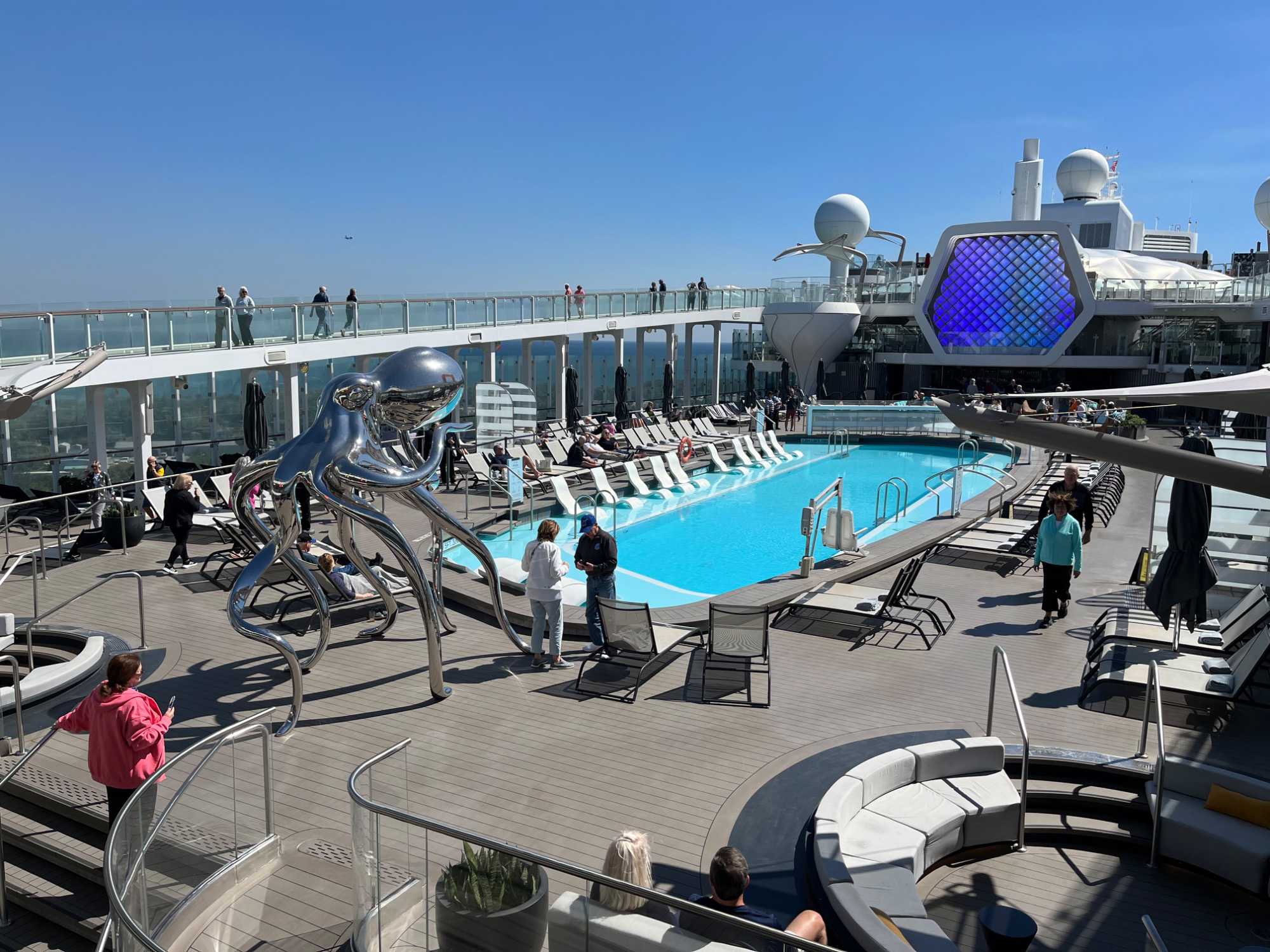 Chacun profite également des installations à son rythme : piscines, spa, théâtre, galeries d’art, casino, salles de sport… le temps passe trop vite tant le navire offre beaucoup de possibilités. L’excitation et la joie se lisent sur tous les visages.