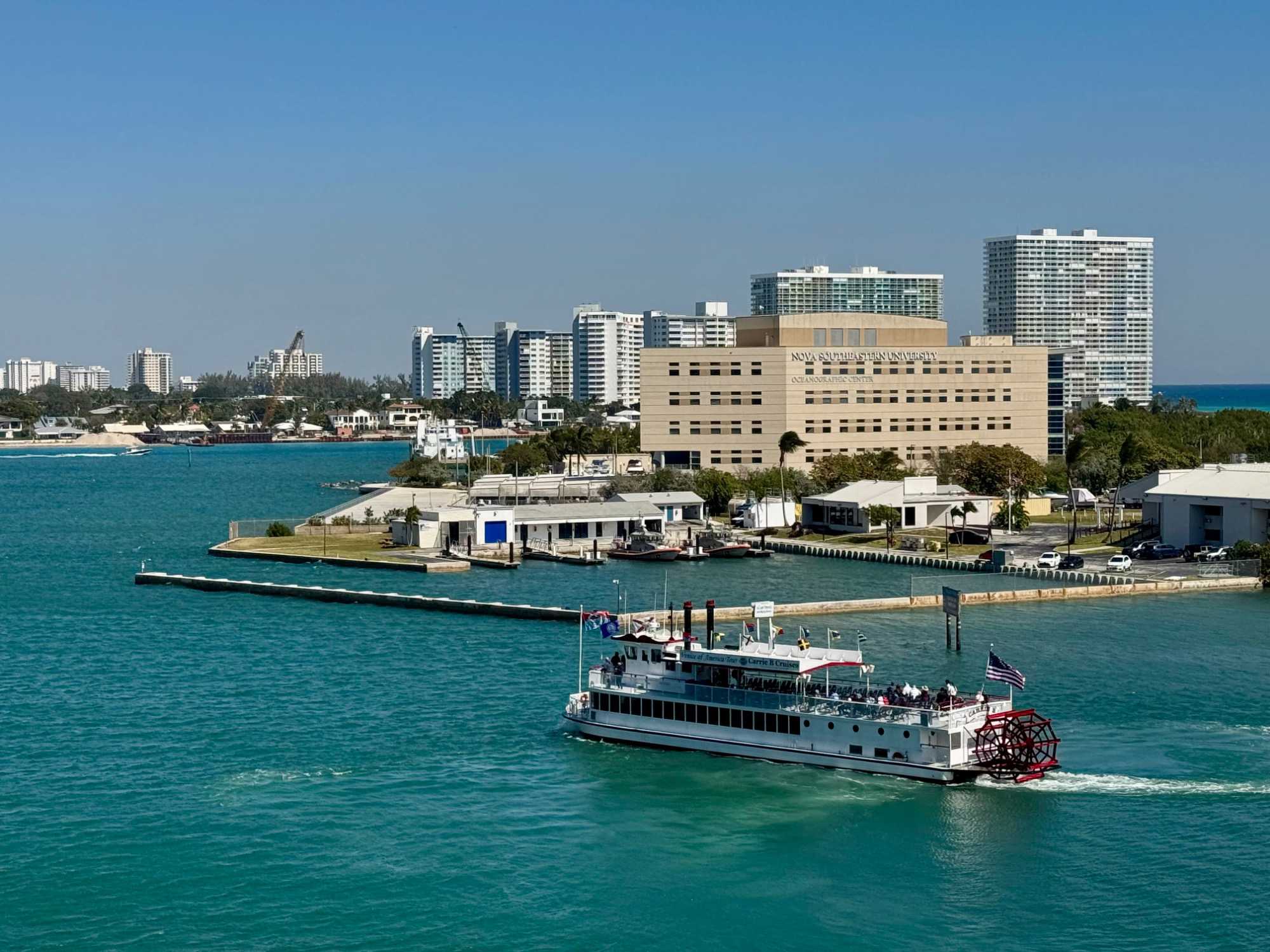 À 16h00, les amarres sont larguées et le Celebrity Ascent quitte Fort Lauderdale, entamant son périple à travers les Caraïbes de l’Est, avec un itinéraire qui inclut Basseterre (Saint-Kitts), Saint John’s (Antigua), Castries (Sainte-Lucie), Bridgetown (Barbade), Roseau (Dominique) et Philipsburg (Saint-Martin). Depuis les restaurants et les ponts, nos voyageurs admirent la ville qui s’éloigne et le scintillement de l’océan.